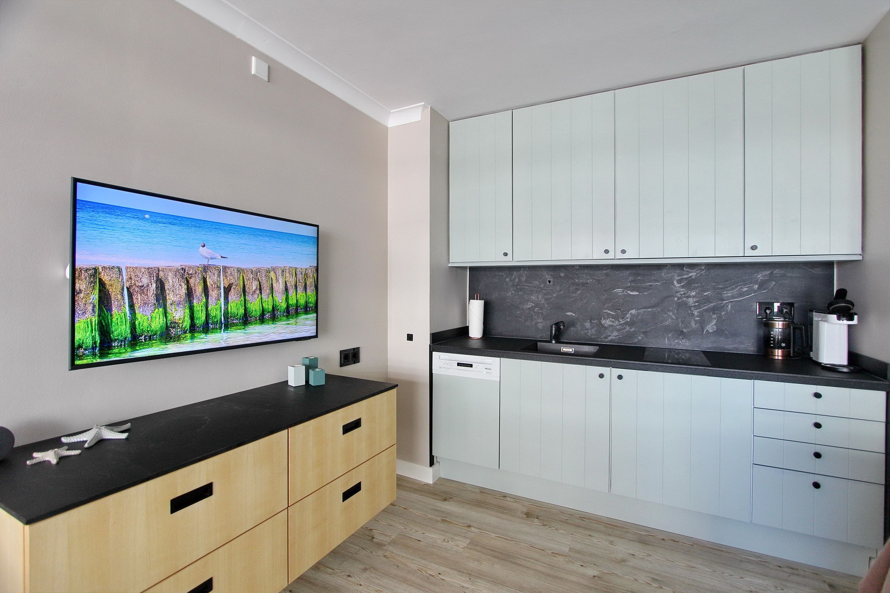 Wunderbar und gemütlich eingerichtet Einzimmerwohnung in der 3. Etage im Haus Westerhörn mit Balkon zur Westseite (Balkonmöbel und Auflagen sind vorhanden). Kleiner Meerblick inklusive. Die Wohnung ist direkt in der Innenstadt und liegt nur wenige Schritte von der Promenade und dem Strand entfernt. Zu Fuß können Sie alles schnell erreichen. Der kombinierte Wohn-Schlafraum ist mit einem feststehendem Doppelbett, einer Couch und einem Relaxsessel eingerichtet. In der offenen Küchenzeile mit einem 2 Platten Ceranherd, Spülmaschine sowie zusätzlicher Senseo Pad Kaffeemaschine können Sie bequem kleine Mahlzeiten zubereiten und sich selbst verpflegen. Das moderne Badezimmer hat eine Dusche, einen Handtuchtrockner, Fön und Kosmetikspiegel. In der Wohnung wurde Designboden verlegt. Zur technischen Ausstattung gehört: ein Smartfernseher und ein Radio. Den kostenfreien WLAN Zugang des Eigentümers können Sie nutzen (die Zugangsdaten finden Sie im App.). Diese Nichtraucherwohnung zum Wohlfühlen hat eine Größe von ca. 37 m².