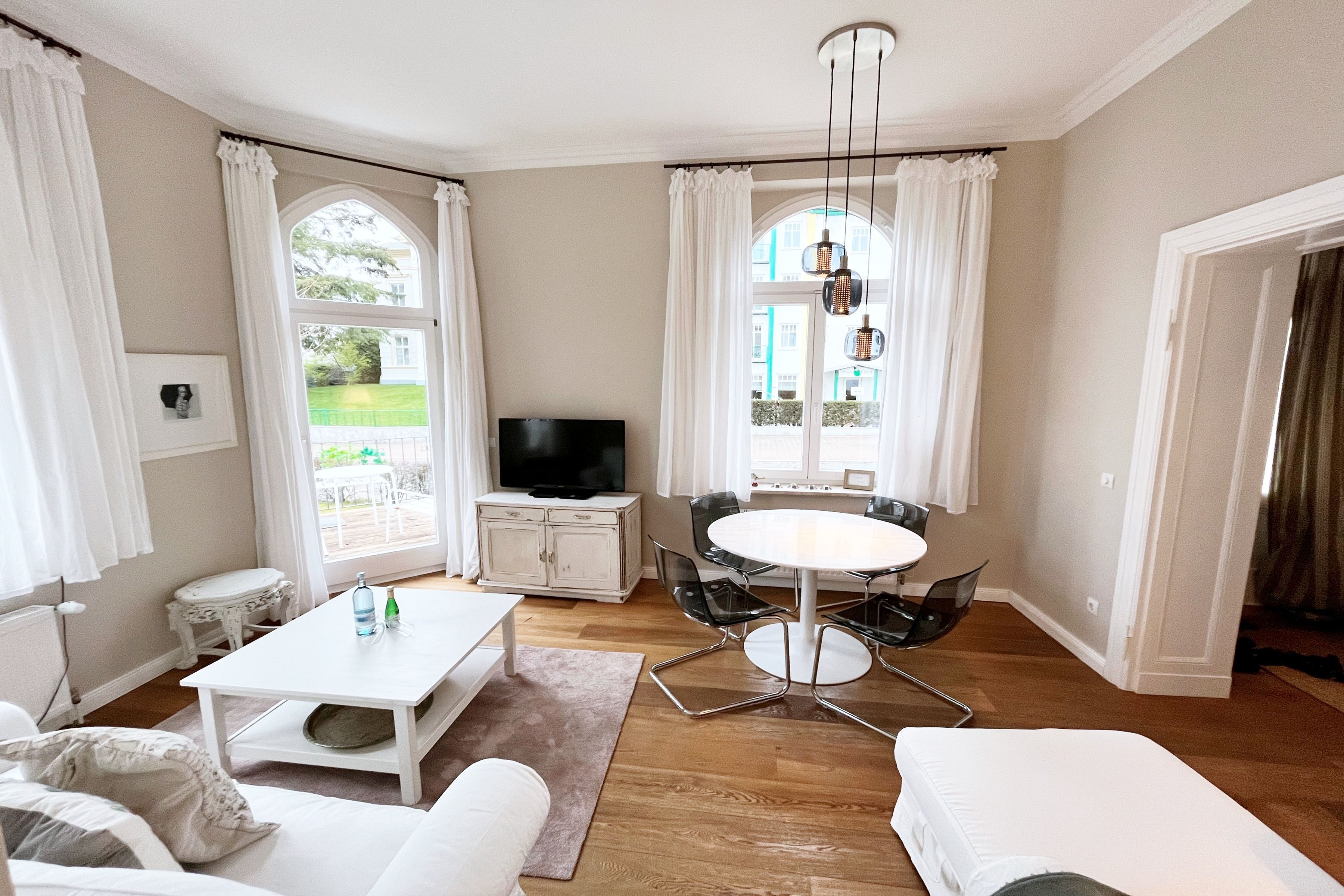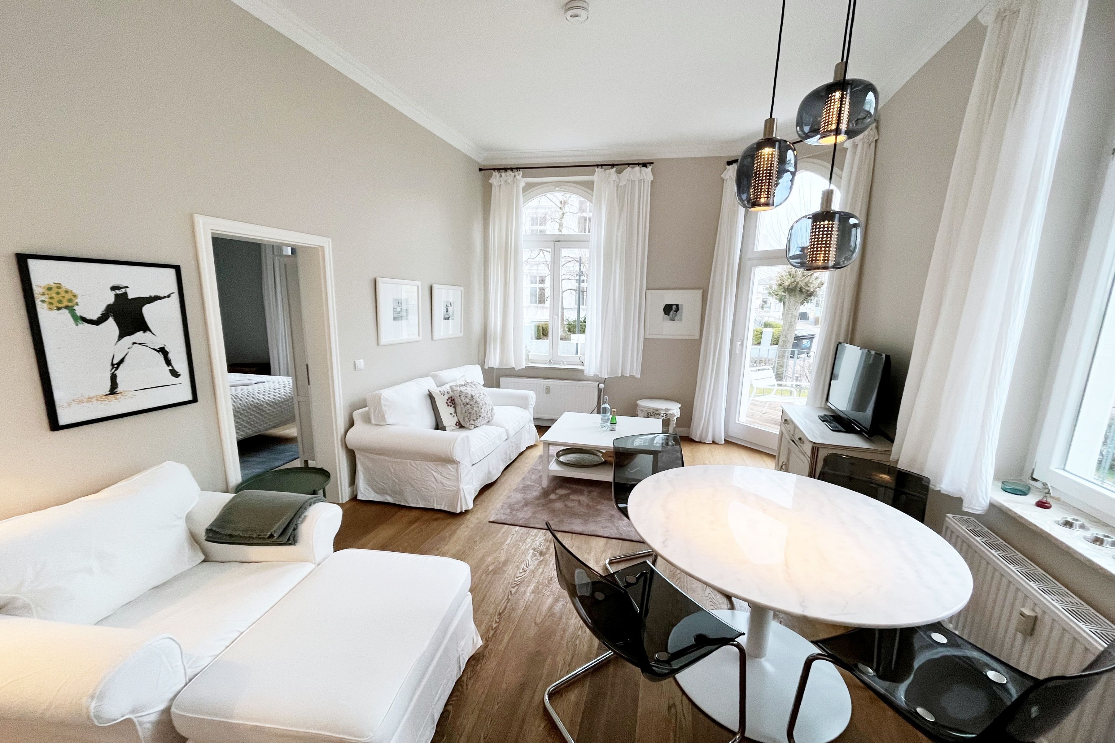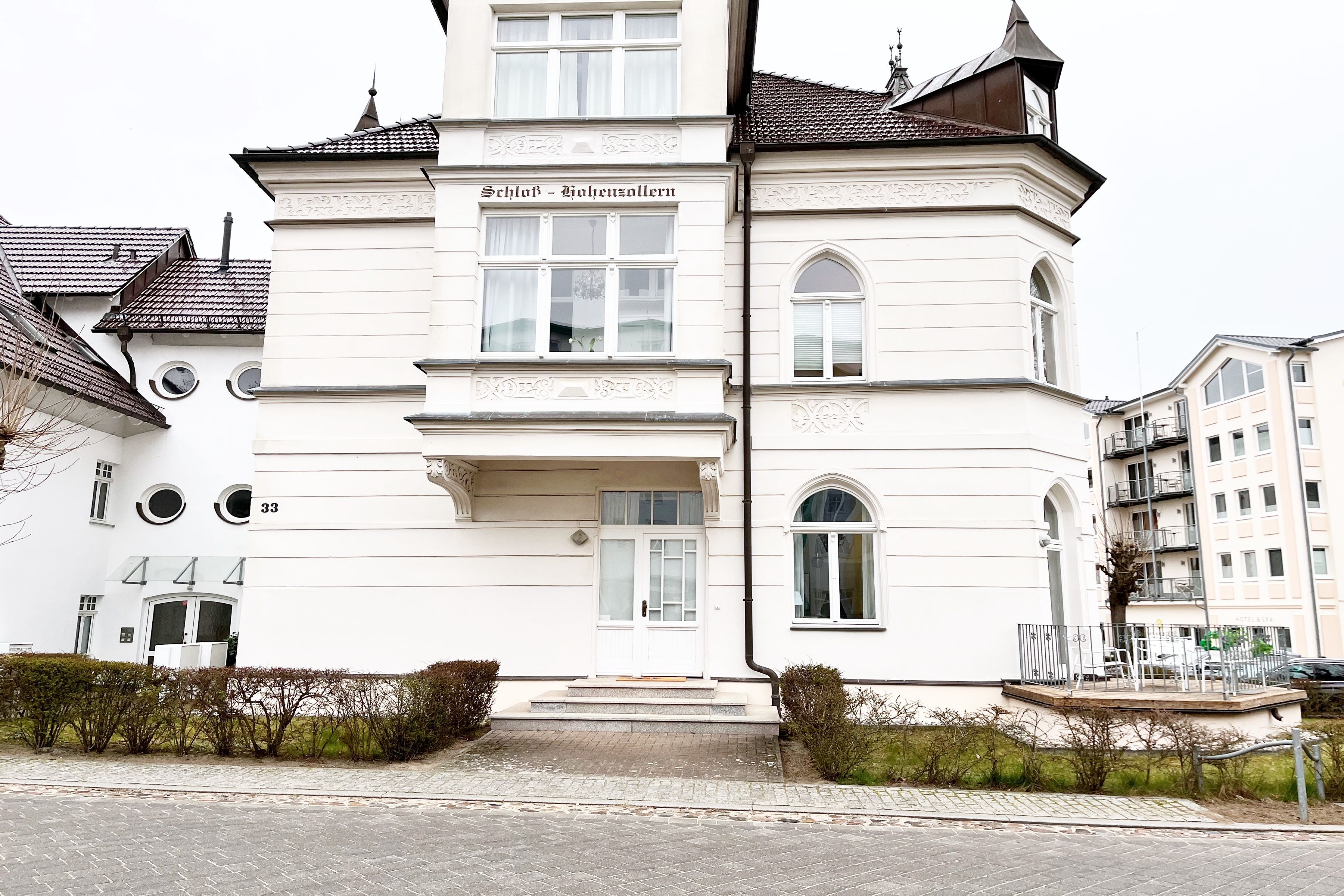 Die Ferienwohnung befindet sich im Erdgeschoss im historischen Altbau des Hauses Schloss Hohenzollern im Herzen des Seebades Ahlbeck.