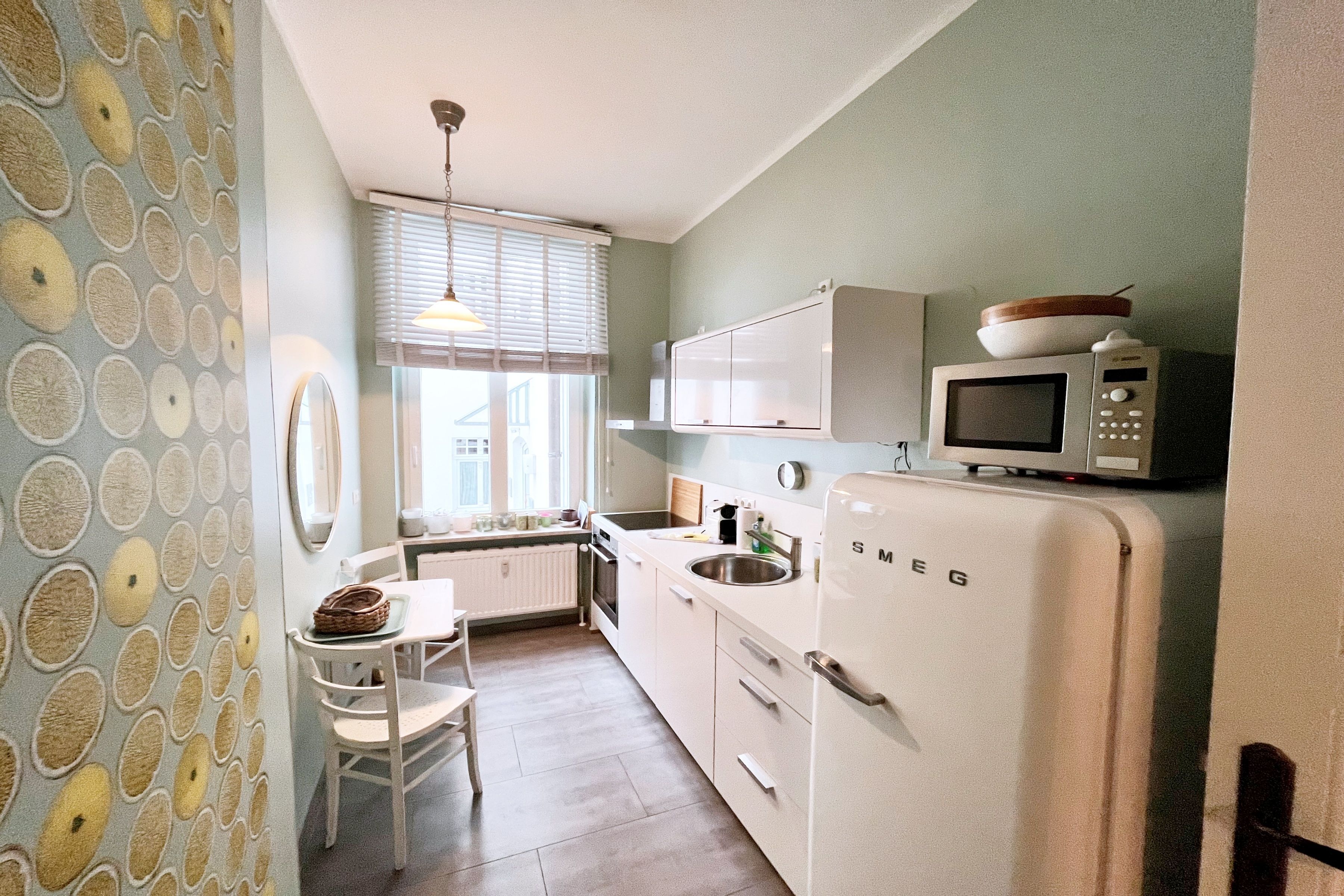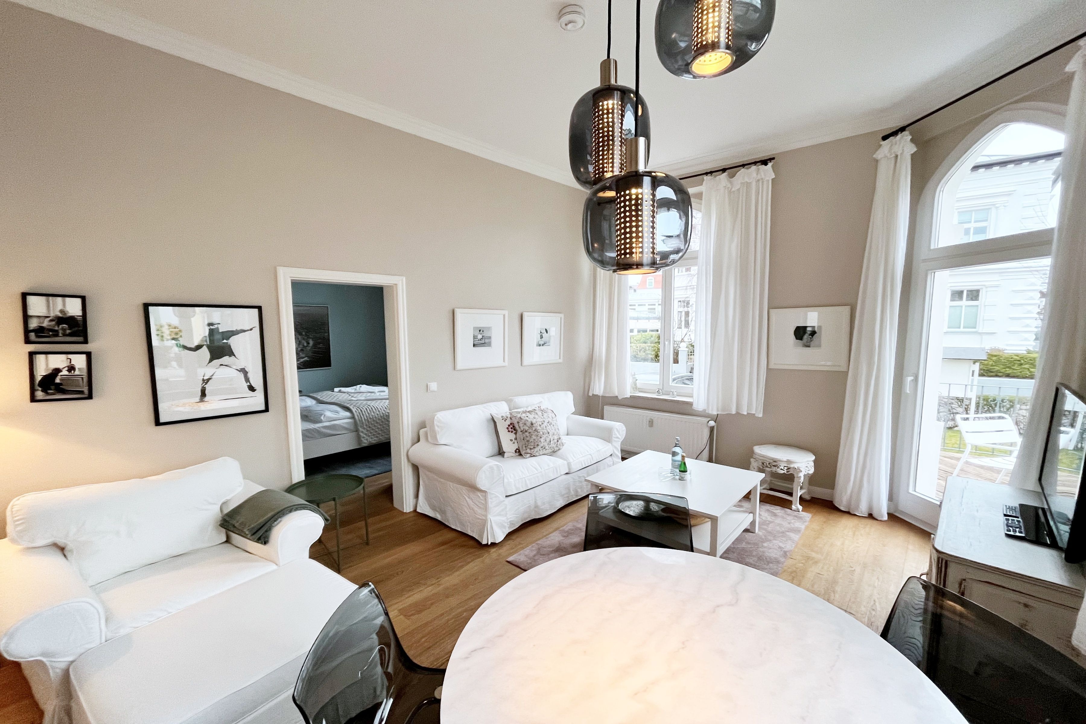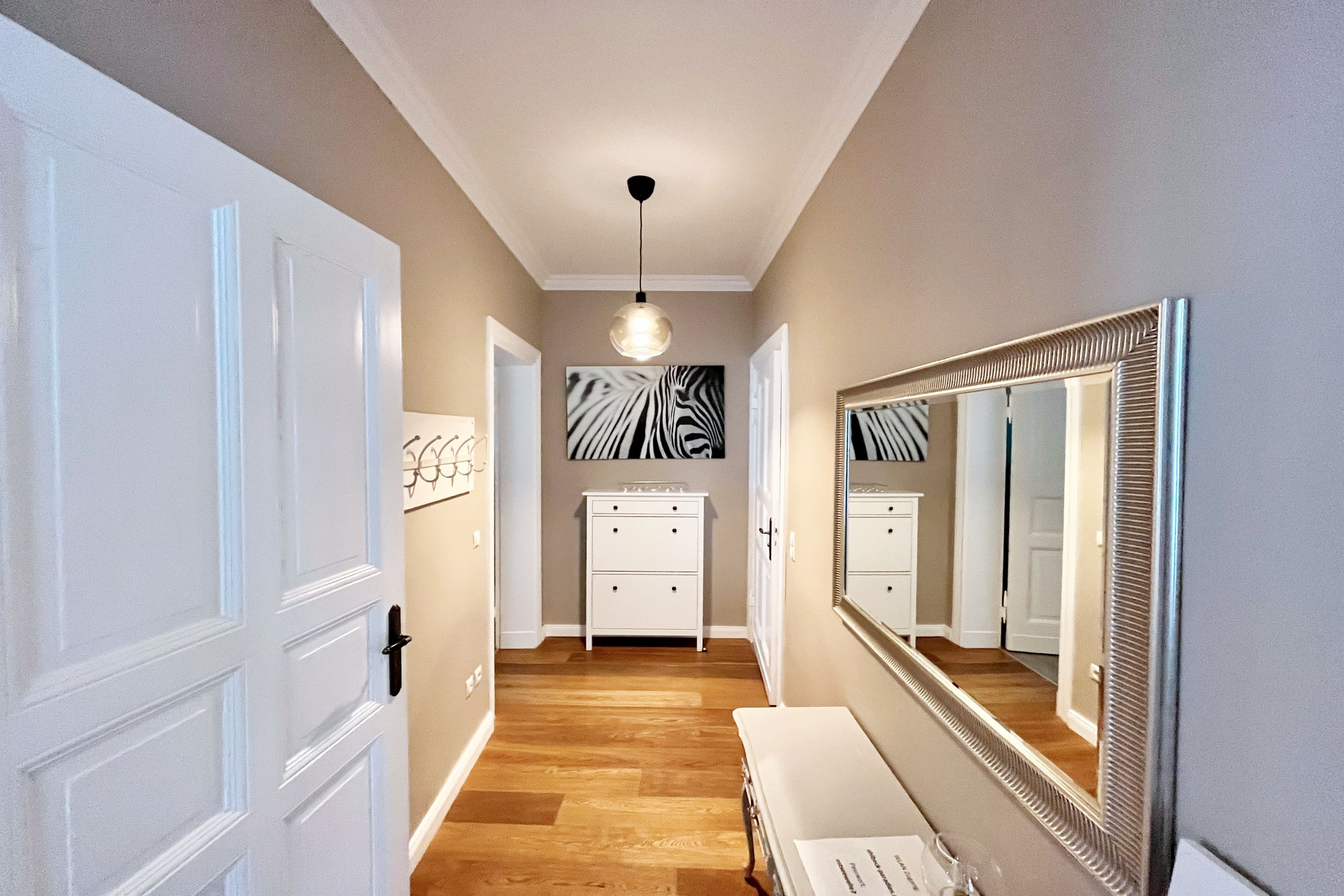 Die Ferienwohnung befindet sich im Erdgeschoss im historischen Altbau des Hauses Schloss Hohenzollern im Herzen des Seebades Ahlbeck.