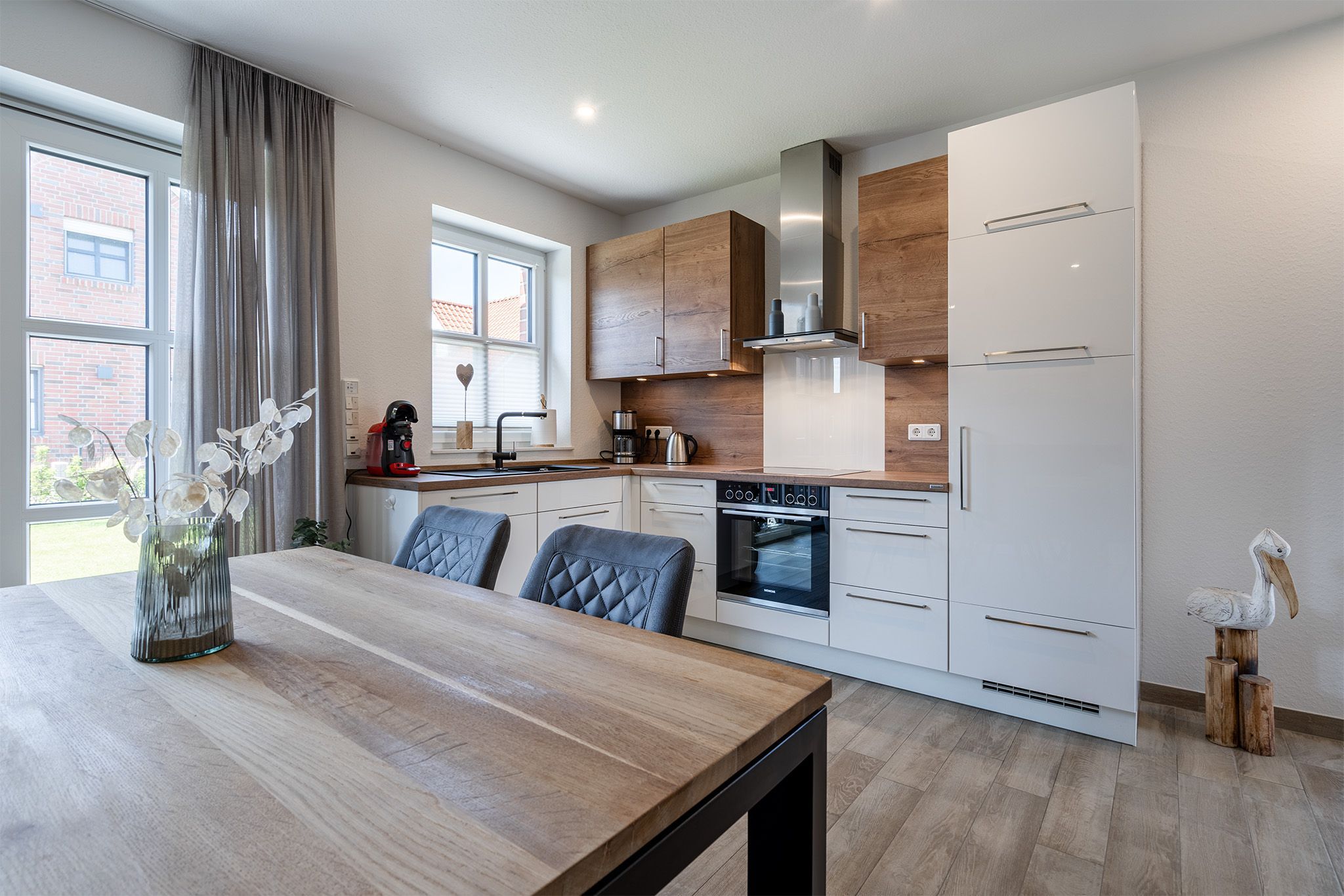 Bodengleiche Duschen, Fußbodenheizung, eine Waschmaschine und die voll ausgestattete Küche machen das Haus zu einem komfortablen Feriendomizil.
