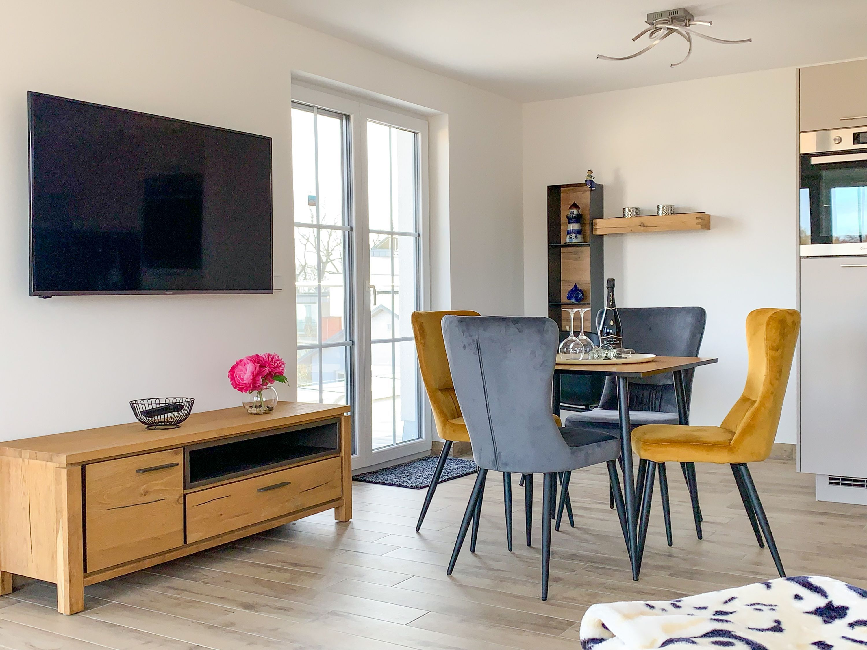 Das Penthouse Meerblick mit großer Dachterrasse befindet sich in einer modernen Apartmentanlage am Standort der Alten Fischfabrik in Lauterbach auf der Insel Rügen. Das Apartment bietet auf 60 m² eine angenehme Atmosphäre für 2 Personen mit Kamin und Blick auf den Yachthafen und den Greifswalder Bodden.