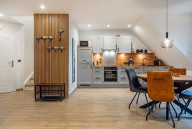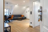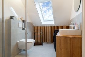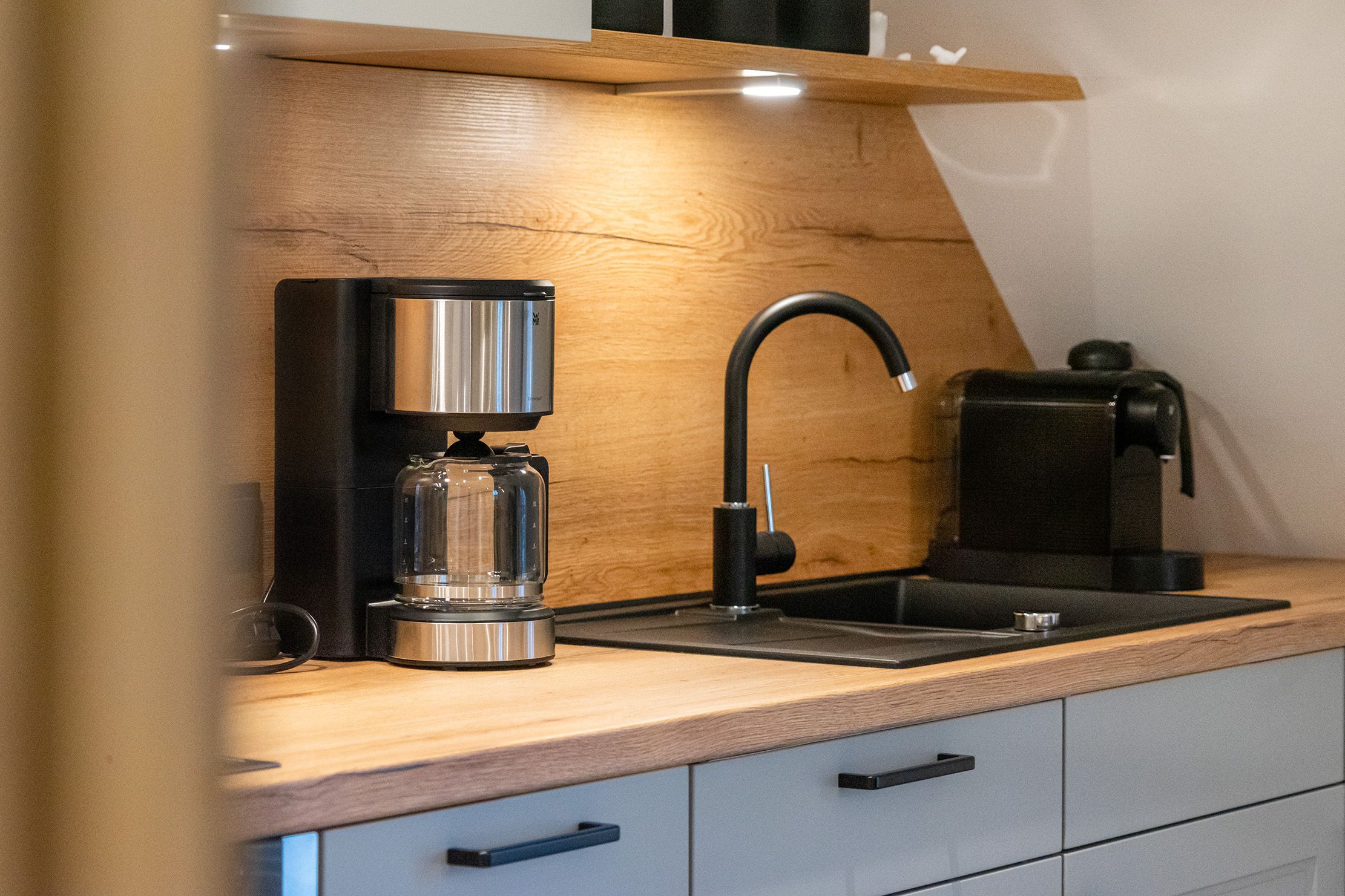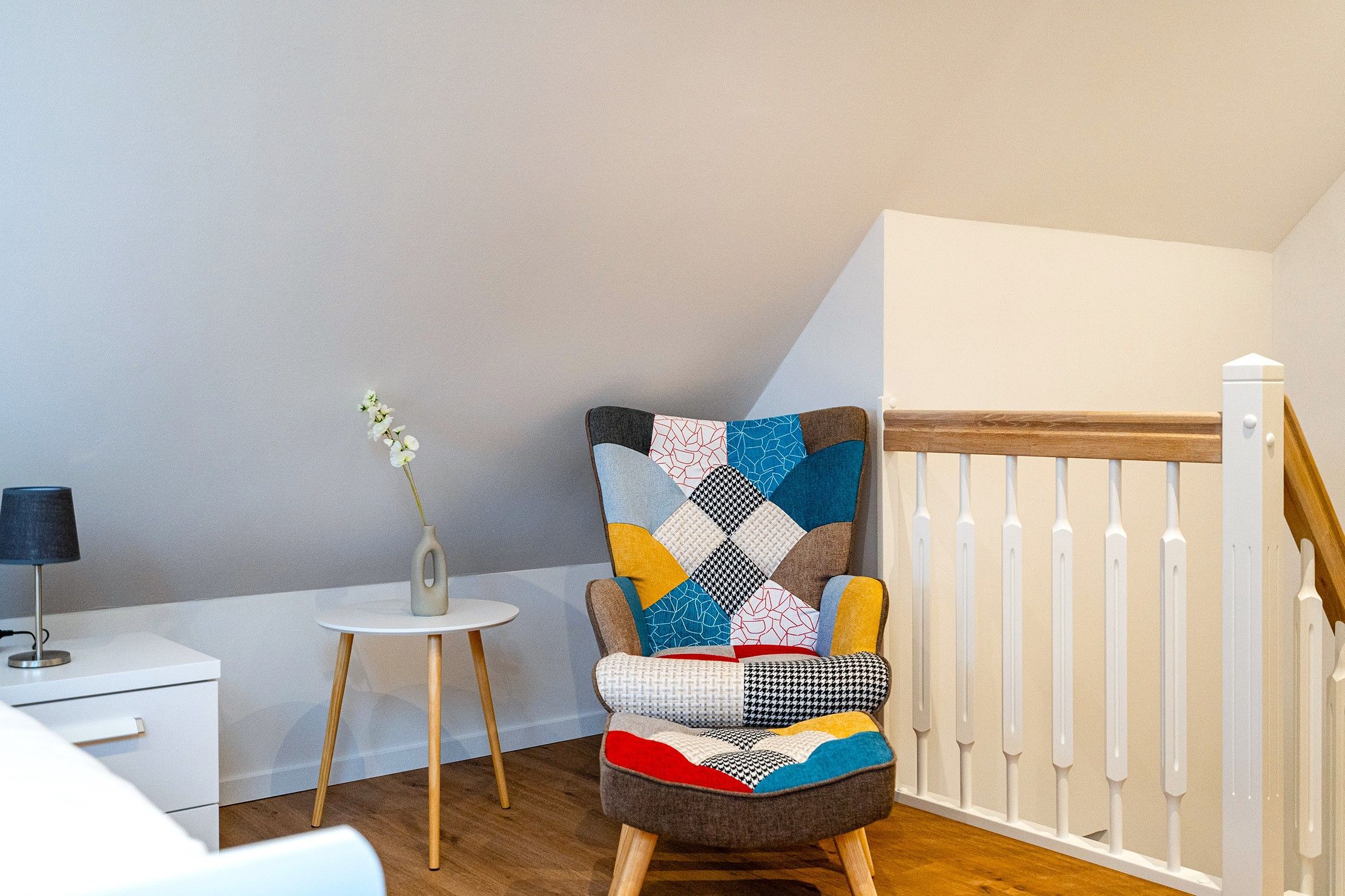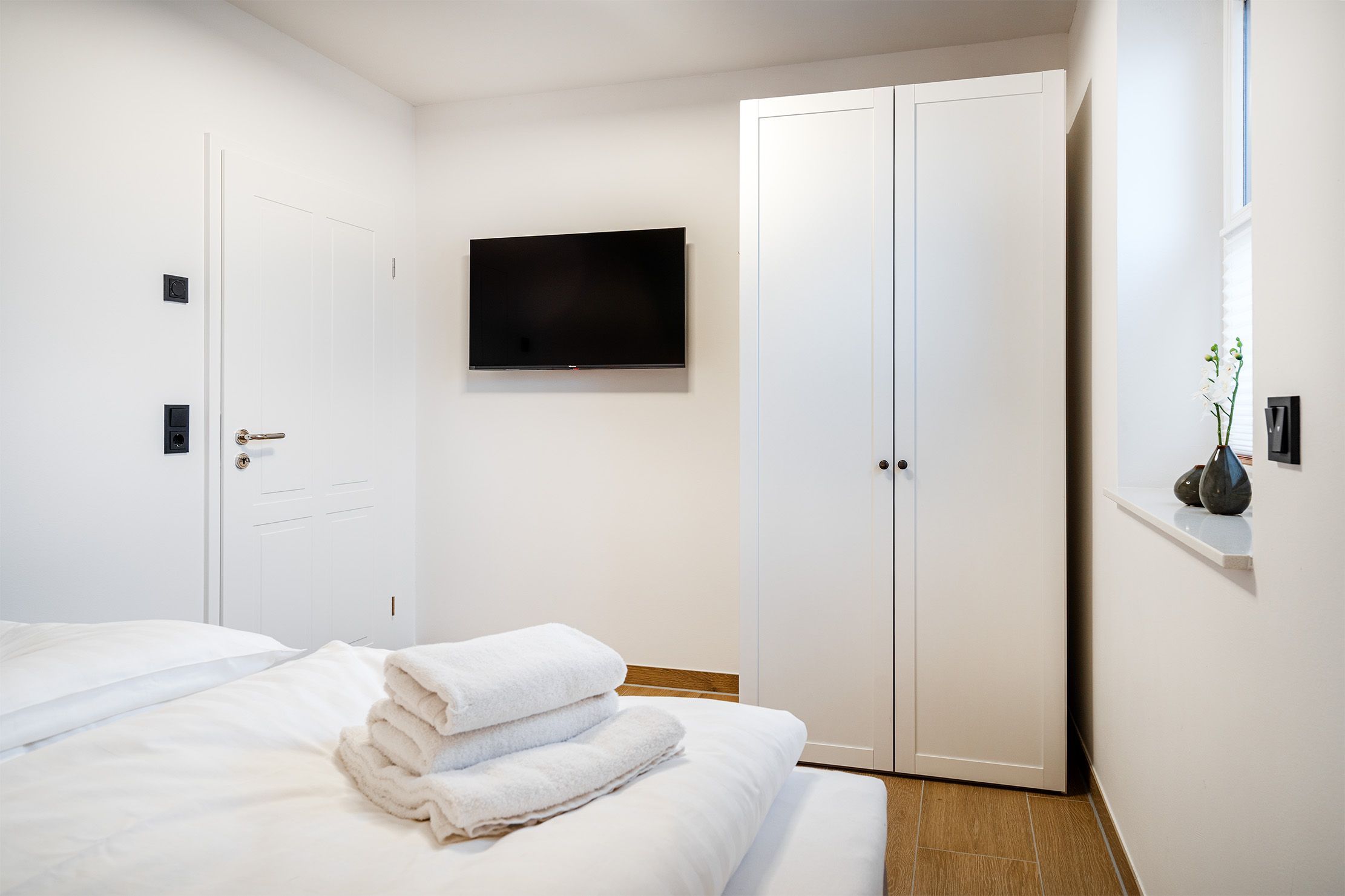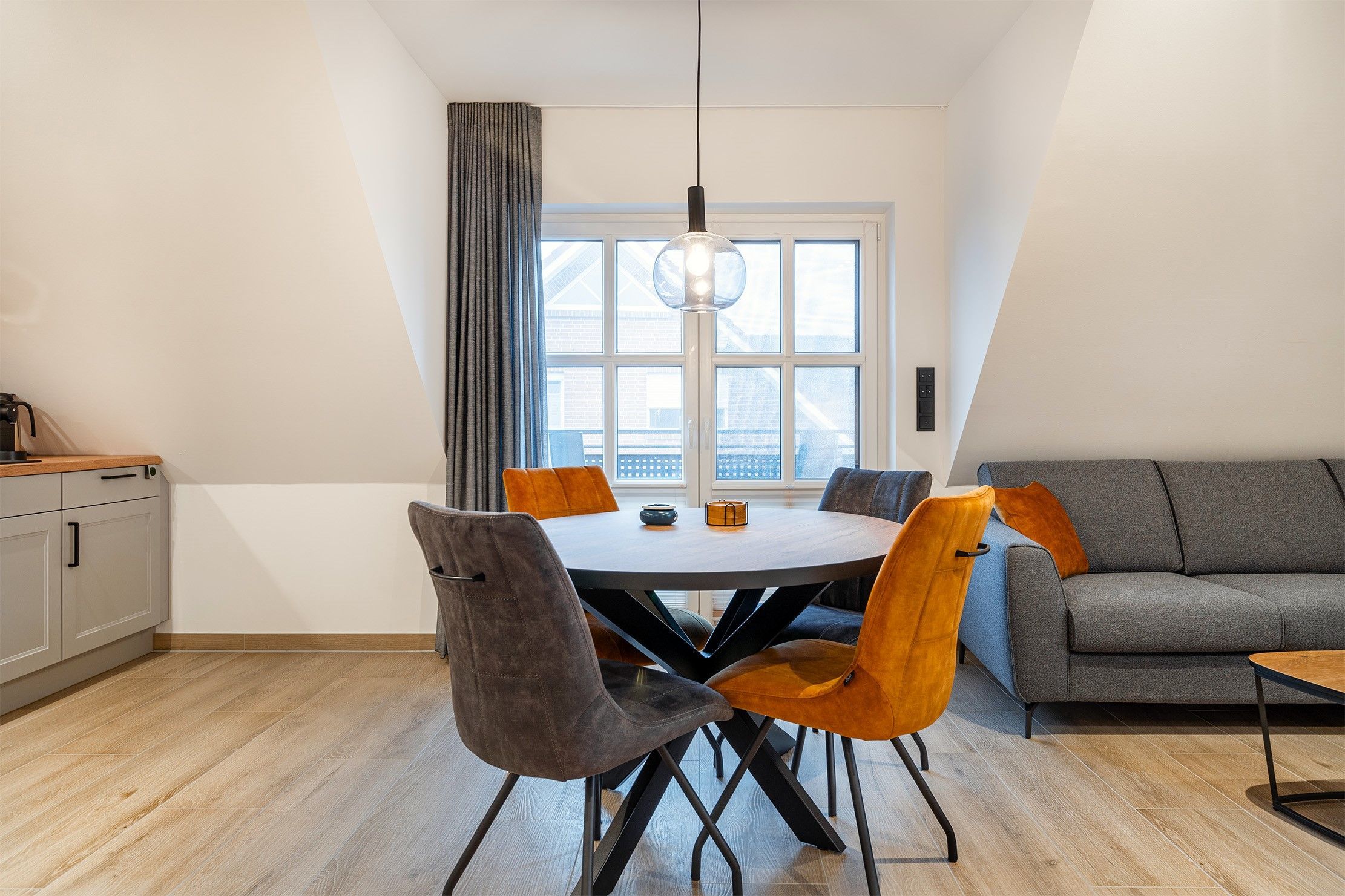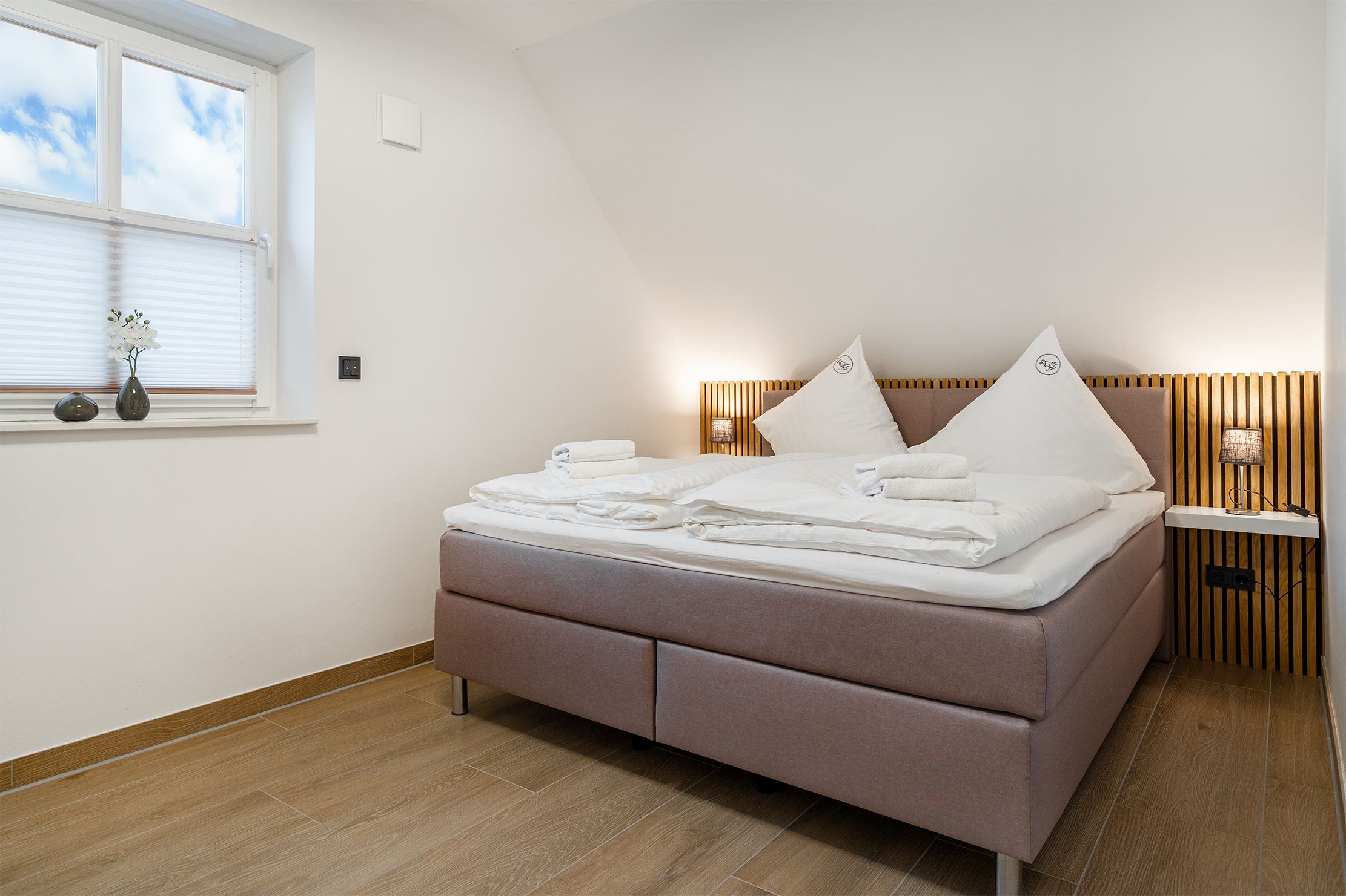 Unsere neue, charmante Obergeschosswohnung Möwenkoje bietet auf 65qm den idealen Rückzugsort für Ihren Greetsiel Urlaub. Der offene Wohnbereich besticht durch seine einladende Atmosphäre und hochwertige Einbauküche, die perfekt in den Raum integriert ist und keine Wünsche offen lässt. Neben einem gemütlichen Schlafzimmer, das erholsame Nächte verspricht, verfügt die Wohnung außerdem über ein helles Tageslichtbad mit einer ebenerdigen Dusche und einen kleinen Abstellraum. Der ausgebaute Spitzboden, der offen als Galerie gestaltet ist, bietet mit dem Lesesessel nicht nur einen gemütlichen Rückzugsort für entspannte Stunden sondern außerdem ein weiteres Doppelbett, sodass insgesamt vier Personen untergebracht werden können (zwei Einzelbetten, die mit Verbindung zum Doppelbett verbunden sind). Ein weiteres Highlight ist der Balkon, auf dem Sie die frische Nordseeluft genießen und den Blick schweifen lassen können. Ein Abstellraum für Ihre Fahrräder sowie ein PKW Stellplatz stehen Ihnen selbstverständlich zur Verfügung.