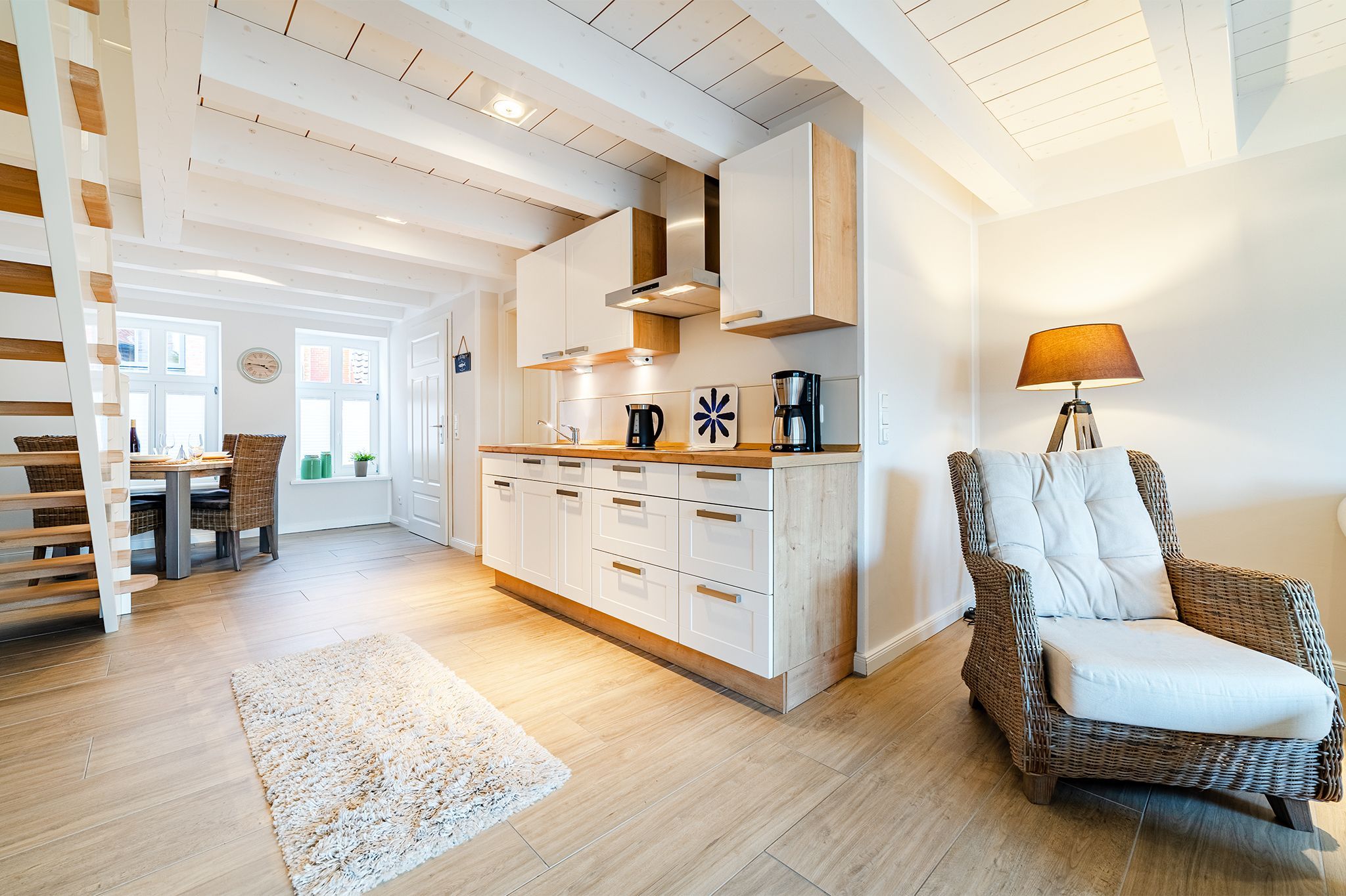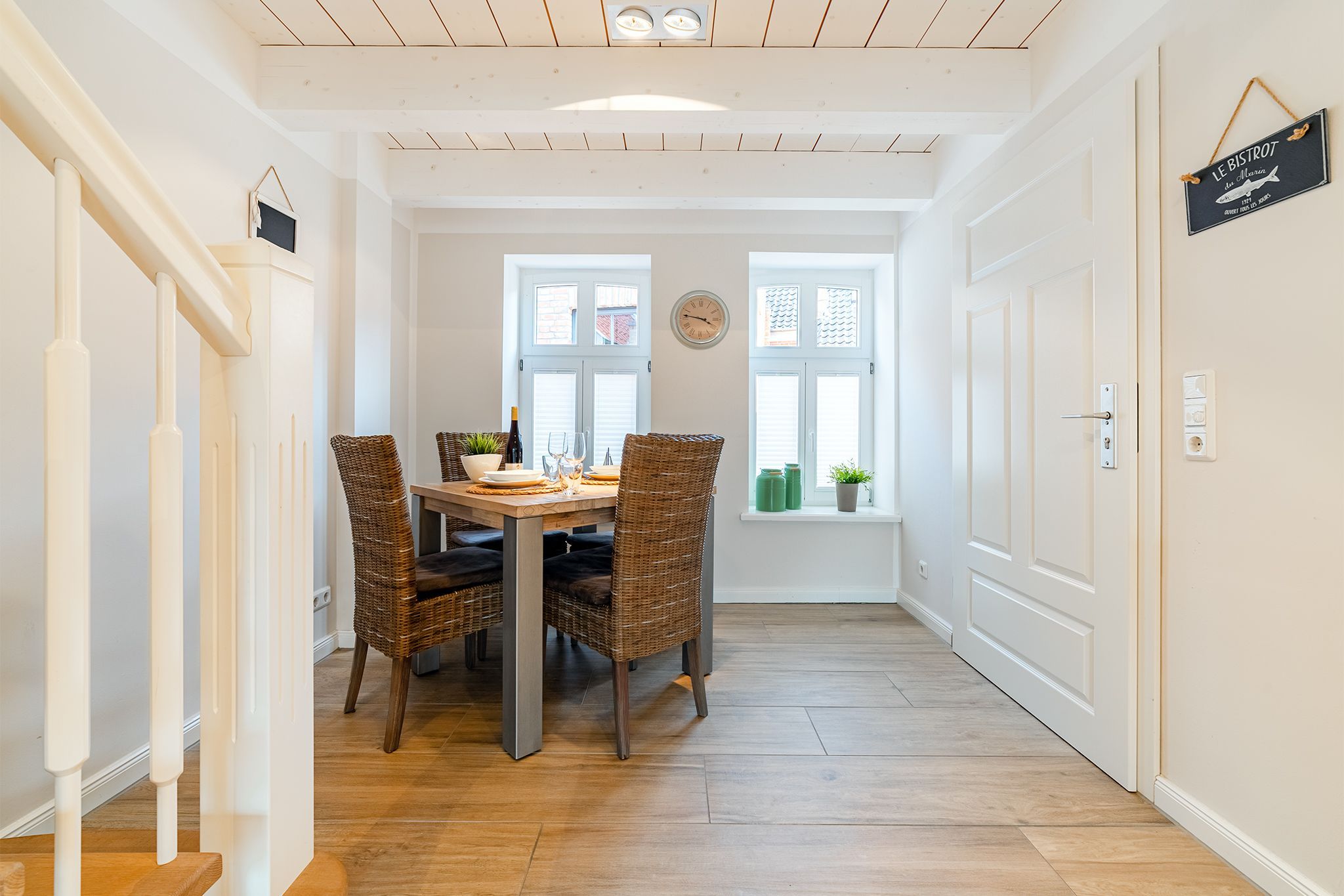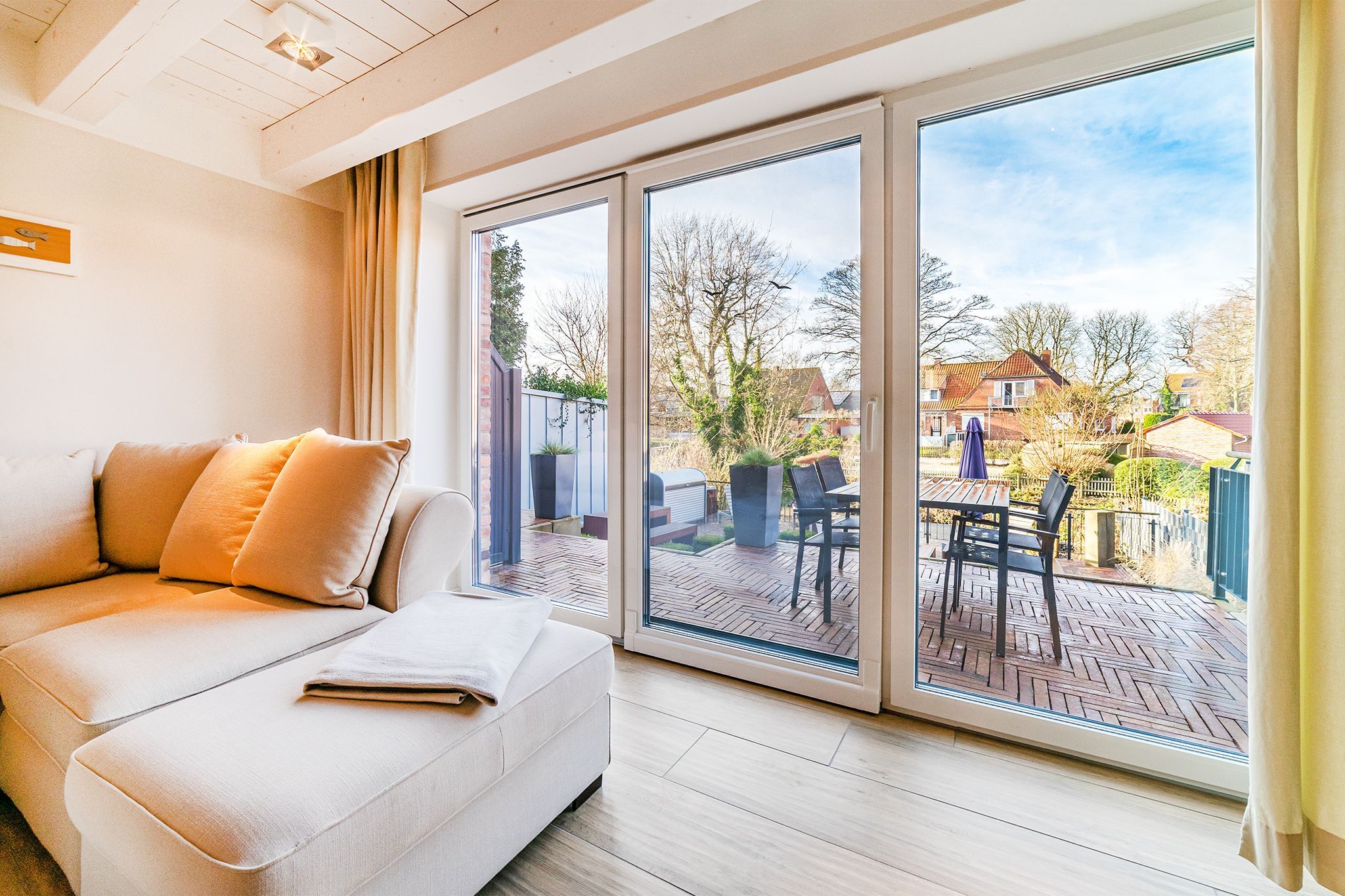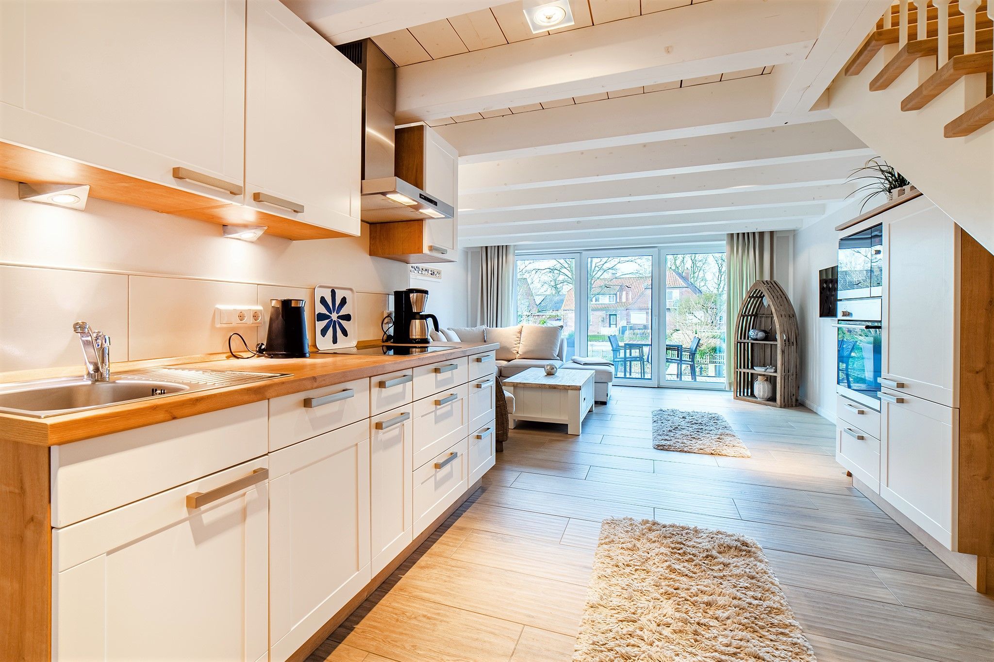 Das Haus am Siel besteht aus zwei Haushälften, hier ist die Rechte beschrieben. Sollten Sie mit mehr als 4 Personen reisen, kann die zweite Haushälfte (Haus am Siel 01) zusätzlich gebucht werden, über die offen gestaltete Terrasse erreichen Sie beide Haushälften.
