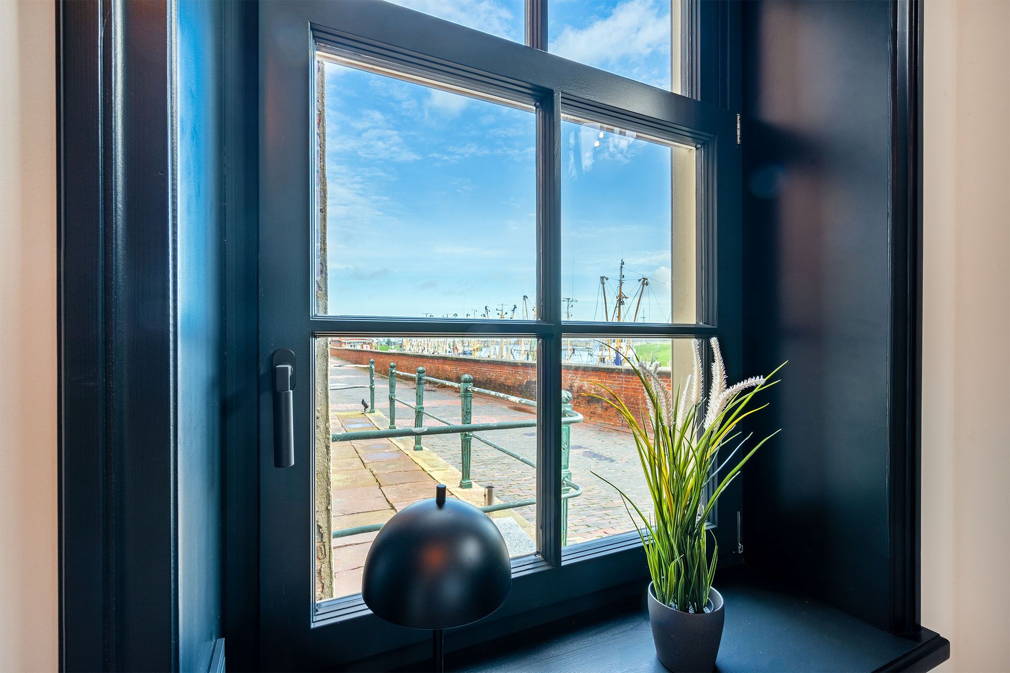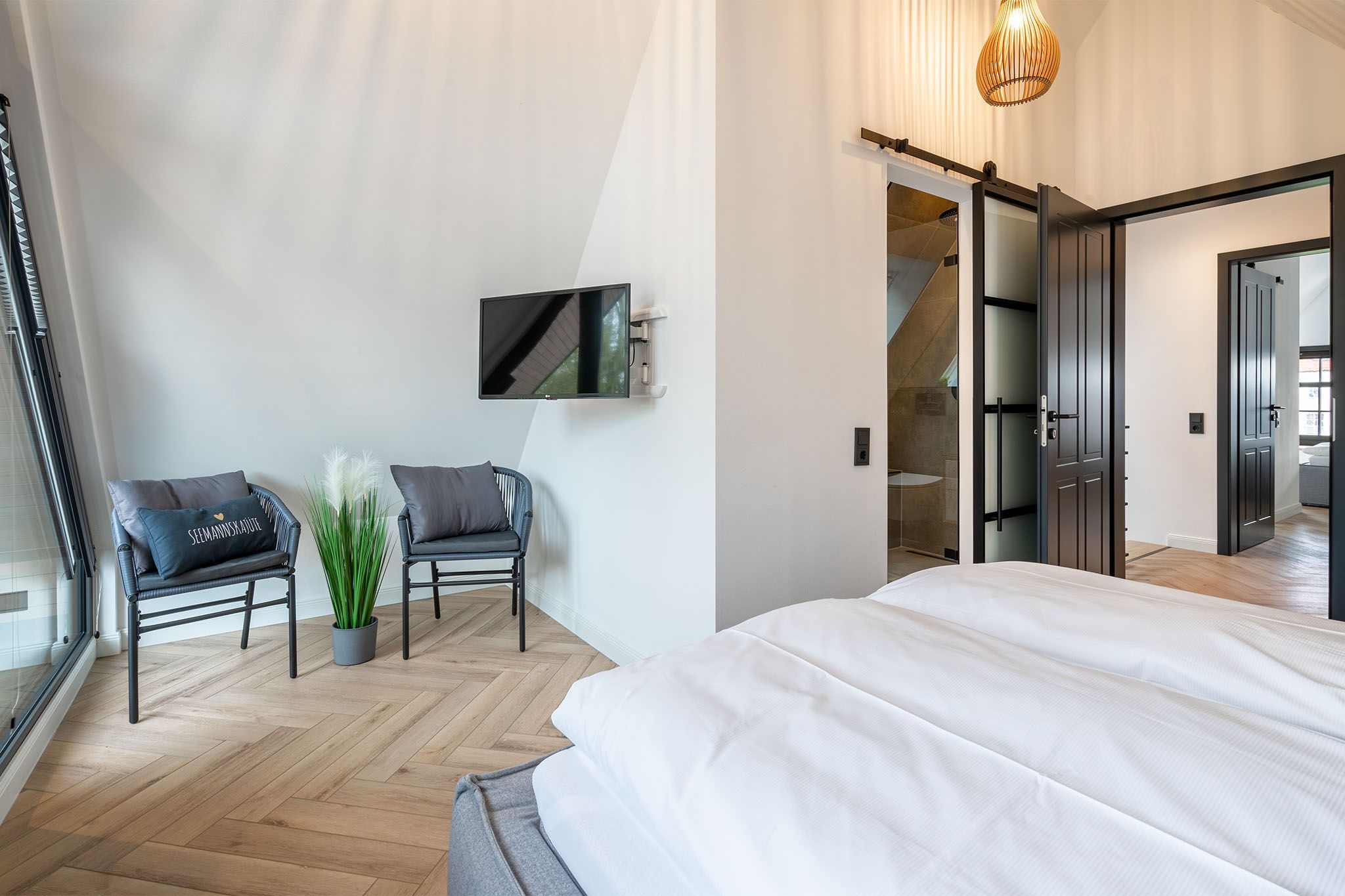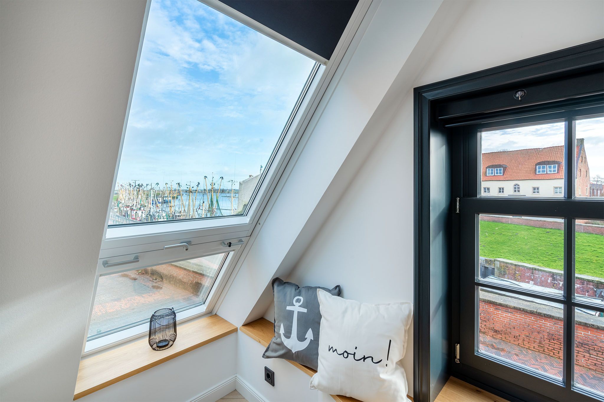 Luxus mitten im Greetsieler Hafen! Das bekannte Glockengiebel-Haus aus dem Jahre 1792 ist Teil der historischen Häuserzeile. Liebevoll und mit hochwertigsten Materialen 2021 komplett renoviert erstrahlt es heute in ganz neuem, modernen Glanz. Zwei Schlafzimmer, eine offene Küche, zwei Bäder und ein Gäste WC bieten exklusiven Komfort für maximal vier Gäste. Nicht nur die Lage, sondern auch die aufwändig restaurierten Details wie der Blick durch einen Glasfußboden in den historischen Keller, das alte Türschloss mit übergroßem Buntbart-Schlüssel oder das Cabrio-Fenster mit direktem Blick auf die Krabbenkutter machen dieses Objekt einzigartig. Zudem bietet Ihnen die private Terrasse Ihren ganz persönlichen Rückzugsort. Selbstverständlich steht Ihnen auch ein Parkplatz zur Verfügung, diesen finden Sie nur wenige hundert Meter entfernt im Ortskern. Zum Be-/Entladen können Sie selbstverständlich direkt vor die HafenKOJE fahren.