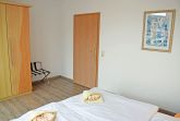 Schlafzimmer mit einem Doppelbett (180 x 200 cm) und großem Kleiderschrank