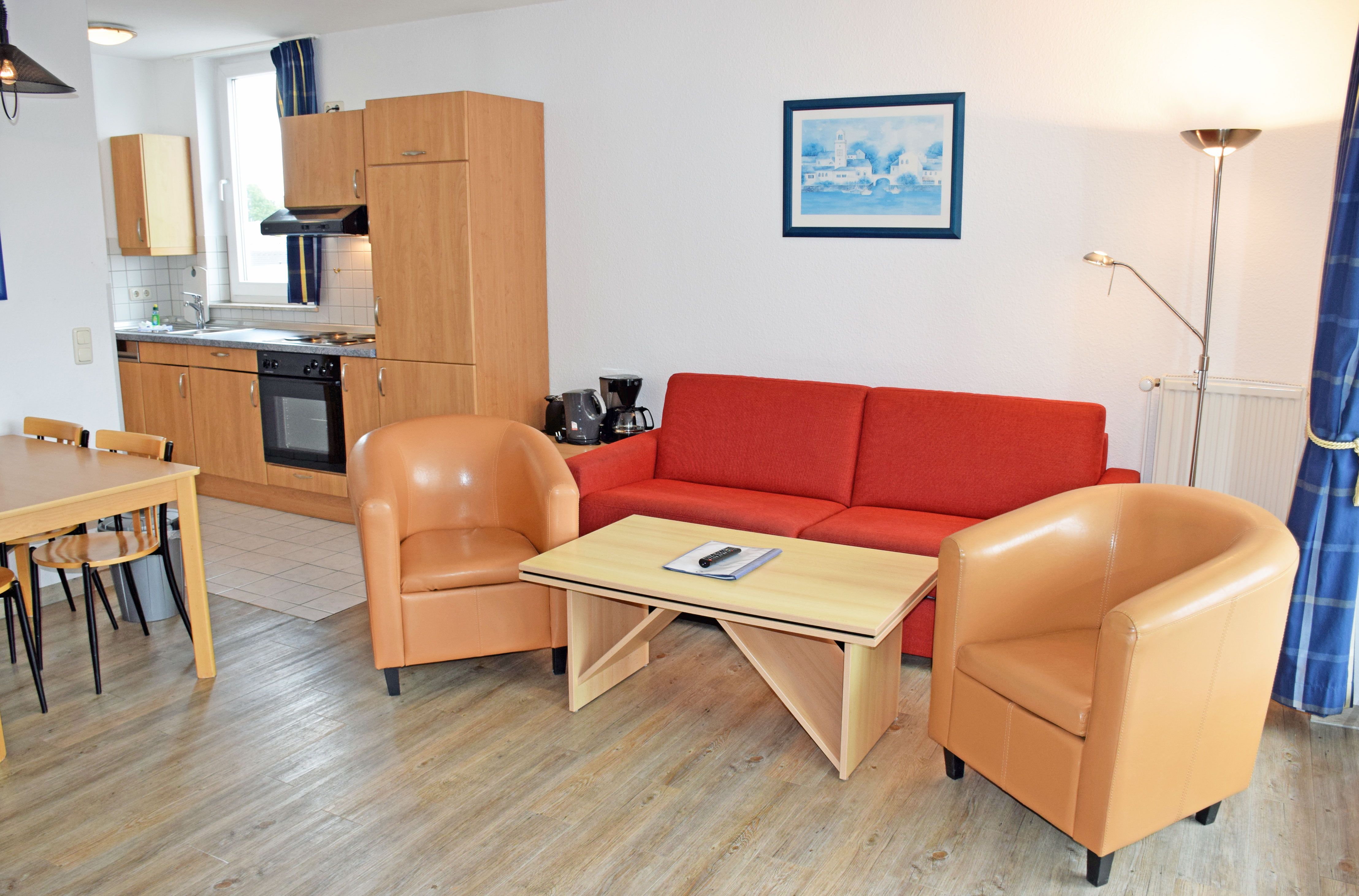 Mit Wohnraum, Küchenzeile, 1 bis 2 Schlafräumen und Bad mit WC sind die Ferienwohnungen für 4 bzw. 6 Erwachsene und ein Kind im Kinderreisebett bis 3 Jahre modern und komfortabel eingerichtet. Ein kleines Kinderreisebett sowie ein Hochstuhl können auf Wunsch kostenpflichtig zugebucht werden.