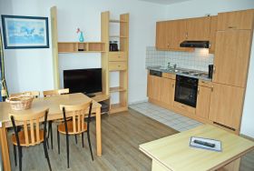 Mit Wohnraum, Küchenzeile, 1 bis 2 Schlafräumen und Bad mit WC sind die Ferienwohnungen für 4 bzw. 6 Erwachsene und ein Kind im Kinderreisebett bis 3 Jahre modern und komfortabel eingerichtet. Ein kleines Kinderreisebett sowie ein Hochstuhl können auf Wunsch kostenpflichtig zugebucht werden.