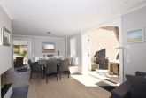 Das geräumige Wohnzimmer ist in einen gemütlichen Essbereich an der offenen Einbauküche und einen komfortablen Lounge-Bereich