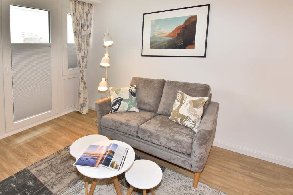 Die ca. 38 qm große Ferienwohnung ist, mit Ausnahme des Badezimmers, komplett mit Venylboden in Holzoptik ausgelegt, mit Ostloggia (mit Balkonmöbeln, Sonne bis ca. 13 Uhr in den Sommermonaten) und befindet sich in bevorzugter Lage. Durch die Komplettsanierung, einer hell und freundlichen Neumöblierung und durch Anpassung des Grundrisses (Öffnung von Wänden) hat man ein besonders angenehmes, neues Raumempfinden.