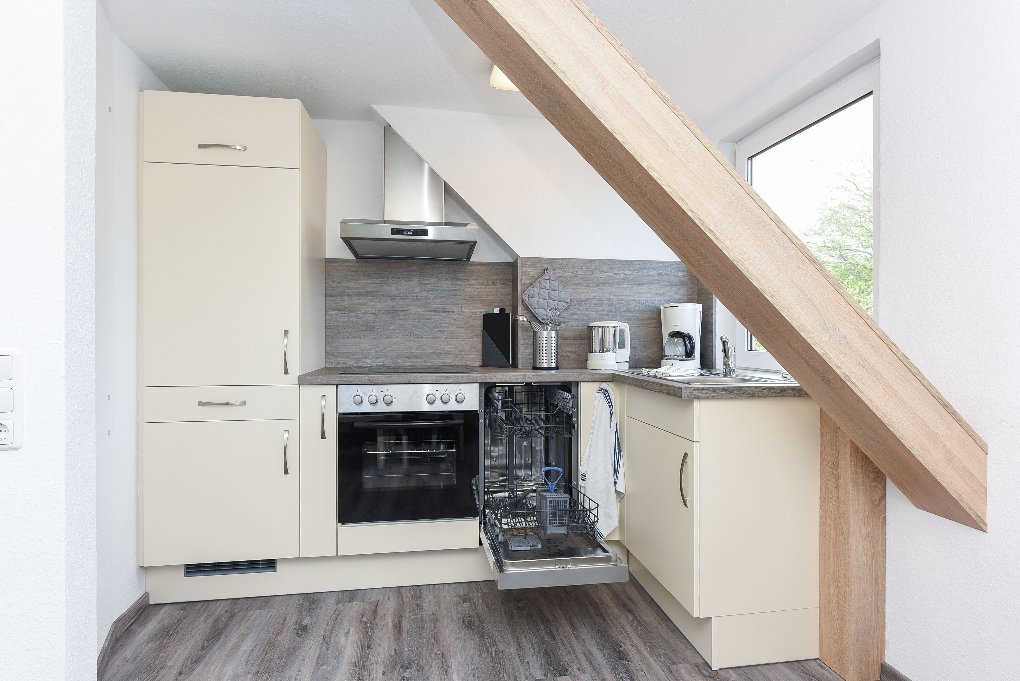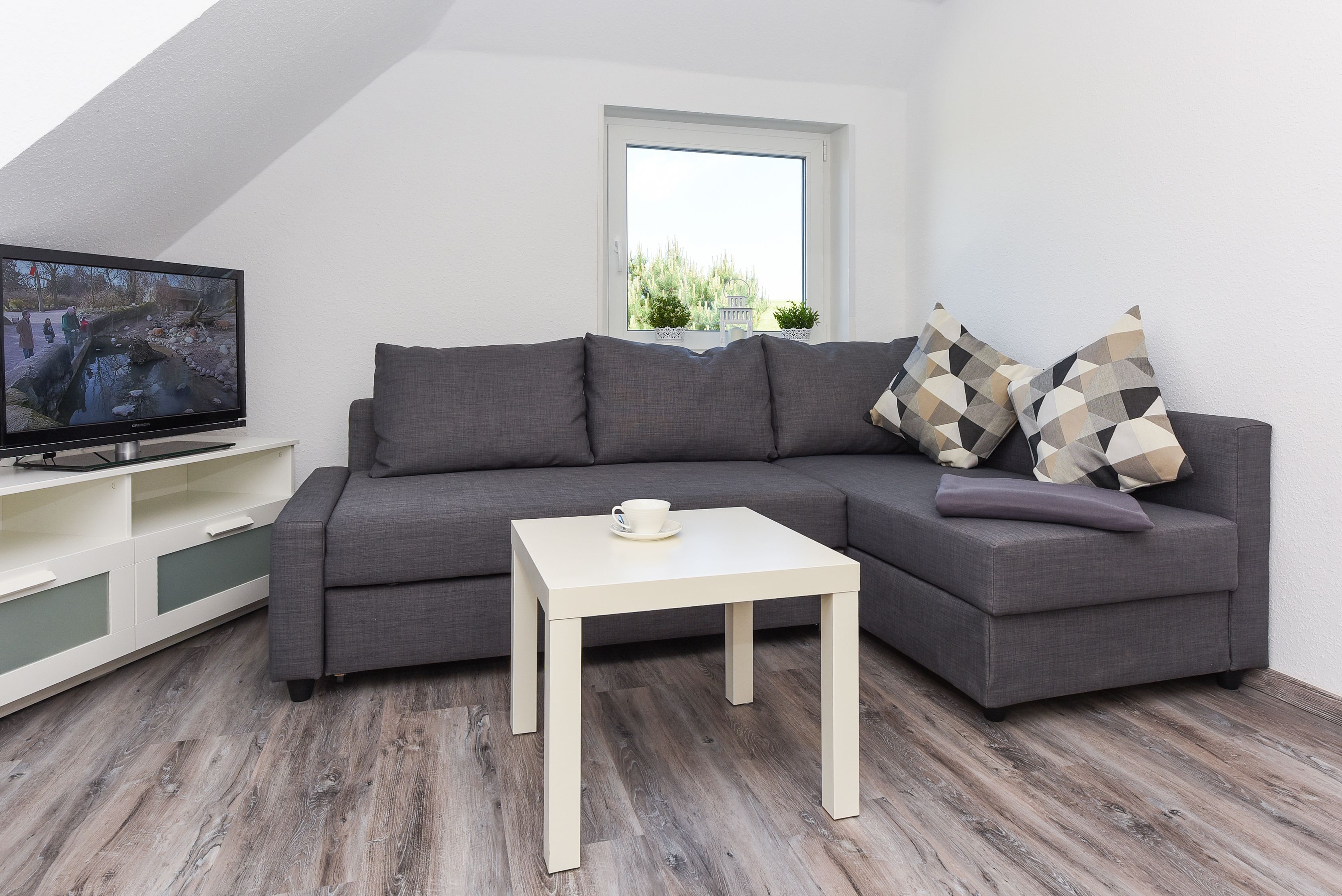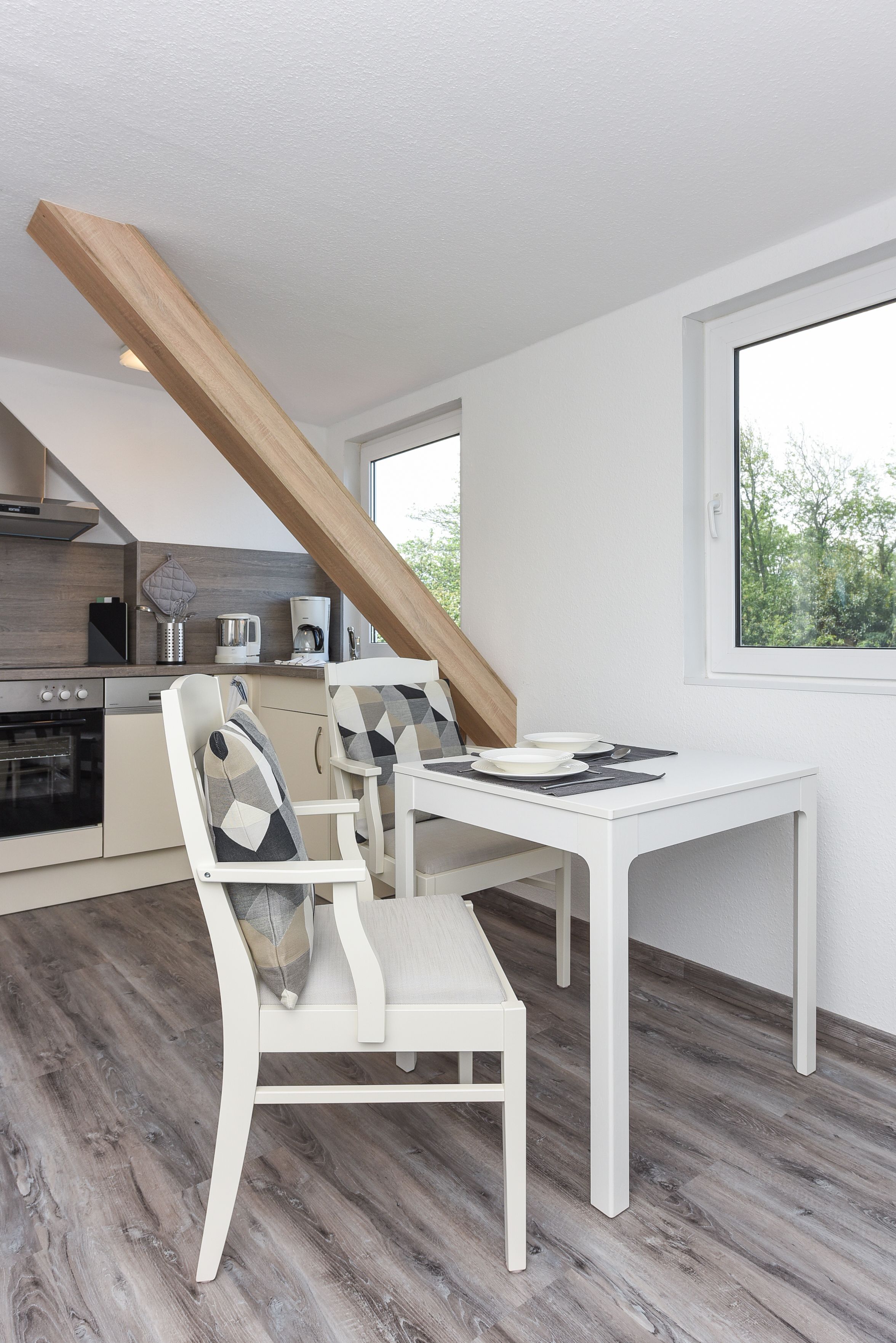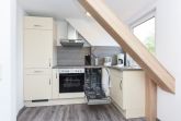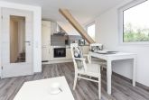 Größe ca. 35 Quadratmeter, Wohnzimmer mit integr. Küche, Schlafzimmer, Badezimmer mit Dusche, Waschtisch und WC´, Obergeschoss, optimal für 1 bis 2 Personen.