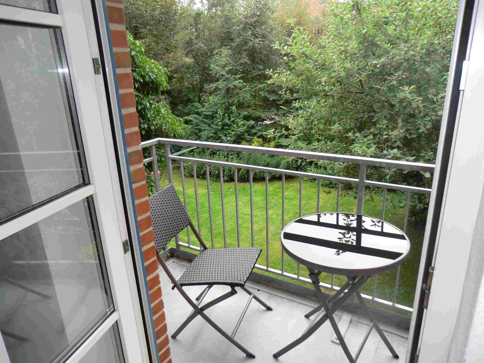 Sie hat eine abgeschlossene Küche mit Einbauküche und einen mit einem Tisch und 2 Stühlen möblierten Südbalkon.