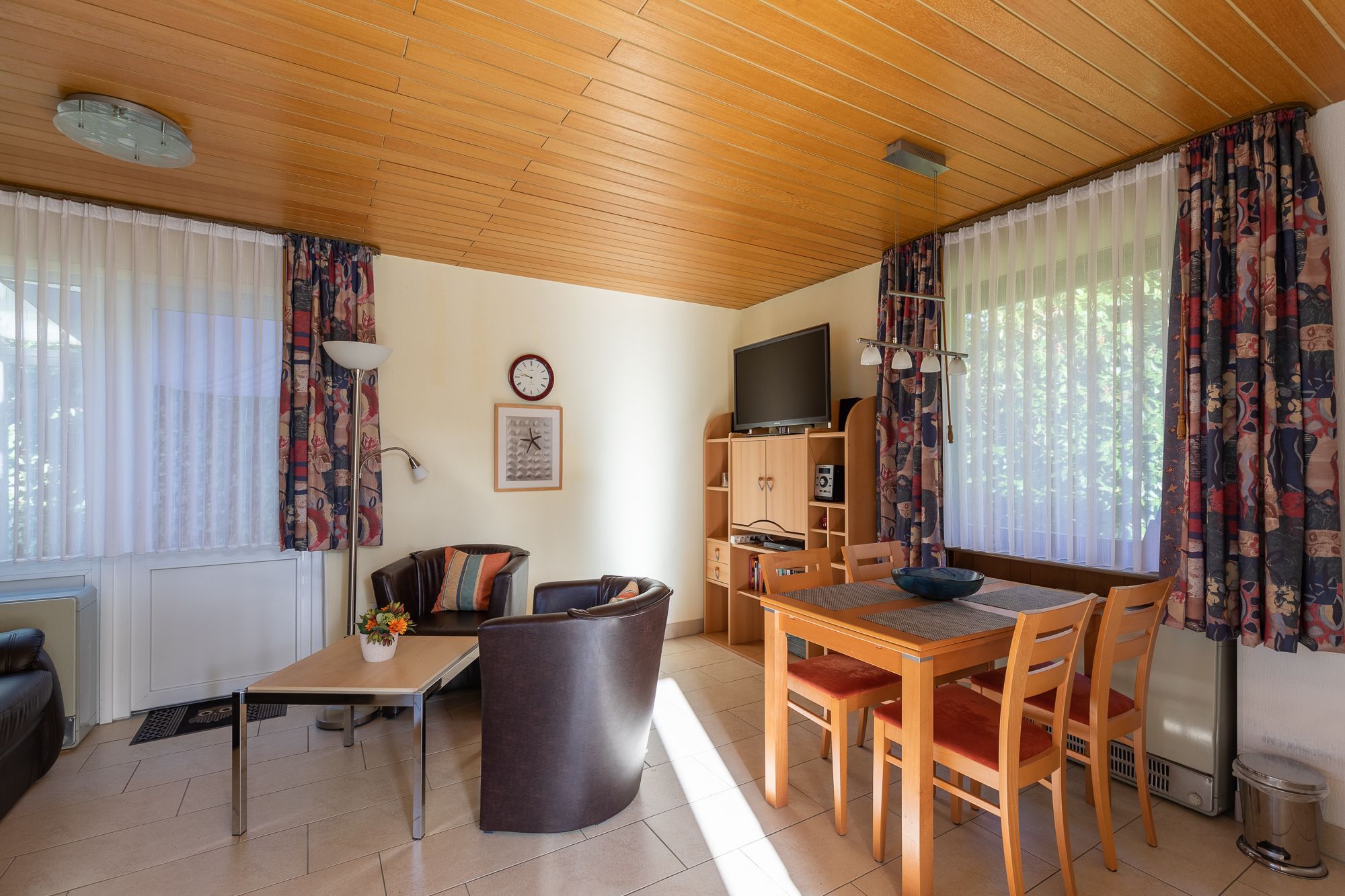 Das Ferienhaus mit einer Größe von ca. 58 m² Wohnfläche ist komplett bis zu 4 Personen ausgestattet. 1 Schlafzimmer mit Doppelbett, 1 Schlafzimmer mit 2 Einzelbetten, Küche mit Cerankochfeld, Geschirrspüler, Kühlschrank mit Gefrierfach, Wohnzimmer mit Essplatz, Sofa und direktem Zugang zur Terrasse mit dem Garten, 1 Badezimmer mit ebenerdiger Dusche und WC, Flatscreen TV im Wohnzimmer, Nichtraucherhaus, keine Haustiere, PKW-Stellplatz direkt am Haus.