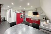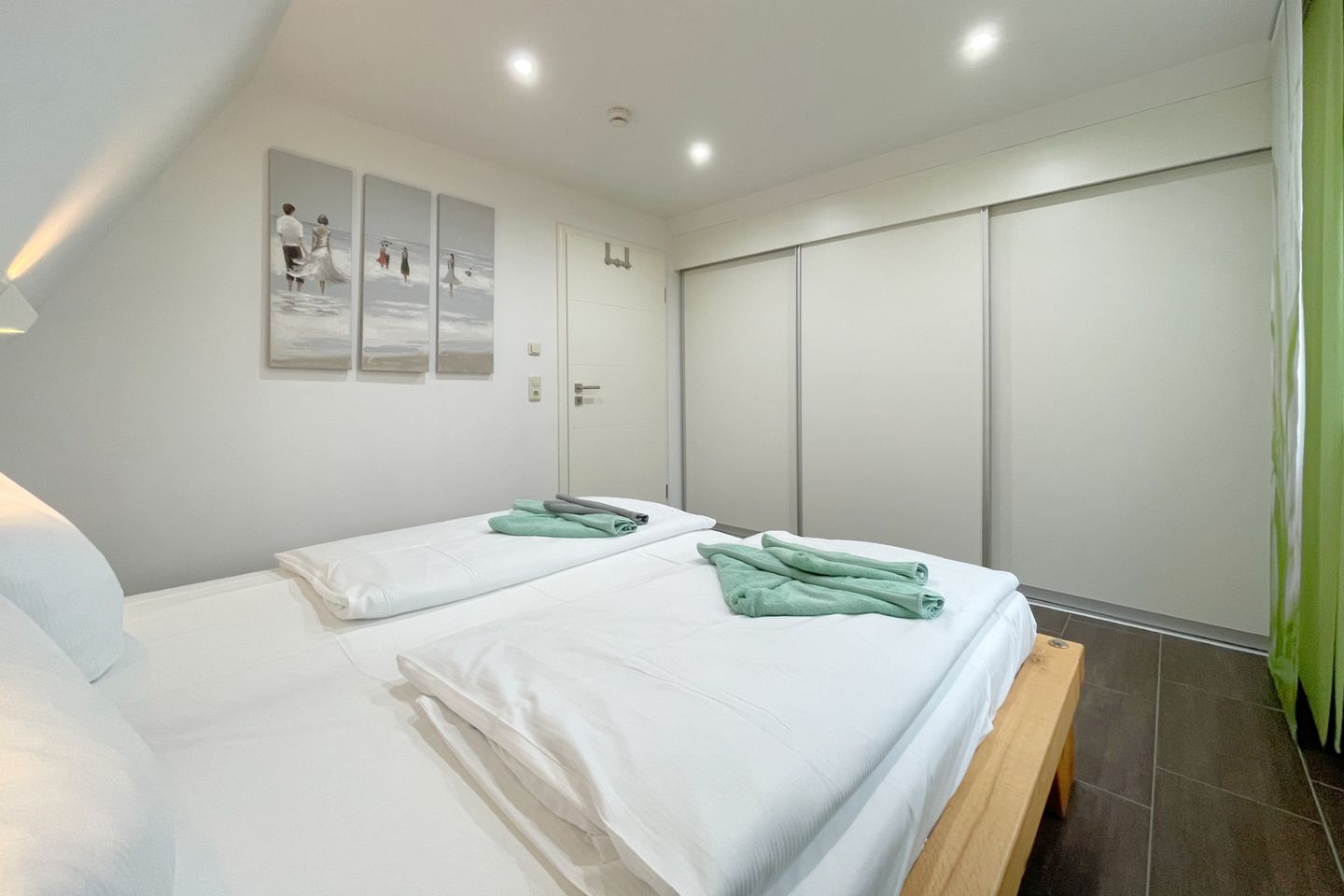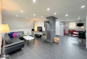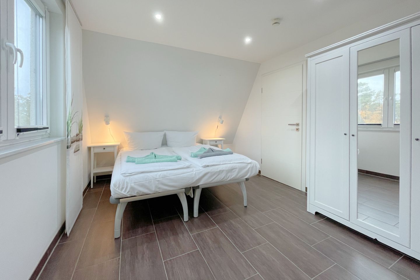 Das Ferienhaus verfügt über insgesamt drei Zimmer, darunter ein geräumiges Wohnzimmer mit einer offenen Küche, die den perfekten Rahmen für gesellige Abende mit Freunden oder Familie bietet. Die moderne Küche ist vollständig ausgestattet und lässt mit ihren hochwertigen Geräten wie einem Cerankochfeld, einem Backofen und einer Geschirrspülmaschine keine Wünsche offen. Hier können Sie kreative Mahlzeiten zubereiten und den Alltag hinter sich lassen. Im Essbereich können Sie gemeinsam speisen und den Tag mit einem leckeren Frühstück beginnen, während das einladende Sofa im Wohnzimmer für entspannte Stunden optimal geeignet ist.