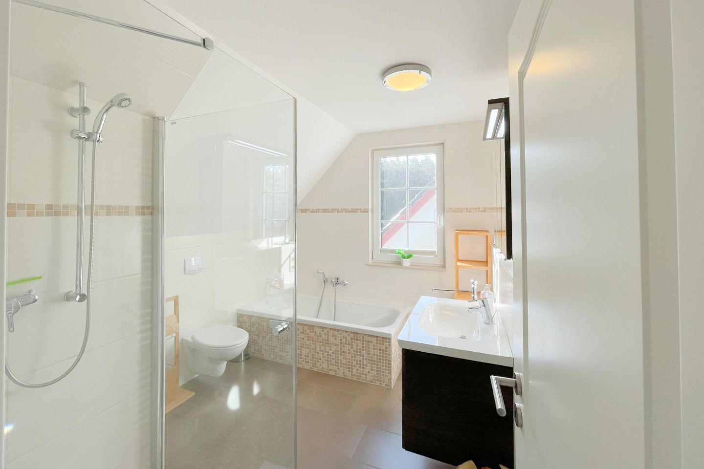 Modernes Ferienhaus mit 2 Wohnungen, auch kombinierbar für größere Gruppen/ Familien. Beide Wohnungen sind großzügig geschnitten, sind liebevoll und modern eingerichtet und verfügen über einen Balkon oder zwei Terrassen. Auf dem Grundstück befindet sich ein Carport und ein weiter Stellplatz.