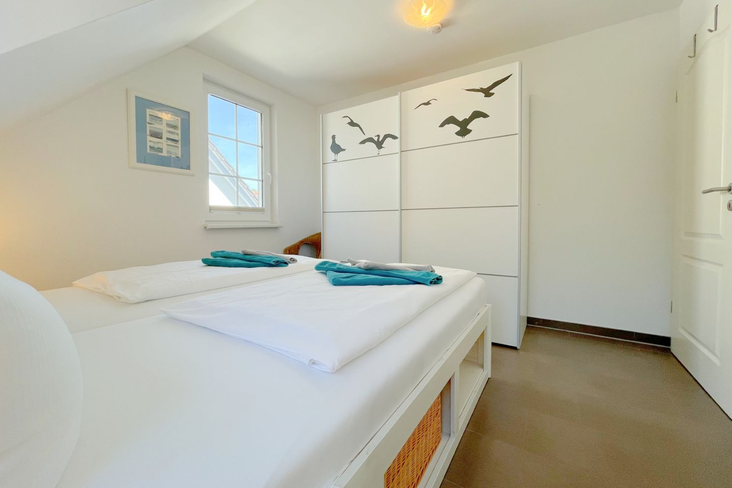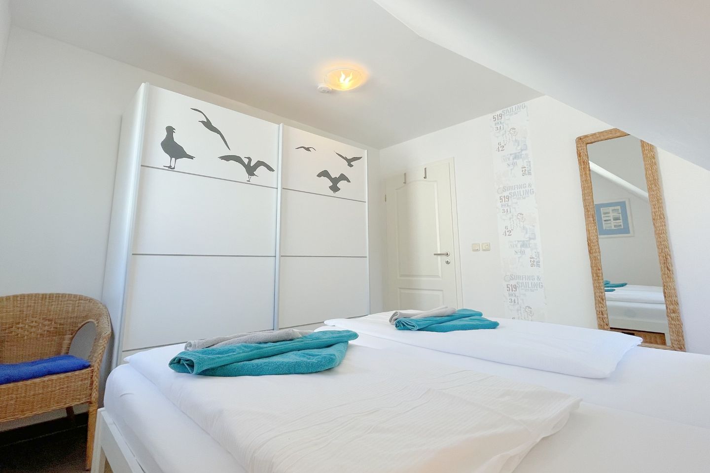 Der großzügige Balkon lädt mit seinem Blick in die grüne Umgebung zum Entspannen ein. Genießen Sie gemütliche Grillabende mit Freunden oder einfach das sanfte Licht der Abendsonne. Für die Kleinsten ist die Ferienwohnung kinderfreundlich ausgestattet, sodass sich die ganze Familie wohlfühlen kann. Die Ausstattung der „Seemöwe“ lässt keine Wünsche offen. Sie finden eine voll ausgestattete Küche mit Ceranherd, Mikrowelle mit Grillfunktion und Kühlschrank vor, sodass Sie auch während Ihres Aufenthalts kulinarischen Genüssen nachgehen können. Das Badezimmer ist mit einer ebenerdigen Dusche ausgestattet und bietet einen Ort der Erholung nach einem langen Tag am Strand. Für gemütliche Abende sorgt der Kaminofen im Wohnzimmer, der eine behagliche Atmosphäre schafft.