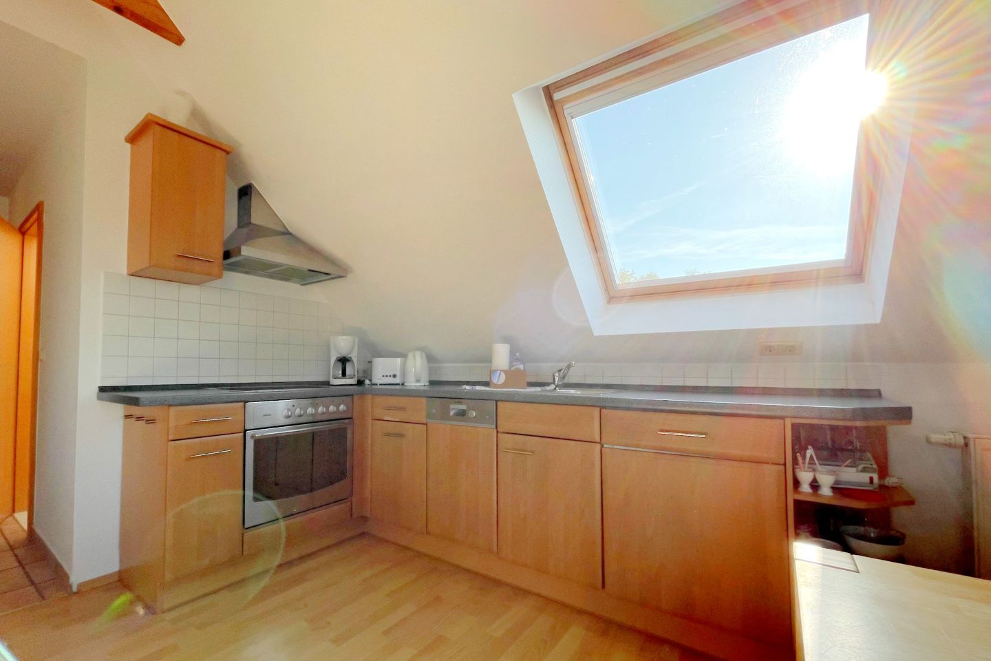 Die Wohnung verfügt über zwei komfortable Schlafzimmer, die sowohl Ruhe als auch Gemütlichkeit bieten. Der offene Wohn- und Essbereich lädt zu geselligen Abenden ein und ist mit einer modernen Küche ausgestattet, die alles bietet, was Sie zur Zubereitung Ihrer Lieblingsgerichte benötigen – von einem Cerankochfeld über einen Backofen bis hin zu einer Spülmaschine und umfangreichen Küchenutensilien. Genießen Sie Ihre Mahlzeiten am Esstisch oder auf dem Balkon, der einen herrlichen Blick auf die umliegende Natur bietet.