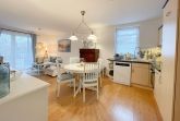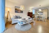 Die Wohnung befindet sich im Erdgeschoss eines charmanten Mehrfamilienhauses, das 2001 erbaut und 2019 renoviert wurde. Sie betreten die Wohnung durch einen freundlichen Eingangsbereich, der Sie direkt in den offenen Wohn- und Essbereich führt. Hier erwarten Sie eine gemütliche Sofaecke und ein Esstisch, die zu geselligen Abenden und entspannenden Stunden einladen. Für Unterhaltung sorgt ein digitaler TV, so dass Sie nach einem erlebnisreichen Tag die Füße hochlegen und entspannen können.