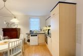 Die offene Küche ist komplett ausgestattet und lässt keine Wünsche offen. Sie finden hier ein modernes Cerankochfeld, einen Elektrobackofen, eine Spülmaschine, einen Kühlschrank mit Gefrierfach und zahlreiche Küchenutensilien. Bereiten Sie sich Ihre Lieblingsgerichte zu und genießen Sie diese am Esstisch oder auf der eigenen Terrasse, die mit gemütlichen Gartenmöbeln ausgestattet ist und Ihnen einen Blick in den Garten bietet – eine ideale Kulisse für ein Frühstück im Freien oder ein romantisches Abendessen.