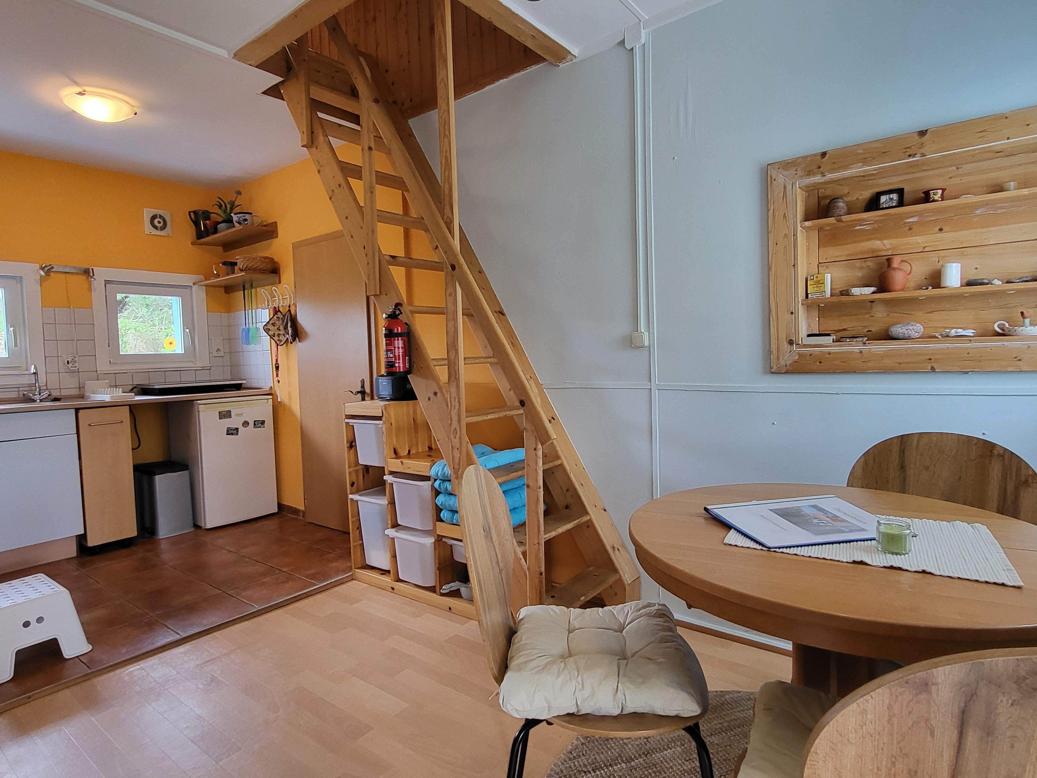 das kleine Ferienhaus in Dierhagen- Ost liegt direkt hinter der Düne. Das Haus verfügt über eine gemütliche und einfache Ausstattung und bietet genügend Platz für zwei Personen. Die kleine westseitig gelegene Terrasse am Haus lädt zum Relaxen und Entspannen ein, oder genießen Sie den Sonnenuntergang am Strand mit einem guten Glas Wein in direkter Nähe. Der Wohnbereich im Erdgeschoss ist ausgestattet mit SAT- TV und einer Couch. Der offene Küchenbereich bietet mit einem zwei Platten- Induktionsfeld, einem Kühlschrank mit Gefrierfach verschiedene Möglichkeiten, regionale Gerichte auszuprobieren. Das helle Badezimmer des Ferienhauses an der Ostsee ist mit einem WC und einer Dusche ausgestattet. Das Schlafzimmer im Obergeschoss ist über eine Treppe erreichbar und verfügt über ein Doppelbett 1,80 x 2,00 m (getrennte Matratzen). Im Obergeschoss befindet sich ein Ankleidezimmer mit ausreichend Stauraum. Unser Haus ist ein Nichtraucherhaus. Die Bettwäsche und Handtücher sind inklusive.
