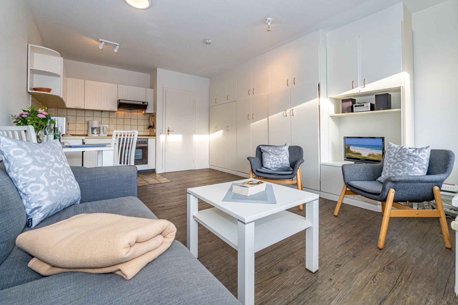2-Zimmer-Nichtraucher-Ferienwohnung ca. 48 qm in der 1. Etage zur Südseite mit Südbalkon (mit Balkonmöbeln und Auflagen) für max. 4 Personen.