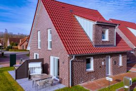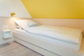 Die modern eingerichteten Doppelhaushälften für bis zu vier Personen erstrecken sich über zwei Ebenen. Ein offener Koch-/Wohn- und Essbereich mit Anschluss an die Terrasse sowie ein Gäste WC und ein praktischer Abstellraum befinden sich im Erdgeschoss. Das Dachgeschoss bietet zwei gemütliche Schlafzimmer und ein Bad mit WC, Dusche und zwei Waschbecken.