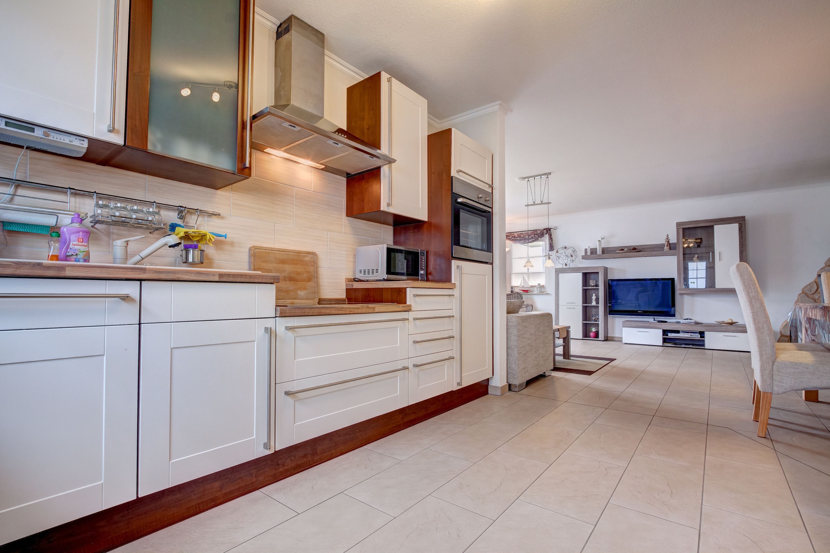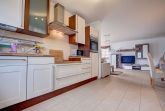 Voll ausgestattete Küche mit Herd, Backofen, Kühlschrank, Geschirrspüler, Mikrowelle, Kaffeemaschine etc.