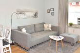 Im Schlafzimmer erwartet Sie ein schickes Doppelbett (1,80 x 2,00 m, mit zwei Einzelmatratzen) sowie ein zusätzlicher Flachbild-TV. Die offen gestaltete, moderne Küche lässt keine Wünsche offen: Cerankochfeld (4 Kochzonen), Geschirrspüler, Mikrowellen-Backofen-Kombigerät, Kühlschrank mit Gefrierfach, Milchaufschäumer, Kapselmaschine, Kaffeemaschine, Wasserkocher und Toaster gehören zur umfangreichen Ausstattung. Das hochwertig ausgestattete Bad verfügt über eine Dusche mit extraflachem Einstieg, Waschtisch, Handtuchtrockner, Fön und WC – durchdacht und stilvoll gestaltet.