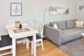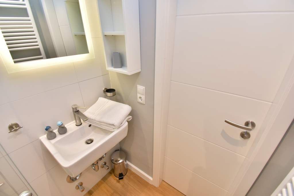 Im Schlafzimmer erwartet Sie ein schickes Doppelbett (1,80 x 2,00 m, mit zwei Einzelmatratzen) sowie ein zusätzlicher Flachbild-TV. Die offen gestaltete, moderne Küche lässt keine Wünsche offen: Cerankochfeld (4 Kochzonen), Geschirrspüler, Mikrowellen-Backofen-Kombigerät, Kühlschrank mit Gefrierfach, Milchaufschäumer, Kapselmaschine, Kaffeemaschine, Wasserkocher und Toaster gehören zur umfangreichen Ausstattung. Das hochwertig ausgestattete Bad verfügt über eine Dusche mit extraflachem Einstieg, Waschtisch, Handtuchtrockner, Fön und WC durchdacht und stilvoll gestaltet.