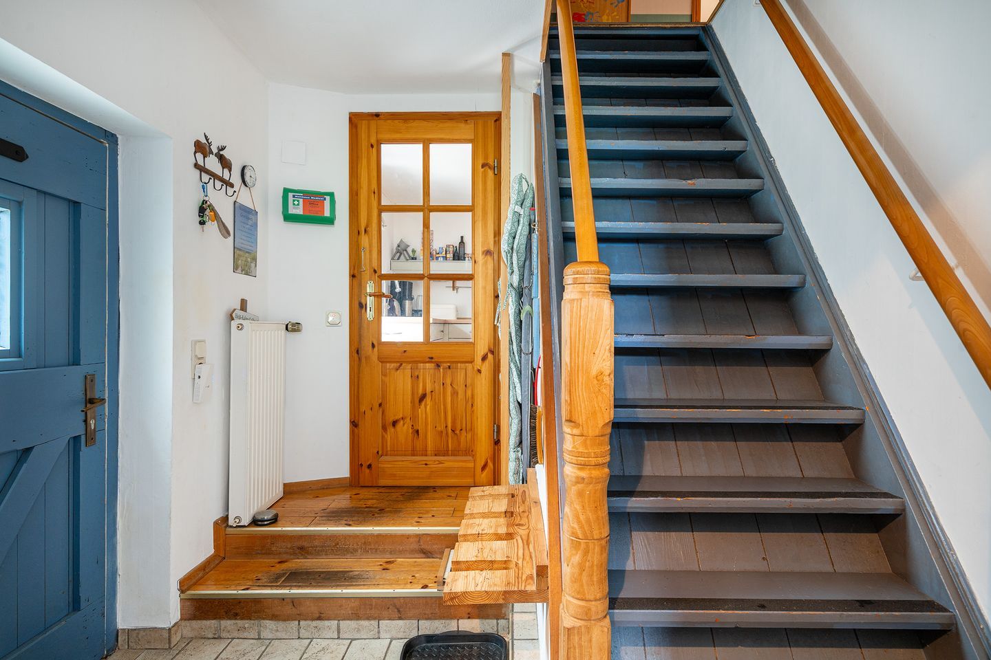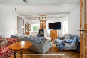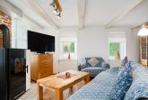 Mit Betreten des Hauses spüren Sie durch die Holzbalkendecke und die tollen Holzdielen sofort den historischen Charme dieses Hauses. Das Wohnzimmer verfügt über drei gemütliche Sofa mit Blick auf den großen Fernseher und den Pelletofen, der im Winter für angenehme Wärme sorgt. Im Esszimmer mit ausziehbarem Esstisch befindet sich ein zweiter Fernseher, sowie räumlich abgetrennt ein Schreibtisch und ein ausziehbares Schlafsofa für 1-2 Personen. Die Küche ist mit allen notwendigen Gerätschaften ausgestattet: Kühlschrank mit Gefrierschrank, Spülmaschine, Backofen, Ceran-Kochfeld, Mikrowelle, Kaffeemaschine, Toaster, Wasserkocher u.v.m..