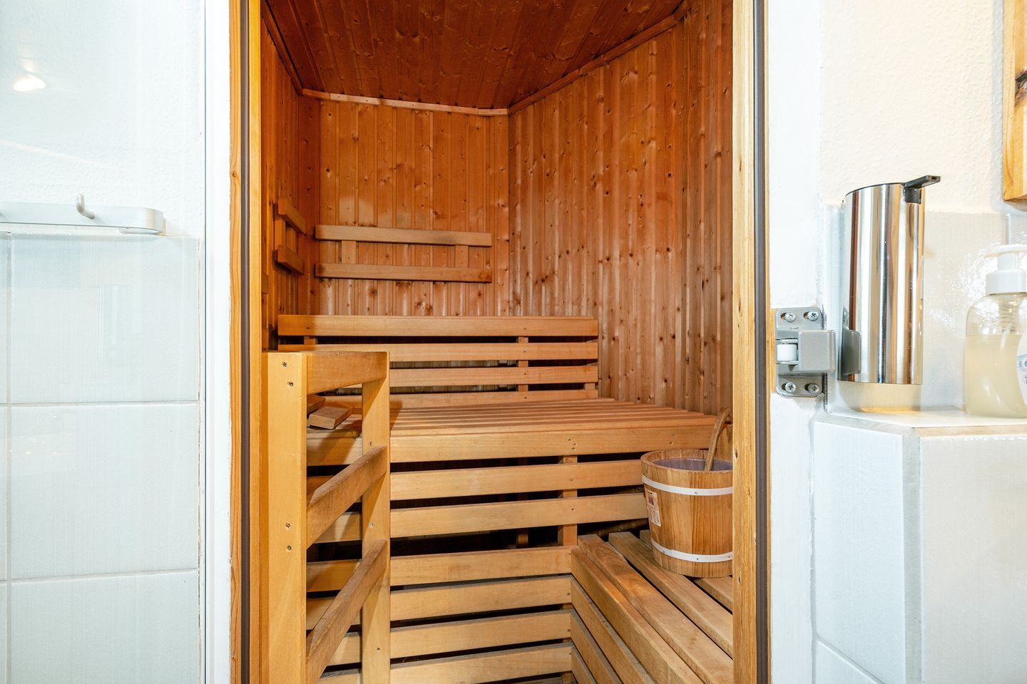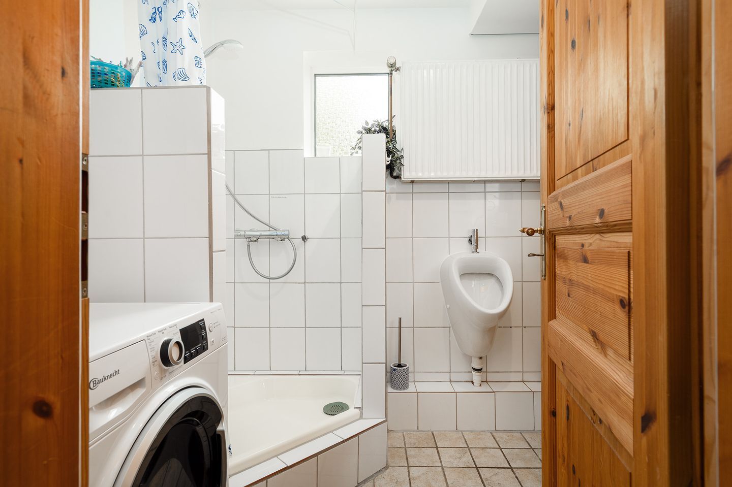 Im Erdgeschoss befinden sich ebenfalls beide Badezimmer: Ein Badezimmer verfügt über WC, Waschbecken, Fön, Dusche, Badewanne und Bio-Sauna, im zweiten Badezimmer finden Sie Waschbecken, Dusche, Pissoir und den Waschtrockner. Das Haus verfügt darüber hinaus über viele weitere praktische Dinge für den Urlaub, wie bspw. eine Schuhputzmaschine.