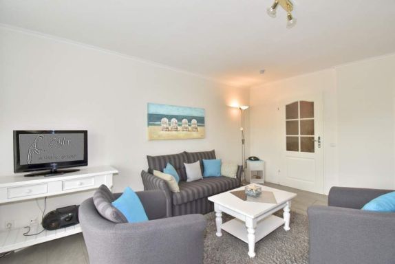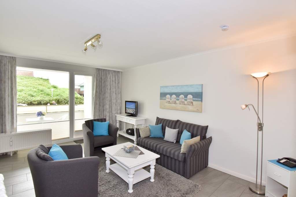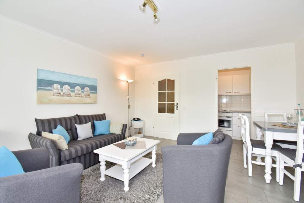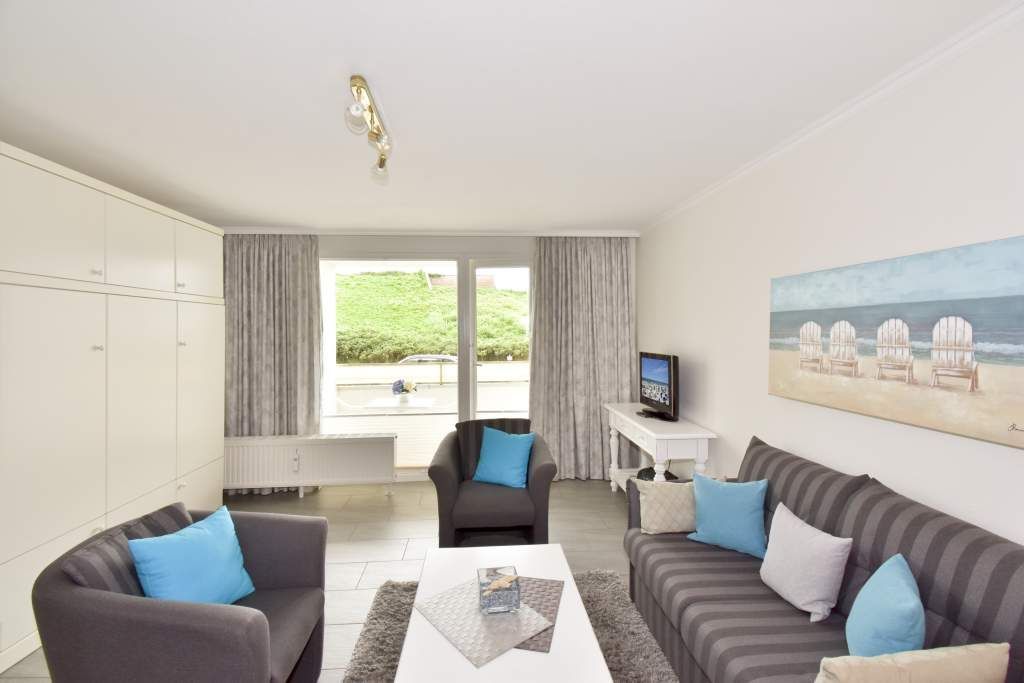 Der Wohn-/Schlafraum besteht aus einer gemütlichen Sitzgarnitur (2-Sitzer-Couch und zwei Sessel), einem Essplatz, gutem Doppel-Schrankbett, einem Sat-Flachbildfernseher, Radio/CD und Telefon.