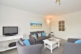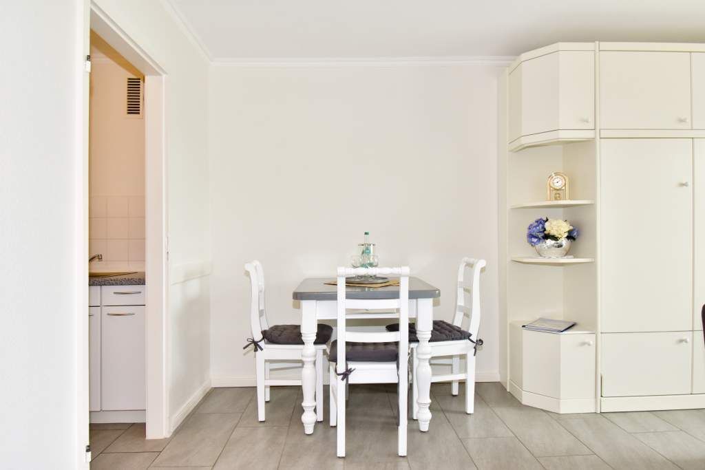 Hell und modern präsentiert sich die großzügige 1-Zimmer-Ferienwohnung mit ca. 43 m² im Hochparterre zur Seeseite mit Westloggia (Nachmittagssonne, mit Balkonmöbeln und Auflagen) für max. 2 Personen.