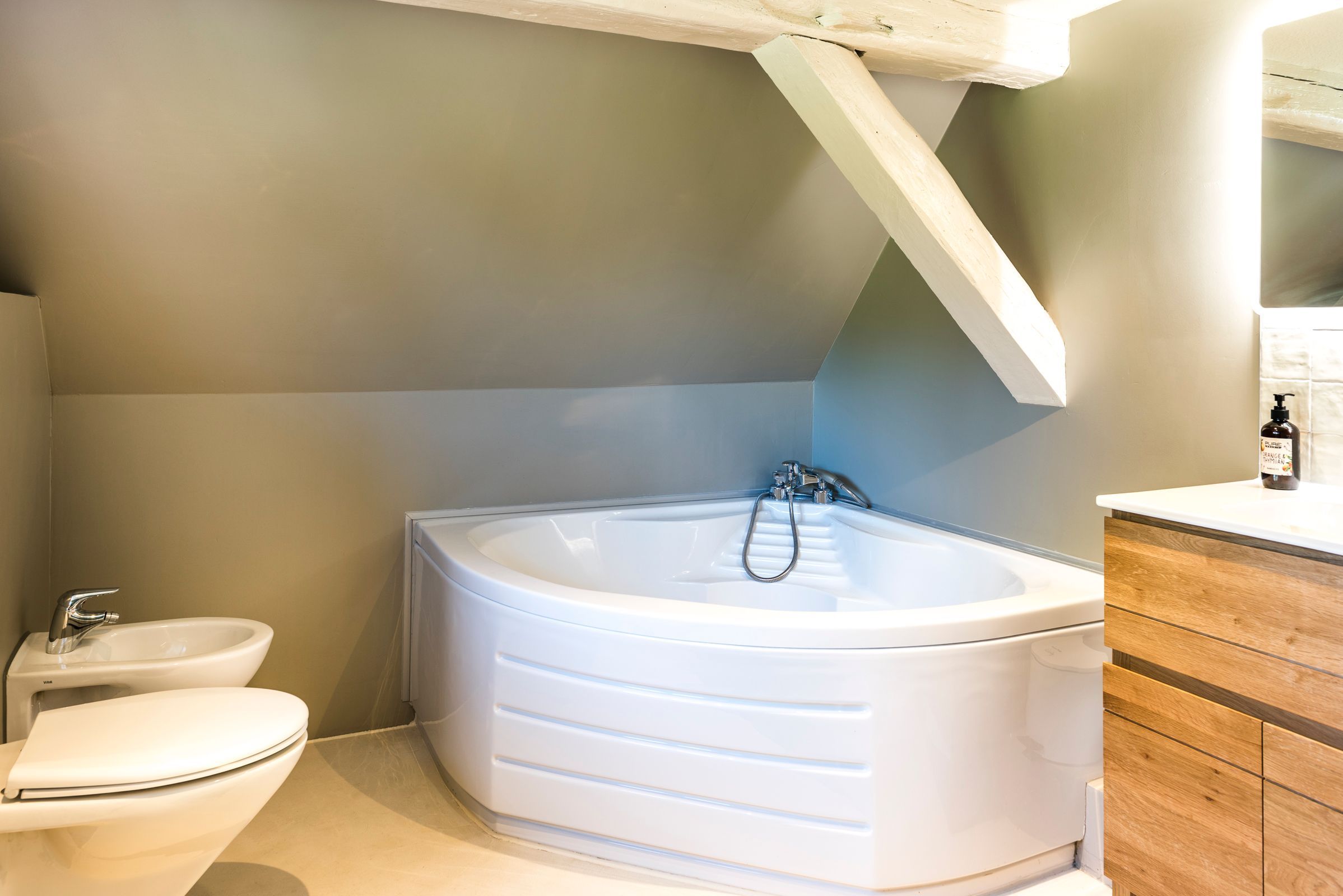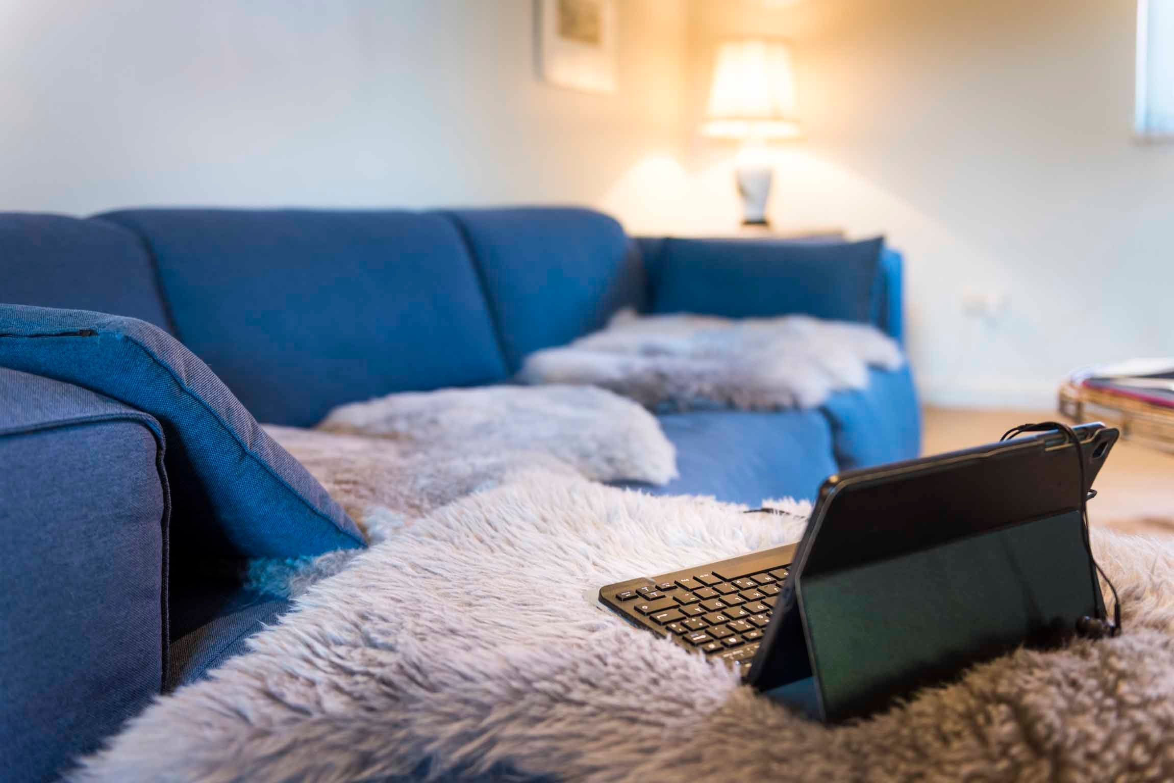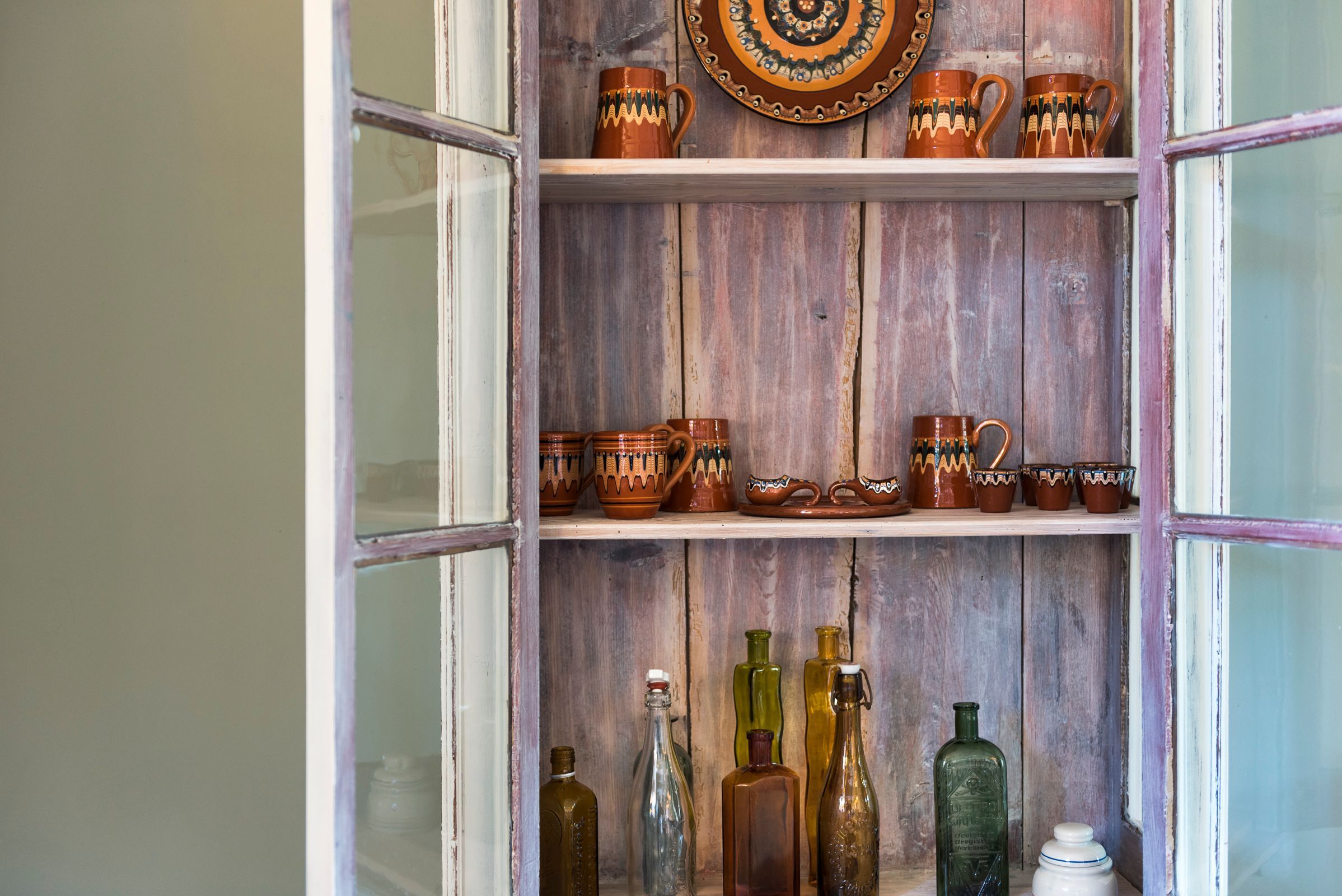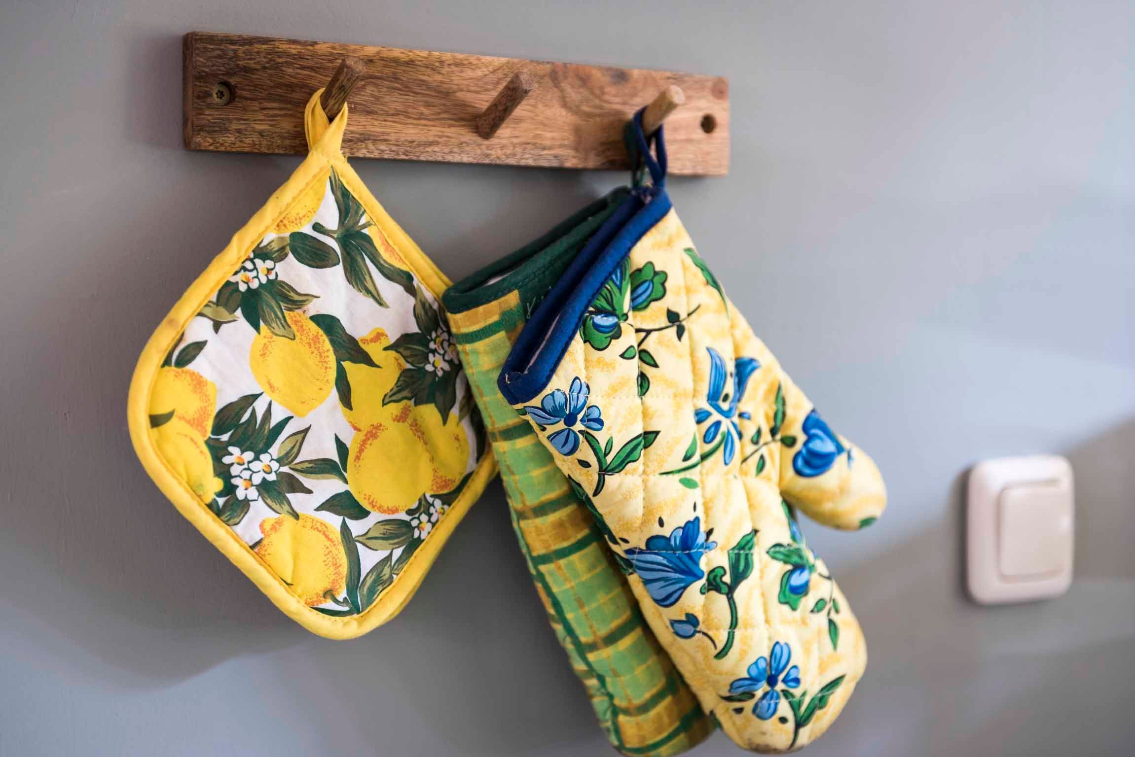 Das Haus empfängt seinen Gast mit einem großen, offenen Wohnraum, auf der einen Seite liegt der gemütliche Wohnbereich mit breitem Loungesofa und Sixties-Designersesseln aus Wildleder, auf der anderen Seite befindet sich der Essplatz mit Kaminofen, vollausgestatteter Küche und Doppelflügeltür zur überdachten Terrasse mit Outdoor-Essplatz. Zwischen den beiden Wohnbereichen liegen das Erdgeschossbad und die galerieartige Treppe ins Obergeschoss. Die beiden Doppelschlafzimmer liegen im Obergeschoss, das zum Wasser hin ausgerichtete blaue Seezimmer und das zum Hof bzw. Garten hingewandte grüne Gartenzimmer, letzteres mit einem Bad ensuite.