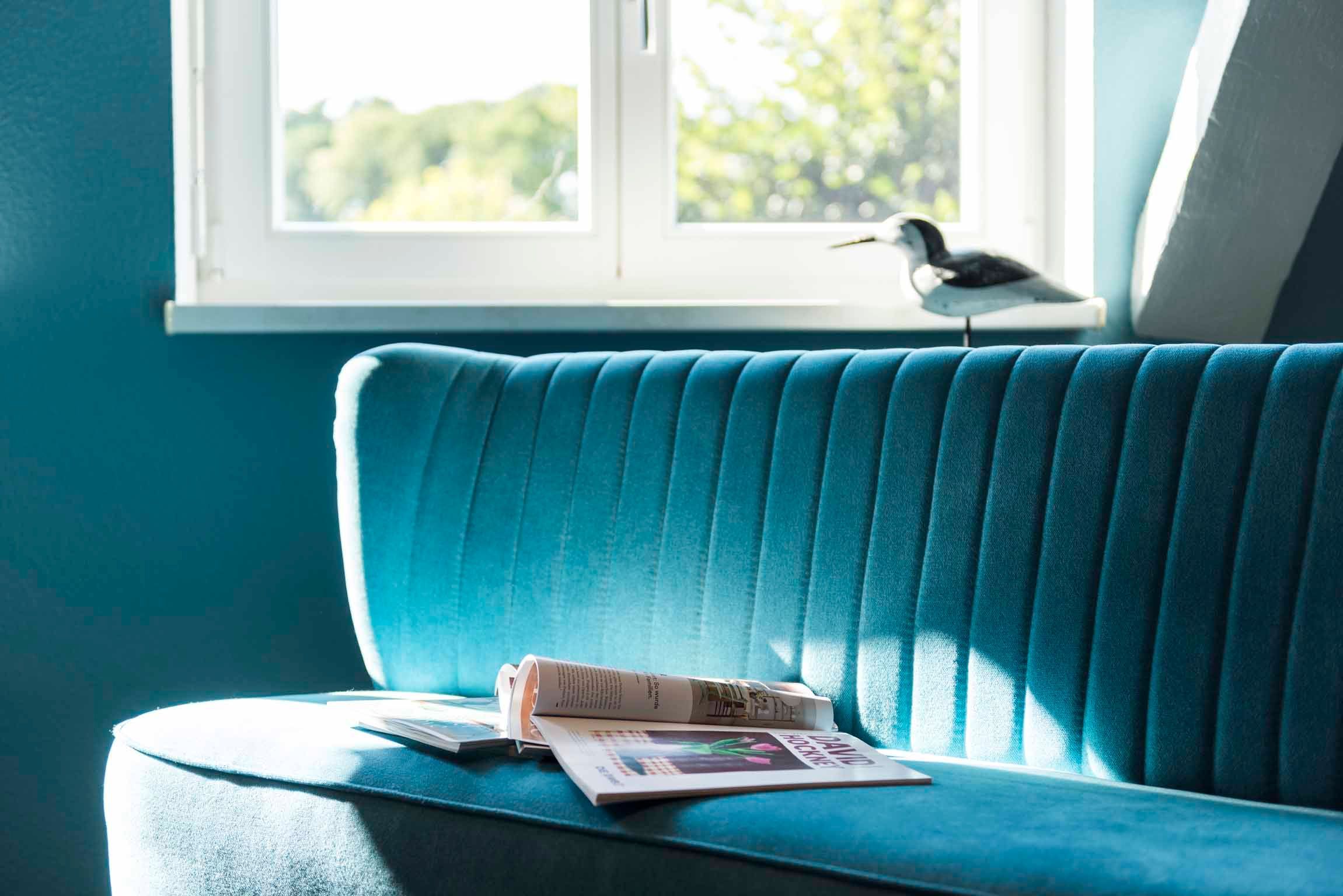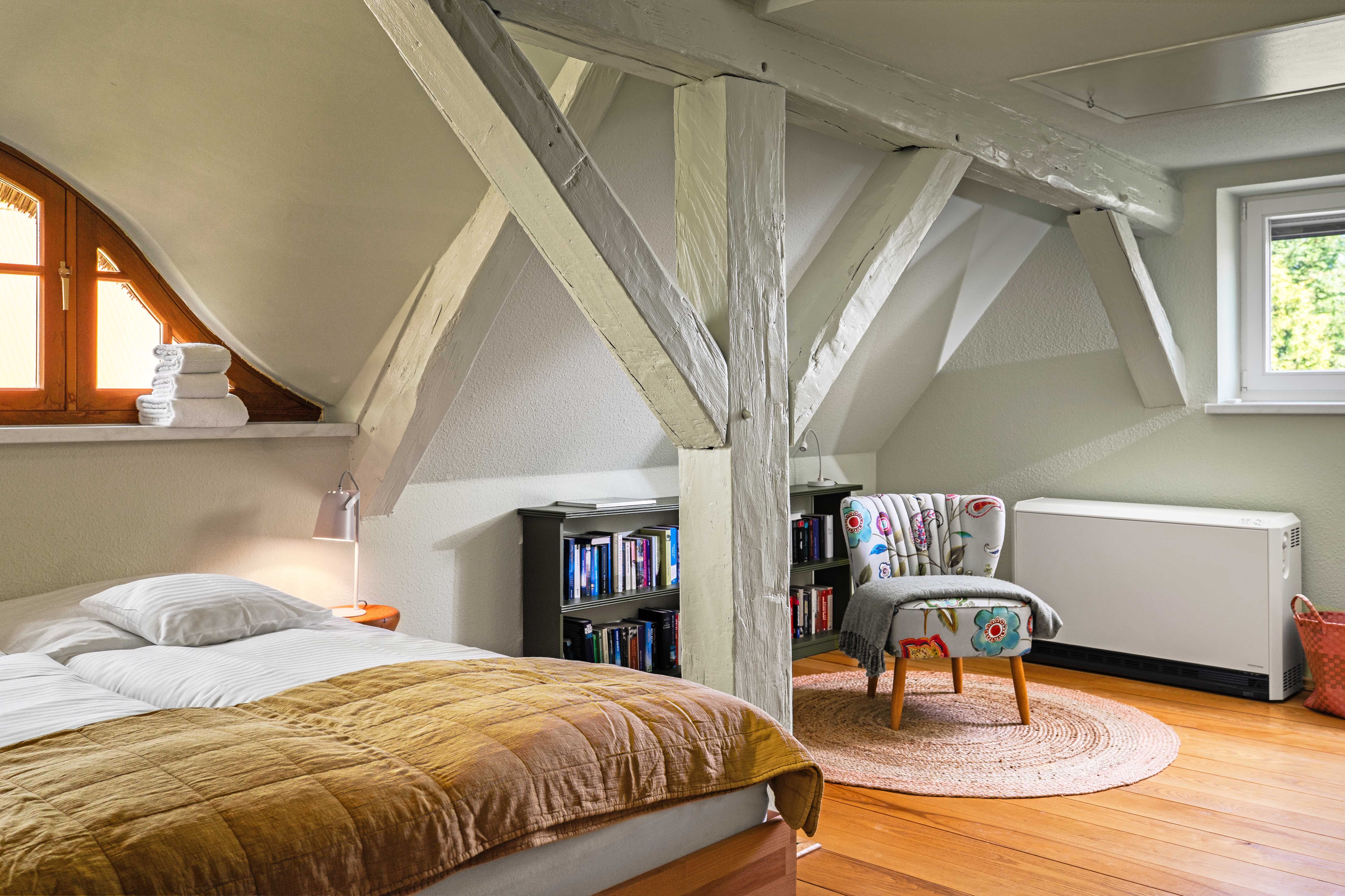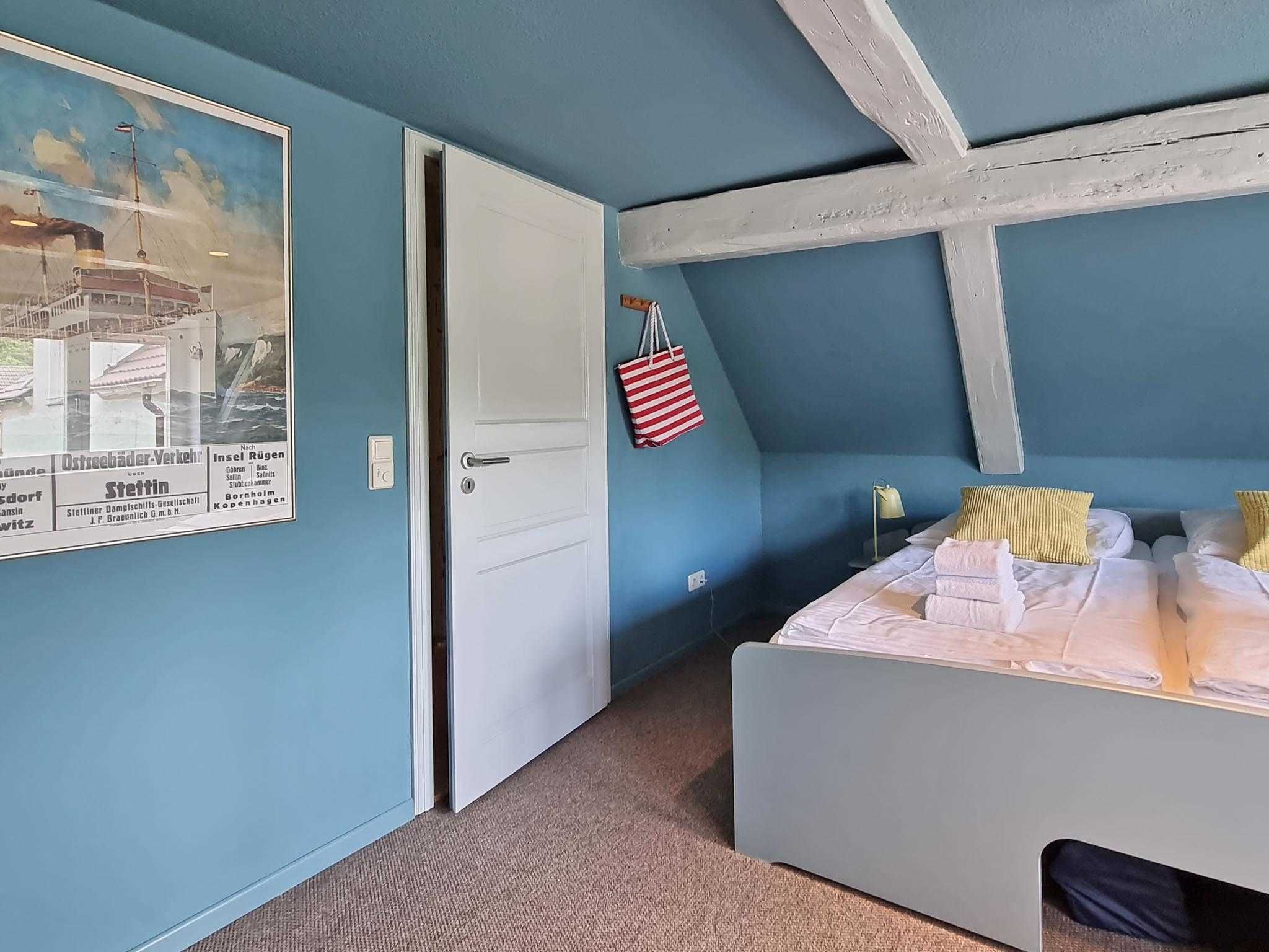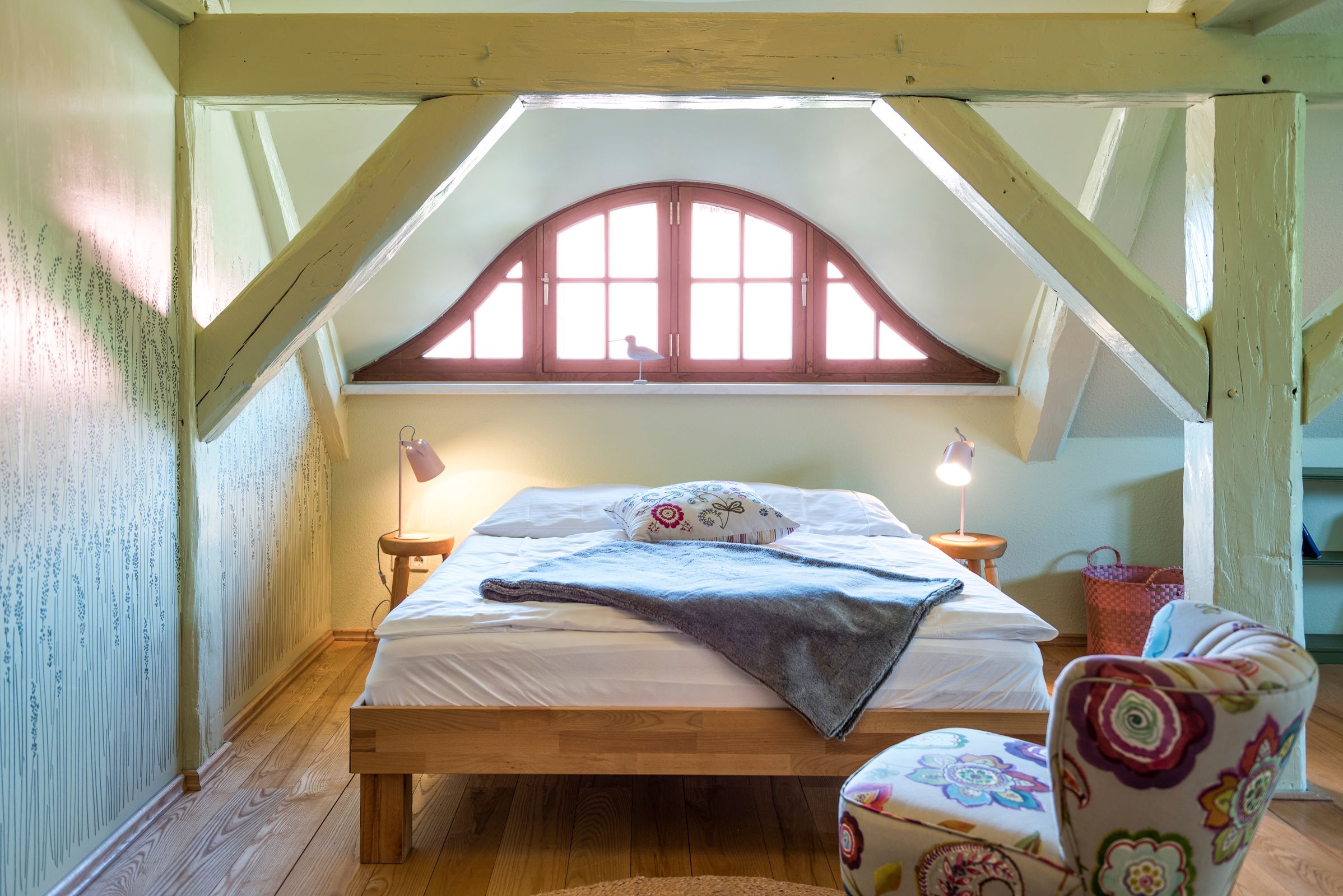 Die beiden Doppelschlafzimmer befinden sich im Obergeschoss. Das zum Wasser hin ausgerichtete blaue Seezimmer bietet einen malerischen Ausblick auf das Haff. Das grüne Gartenzimmer hingegen öffnet sich zum Hof und Garten und verfügt über ein eigenes Badezimmer. Hier können Sie sich wunderbar entspannen und zur Ruhe kommen.