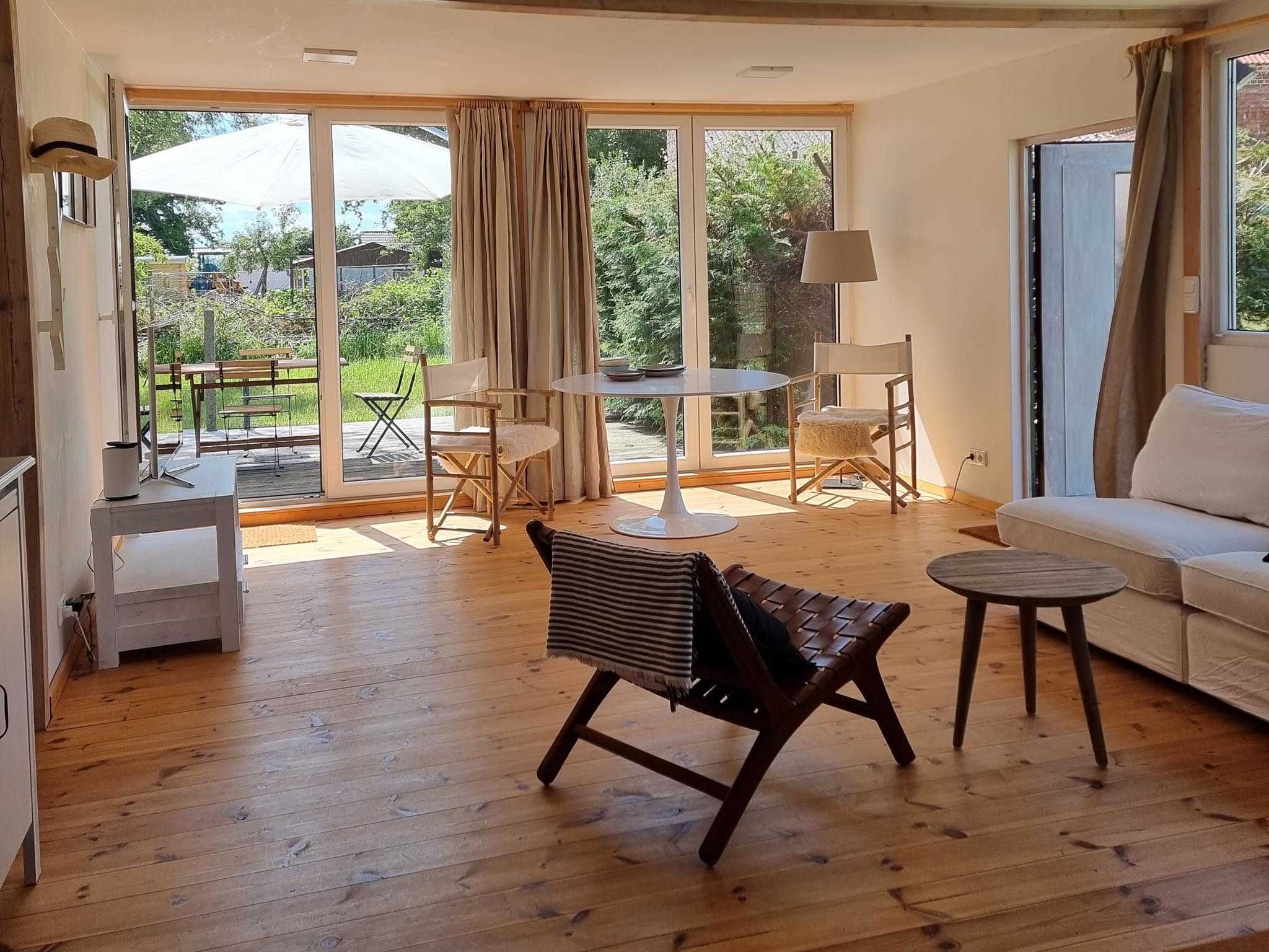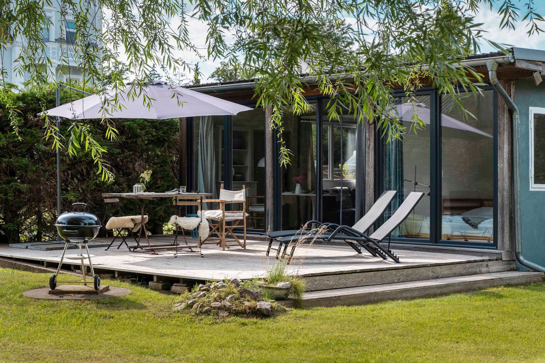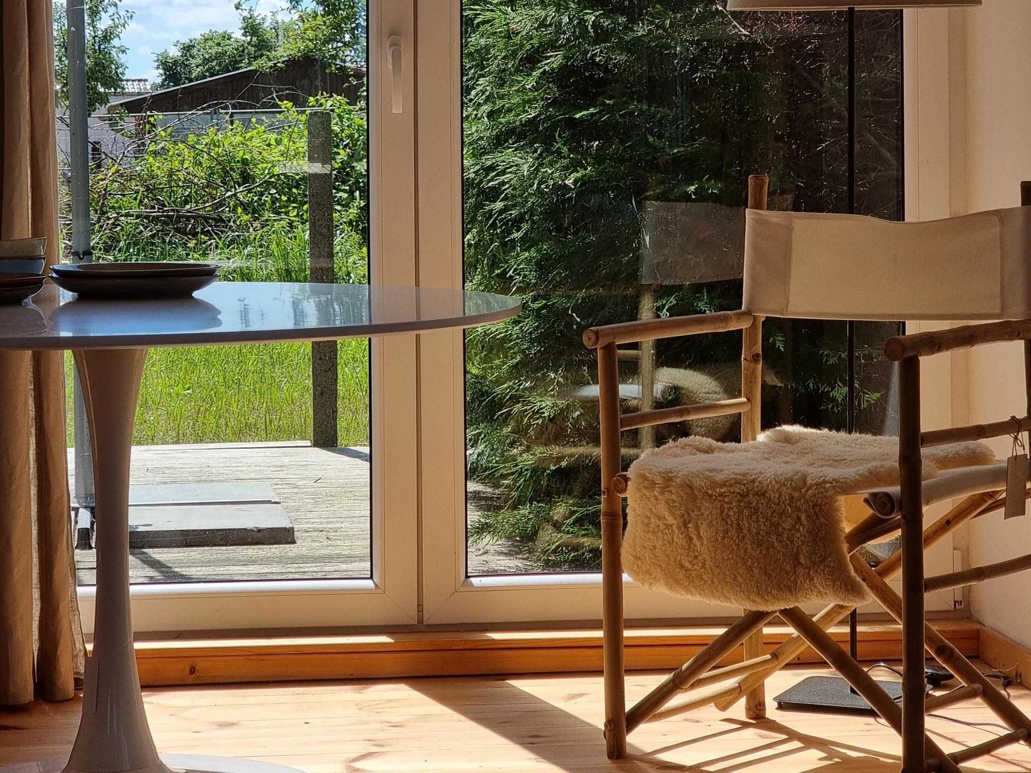 Die Bay Cabin liegt in Altwarp, nur ein paar Schritte vom Badestrand entfernt. Ein Haus mitten im Dorf, in dem man sich doch fühlt, als wäre man inmitten der Natur. Dank der dem Garten zugewandten, komplett verglasten Südseite bieten sich zahlreiche Blickachsen ins Grüne und auf die dem Haus vorgelagerte Terrasse und die alte Gartenweide. Der Wohnraum mit seinem gemütlichen Sofa am gusseisernen Kaminofen, dem Essplatz und der vollausgestatteten Küchenzeile ist hell und lichtdurchflutet. In den beiden Nebenräumen liegen das Schlafzimmer und das Duschbad mit WC. Bei schönem Wetter erweitert sich das Raumangebot um die Terrasse mit Terrassenmöbeln und Liegen und den großen, umzäunten Garten ein Logenplatz im Freien und im Grünen. Wir finden, das Haus ist für Einzelreisende und Paare, Strandliebhaber und Naturfreunde ideal.