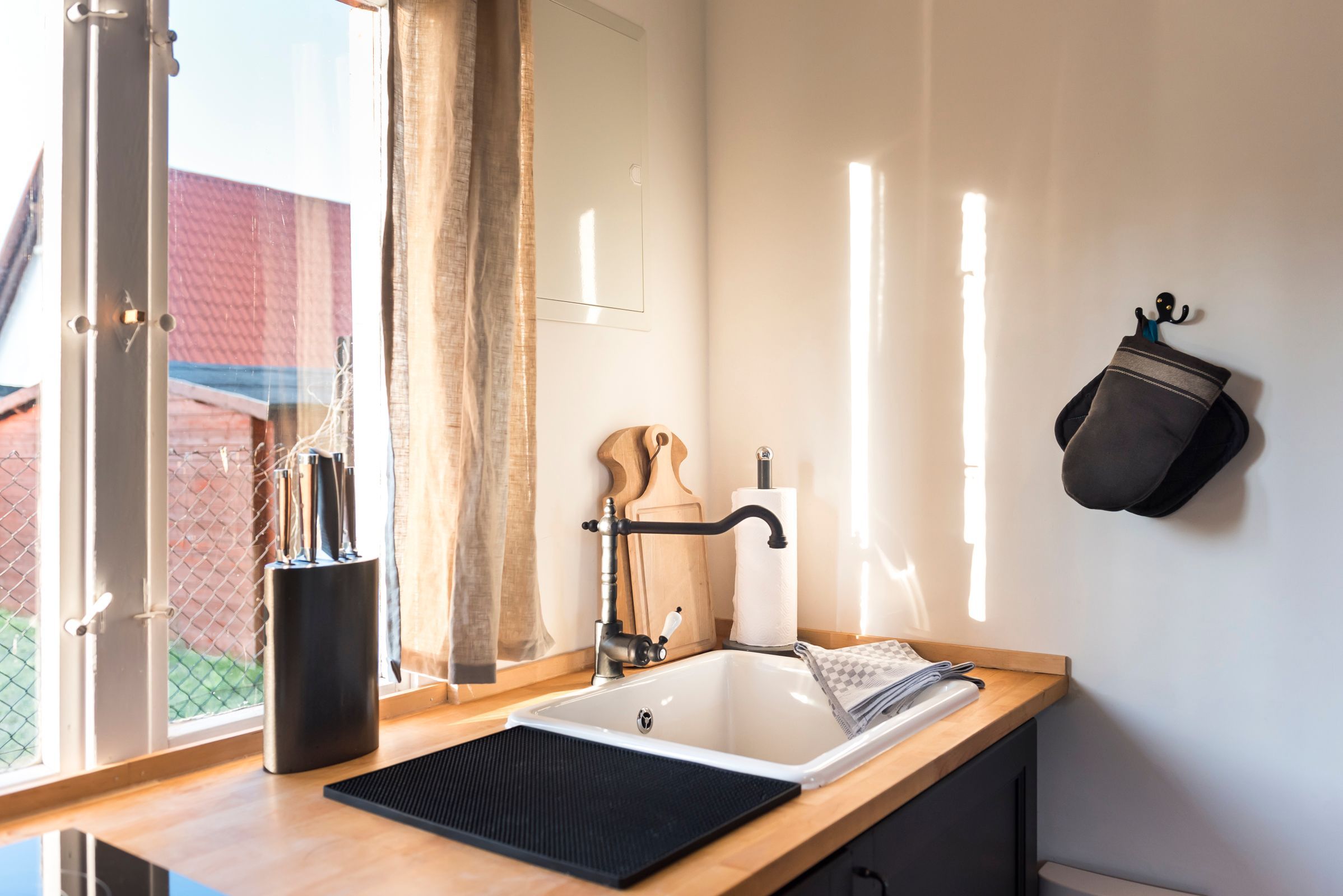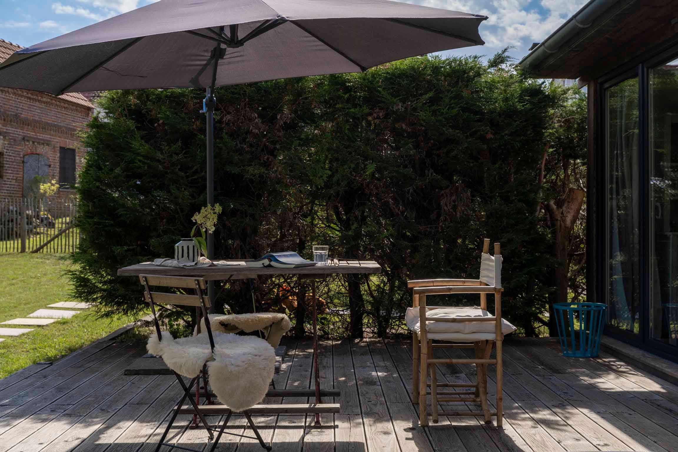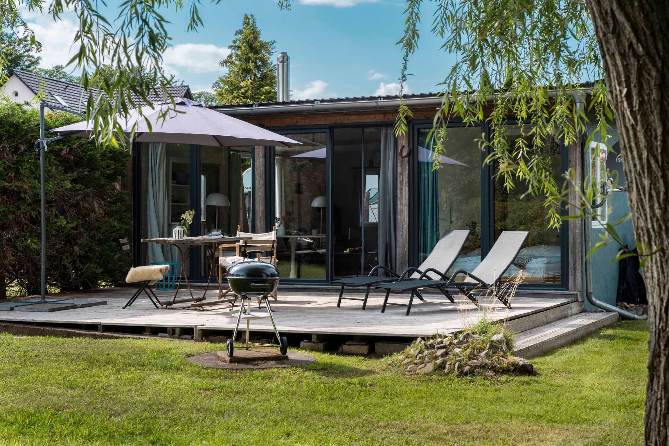 Die Bay Cabin liegt in Altwarp, nur ein paar Schritte vom Badestrand entfernt. Ein Haus mitten im Dorf, in dem man sich doch fühlt, als wäre man inmitten der Natur. Dank der dem Garten zugewandten, komplett verglasten Südseite bieten sich zahlreiche Blickachsen ins Grüne und auf die dem Haus vorgelagerte Terrasse und die alte Gartenweide. Der Wohnraum mit seinem gemütlichen Sofa am gusseisernen Kaminofen, dem Essplatz und der vollausgestatteten Küchenzeile ist hell und lichtdurchflutet. In den beiden Nebenräumen liegen das Schlafzimmer und das Duschbad mit WC. Bei schönem Wetter erweitert sich das Raumangebot um die Terrasse mit Terrassenmöbeln und Liegen und den großen, umzäunten Garten ein Logenplatz im Freien und im Grünen. Wir finden, das Haus ist für Einzelreisende und Paare, Strandliebhaber und Naturfreunde ideal.