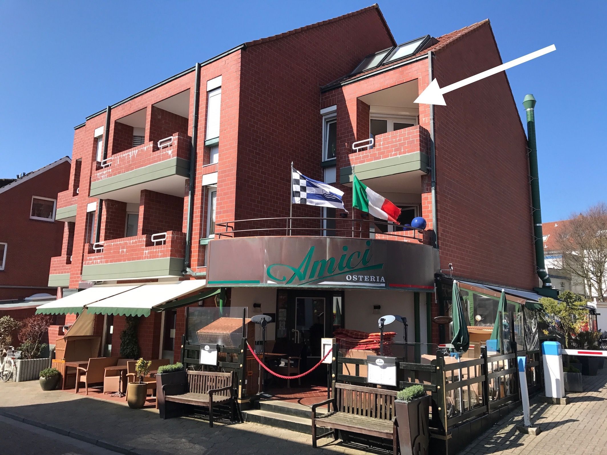 Der kleine, windgeschützte Balkon bietet einen schönen Ausblick auf die Dächer Norderneys und die Inselkirche.