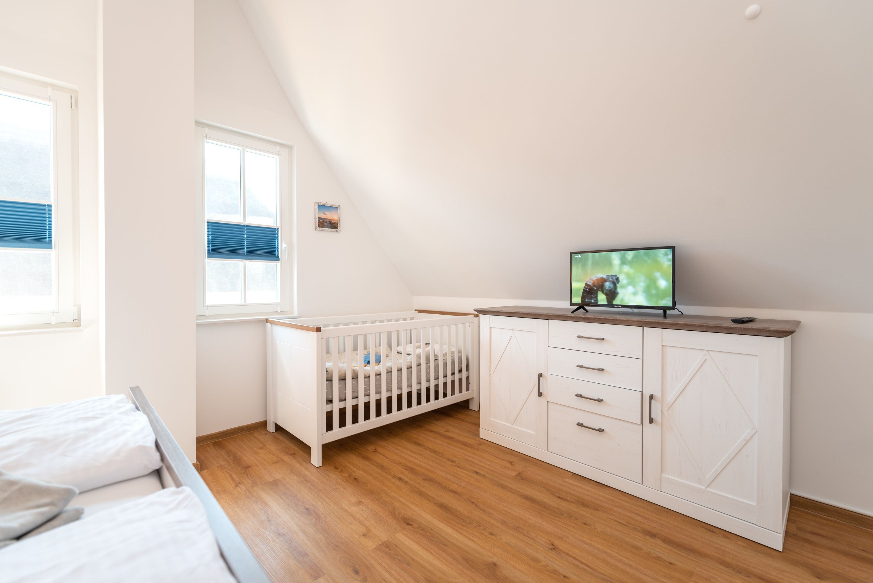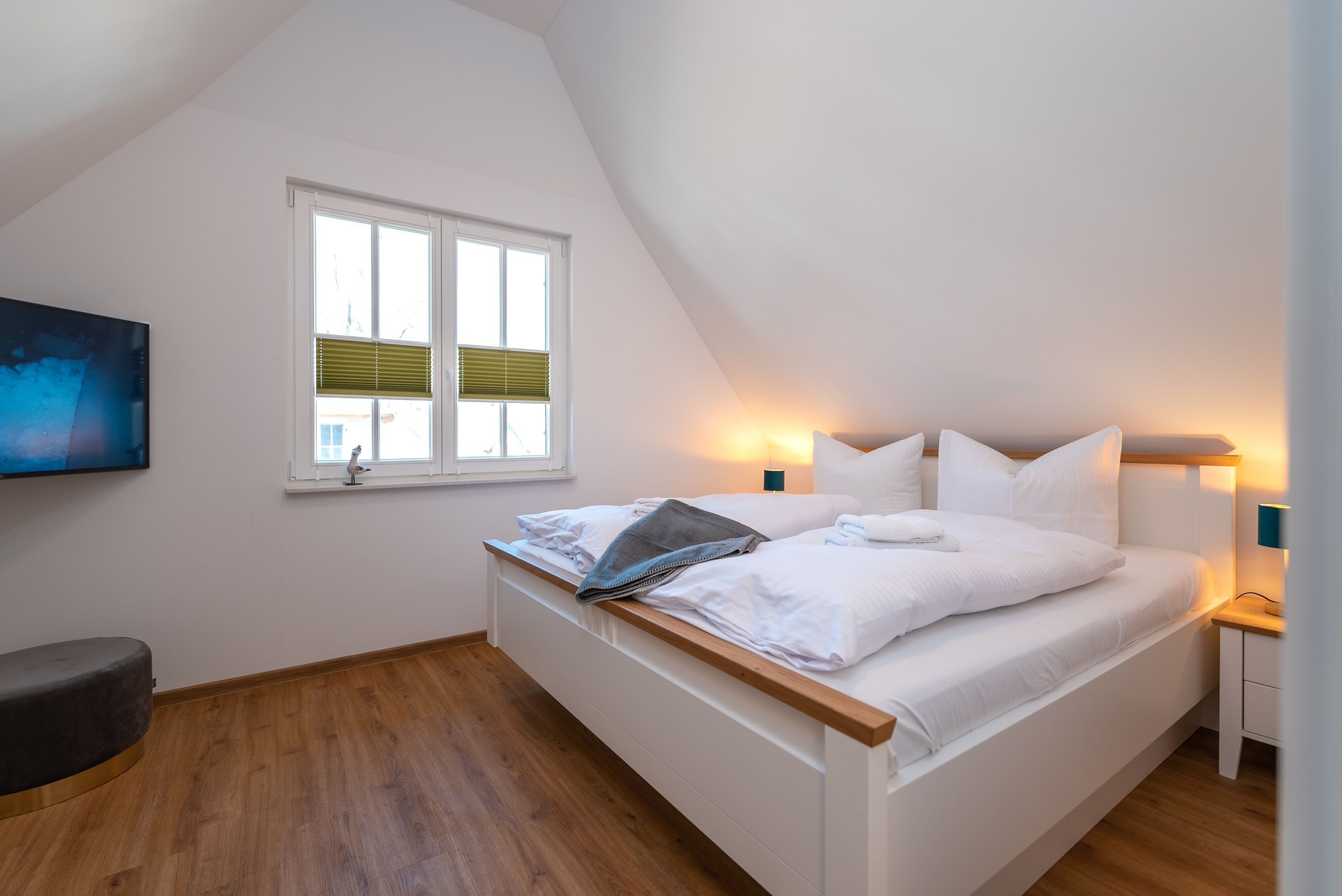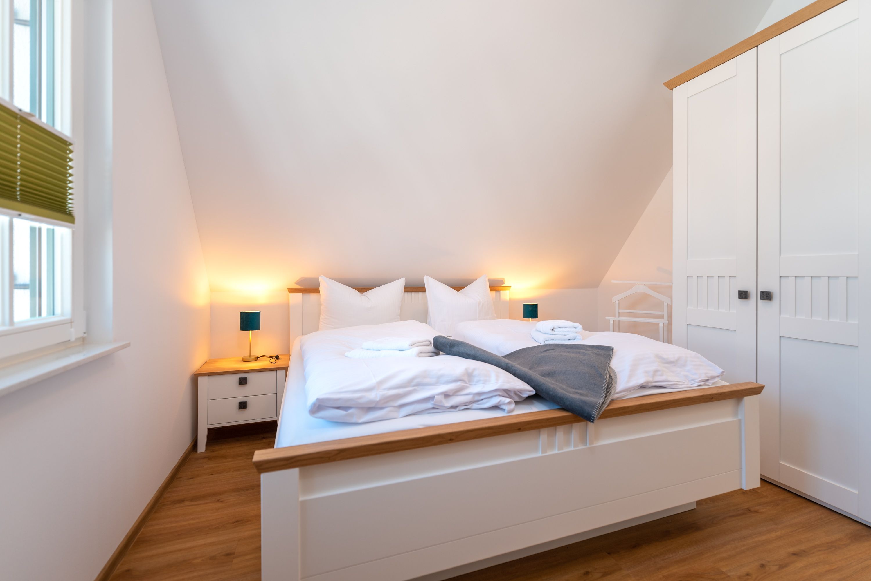 Das charmante, reetgedeckte Ferienhaus Schmusedom versprüht den beliebten Usedomer Inselflair. Auf ca. 97 liebevoll eingerichteten Quadratmetern finden 6 Personen bequem Platz. In der oberen Etage bietet ein Schlafzimmer mit Doppelbett und geräumigem Kleiderschrank Platz zum Träumen und genug Stauraum für die Urlaubsgarderobe. Das zweite Schlafzimmer verfügt zusätzlich zum Doppelbett noch über ein Babybett. Beide Schlafzimmer haben einen Smart-TV.