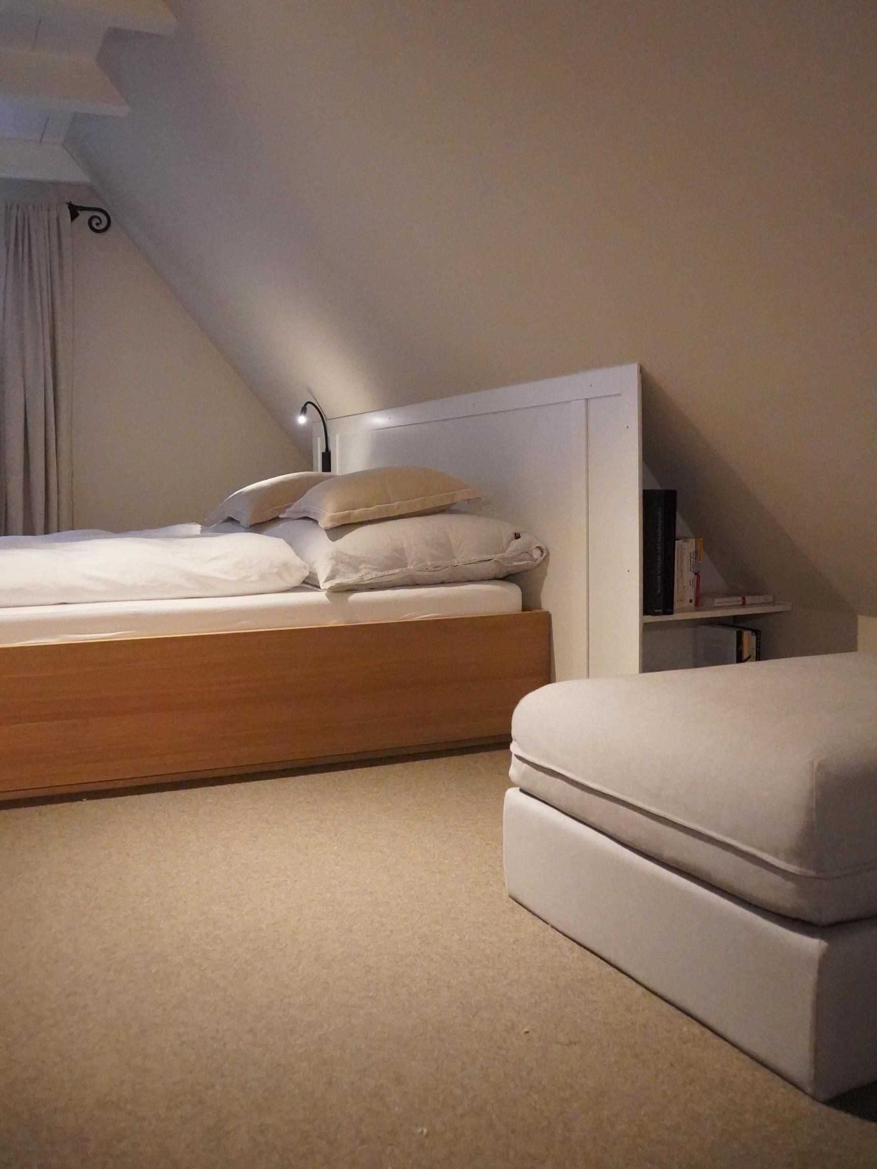 Die Wohnung ist modern gehalten, während Holzsprossenfenster und einzelne Elemente dir dennoch das Gefühl geben, dass du dich in einem über 200 Jahre alten Reetdachhaus aufhältst. Diese Verbindung vom traditionellen Friesenhaus und moderner Ausstattung verleiht der Wohnung eine besondere Persönlichkeit und macht sie zu einem Ort, der Komfort und Gemütlichkeit vereint.Über den Flur, der durch eine große Glastür vom Wohnraum abgetrennt ist, gelangst du zu den beiden Schlafzimmern. Das erste Schlafzimmer verfügt über ein 1,60 Meter breites Bett, während das zweite Zimmer mit zwei Einzelbetten ausgestattet ist. Beide Zimmer sind mit praktischen Einbauschränken versehen. Ein gemeinsames Badezimmer mit Dusche und Badewanne ist ebenso vom Flur aus erreichbar.Der große Ess- und Wohnraum mit einer voll ausgestatteten Küche bietet viel Platz und Komfort zum gemeinsamn Kochen und Essen.