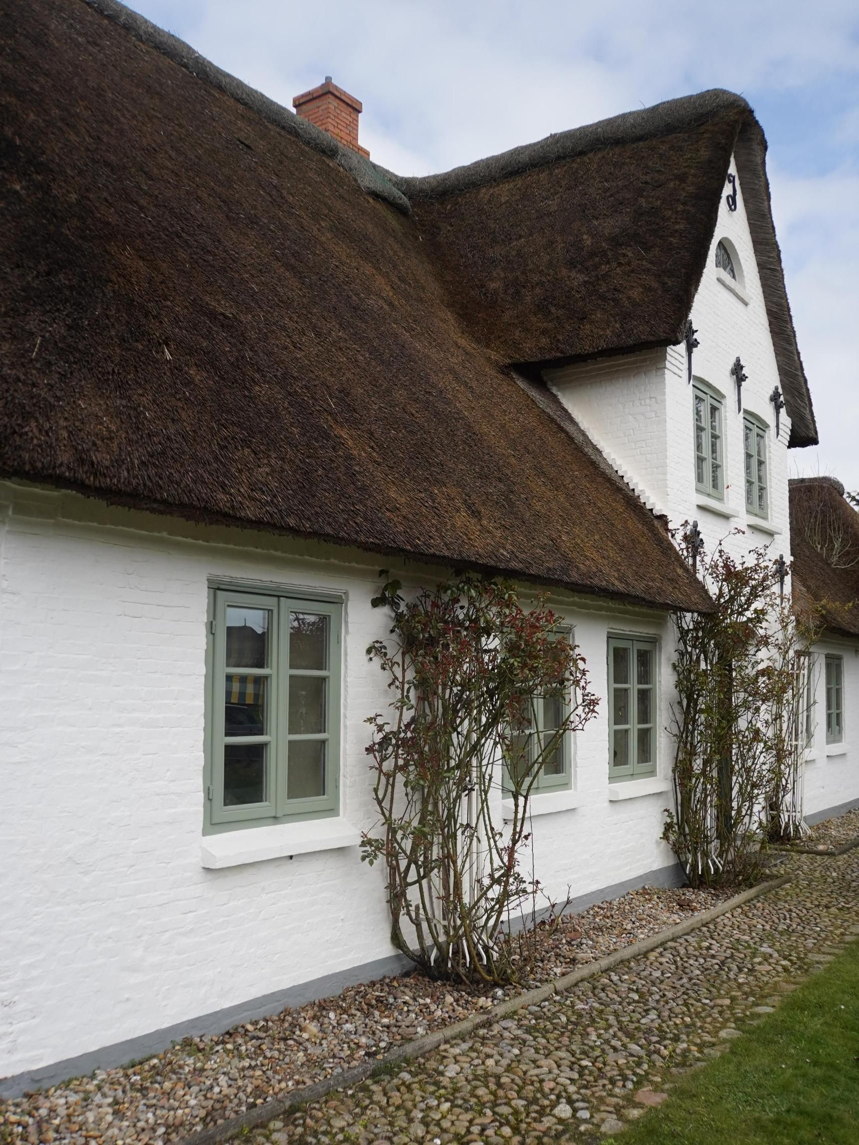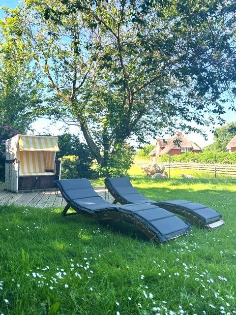 Die nordfriesische Insel Föhr ist bekannt für ihre idyllischen Friesendörfer und ihre malerische Marschlandschaft. Eines dieser charmanten Dörfer ist Midlum, wo sich unser Ferienhaus aus dem Jahr 1807 befindet. Das Haus grenzt direkt an Wiesen und Felder und besticht mit seinem typischen Reetdach und dem authentischen friesischen Charme. Von hier aus genießt du einen atemberaubenden Blick bis hin zum Deich, der kilometerweit entfernt liegt. Ein Aufenthalt in diesem Ferienhaus bietet somit nicht nur Erholung und Entspannung, sondern auch die Möglichkeit, die Schönheit der Föhrer Landschaft hautnah zu erleben.Das gesamte Haus bietet ausreichend Raum und Privatsphäre für zwei Familien, Freunde oder mehrere Generationen. Es gibt zwei Ferienwohnungen, die sich auf Erd- und Obergeschoss verteilen. Die Wohnungen sind komplett autark voneinander nutz- und buchbar. Gleichzeitig lassen sich die Wohnungen und Gärten wunderbar miteinander kombinieren.Das über 1000 m² große Grundstück ist dank seiner Gartenlandschaft mit Hecken und Zäunen zur Nachbarschaft gut abgegrenzt. Der Garten teilt sich jeweils für die Wohnungen auf. Sitzecken und Strandkörbe laden zu Ruhe und Entspannung an sonnigen Nachmittagen ein.