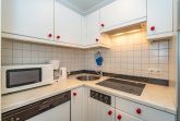 Die kleine separate Küche hat einen Geschirrspüler, ein Ceranfeld mit 4-Kochfeldern und ein Kühlschrank mit 3*-Gefrierfach. Kaffeemaschine, Wasserkocher und Toaster gehören zur Grundausstattung.