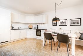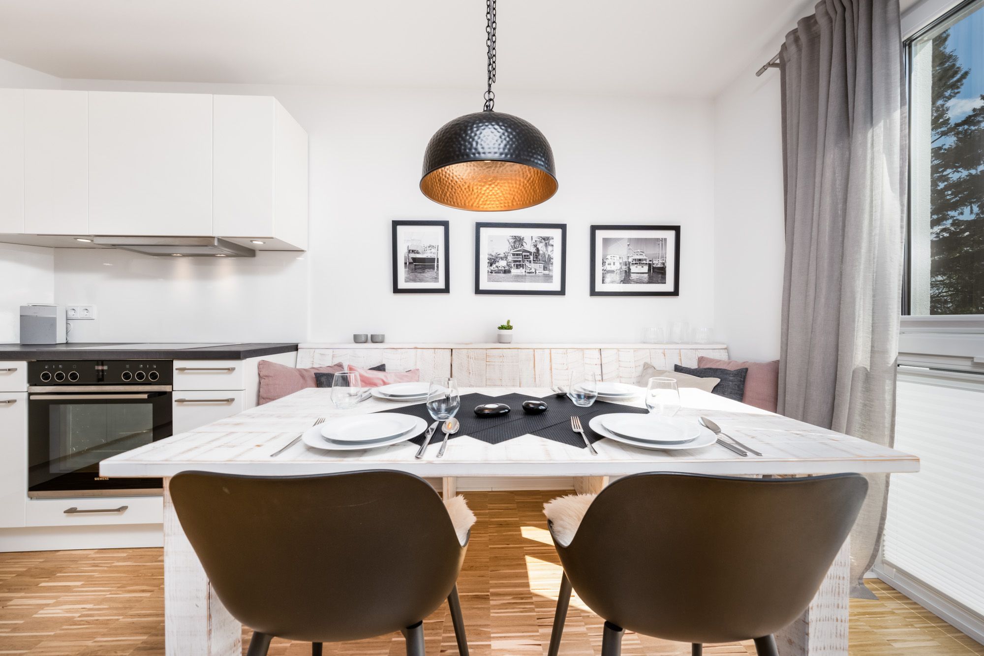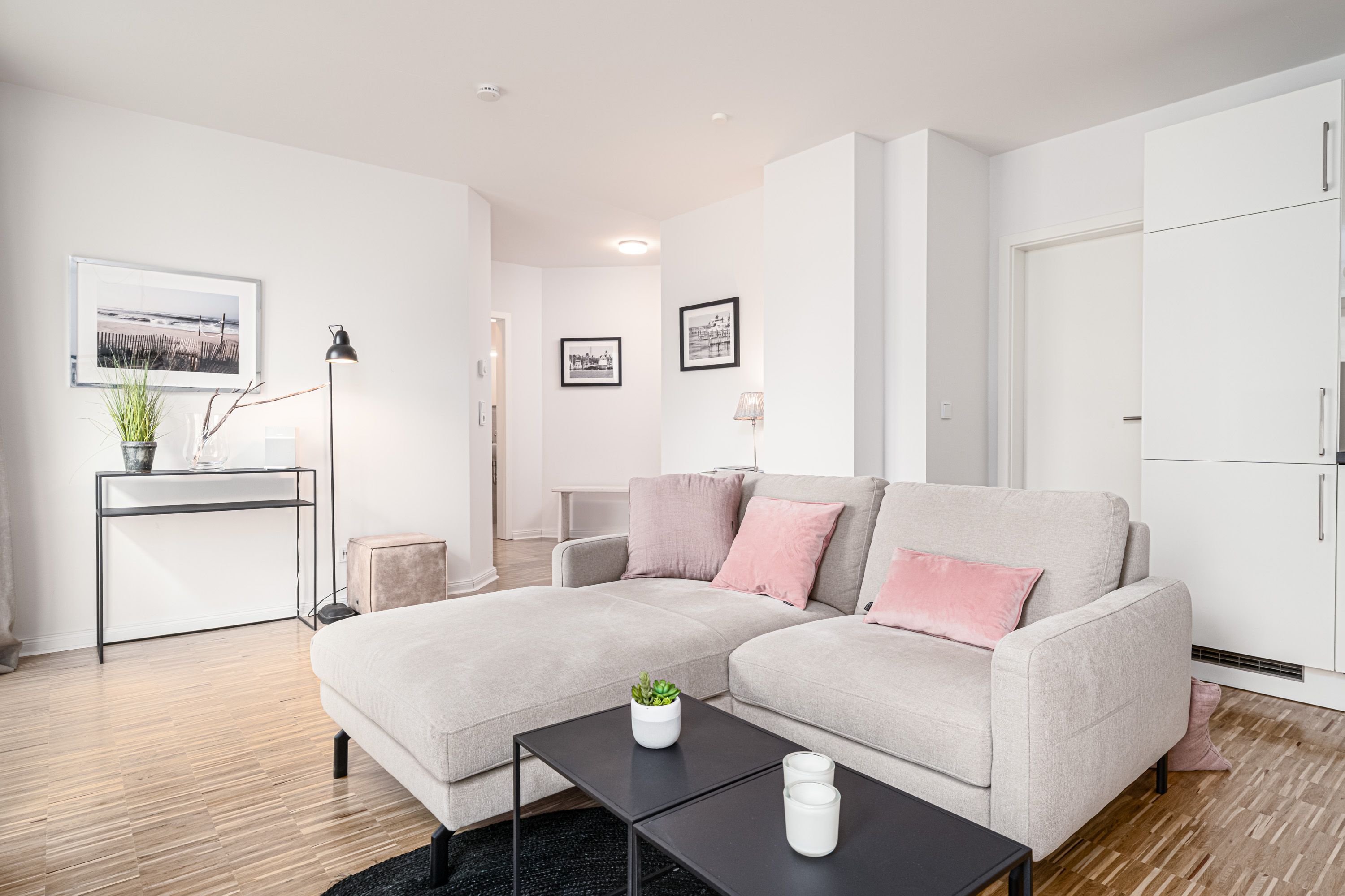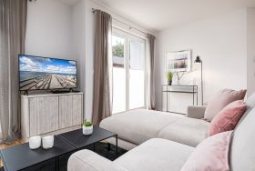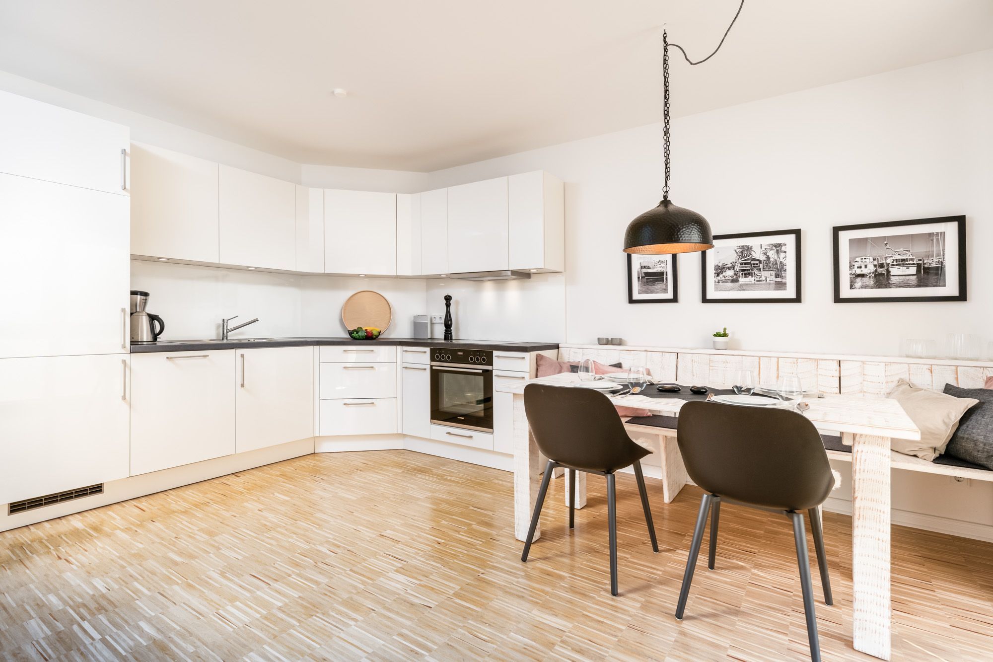 Der wunderschöne, helle Wohnraum ist mit Kabel-TV, Blu-ray Disk/DVD-Player und integrierter Einbauküche eingerichtet. In der Einbauküche finden Sie einen Geschirrspüler und Backofen vor.