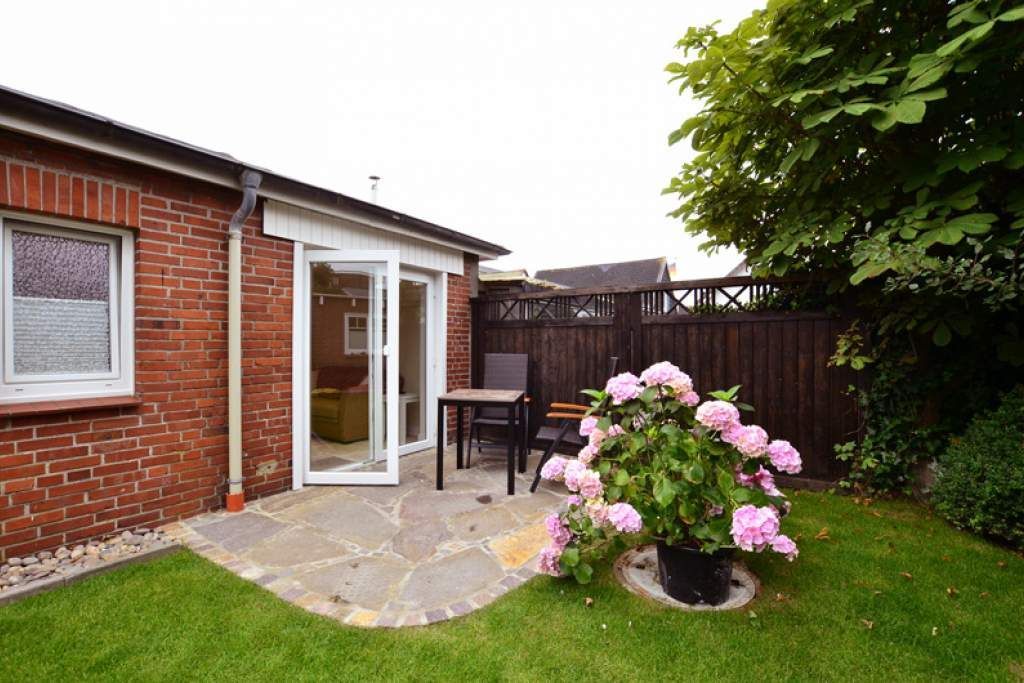 Exklusiv und hochwertig ausgestattete 1-Zimmer-Nichtraucher-Ferienwohnung im Bungalow-Stil, ca. 27 qm, mit möblierter windgeschützter Westterrasse für maximal 2 Personen auf einer Ebene.