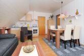 Wohnraum mit integrierter Küche und Essgruppe