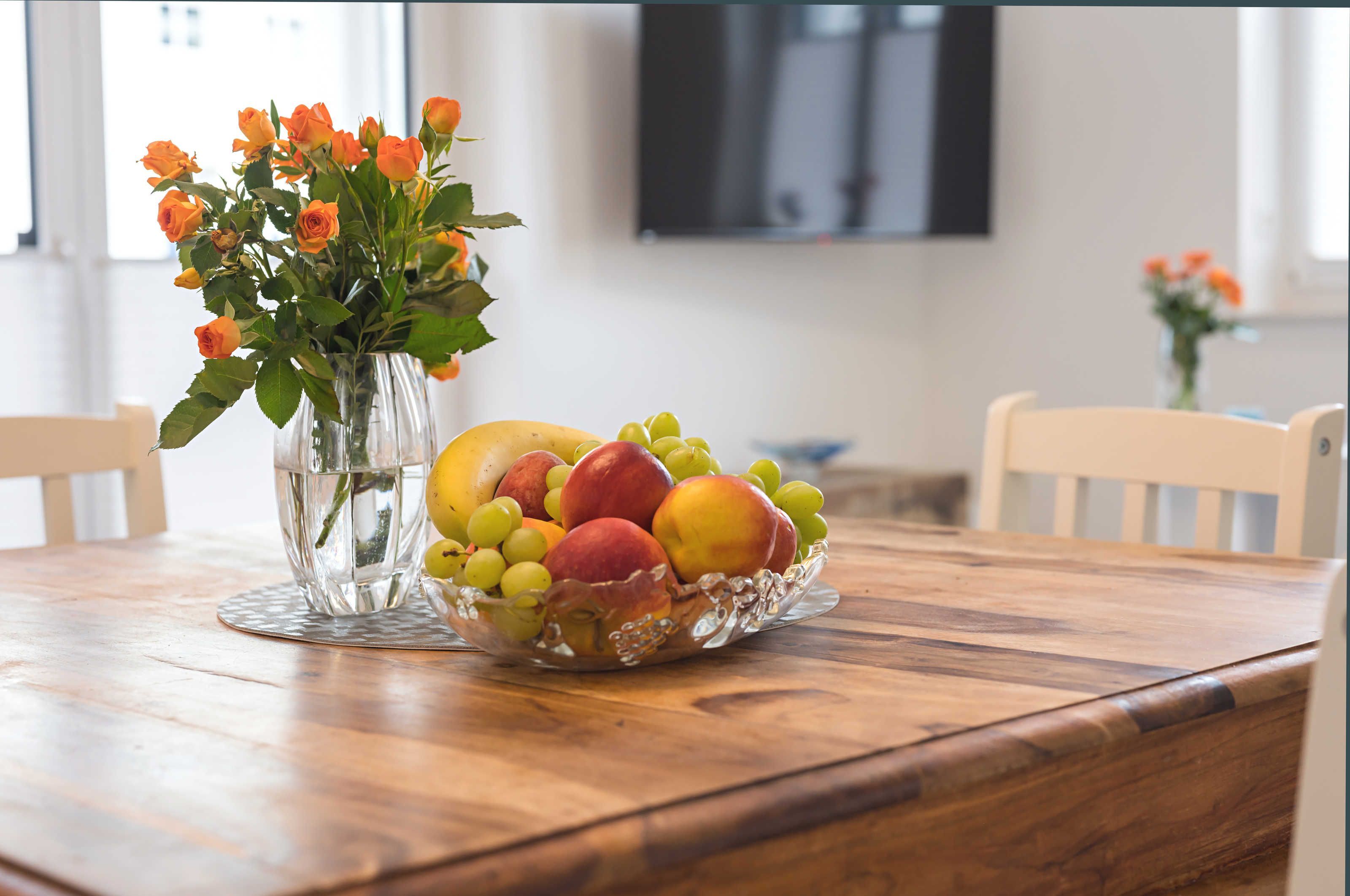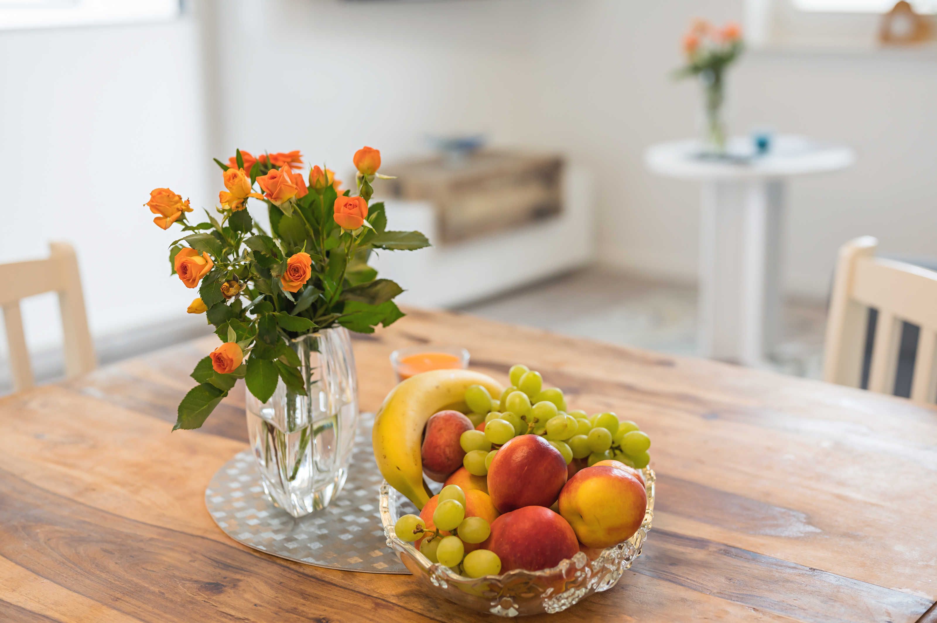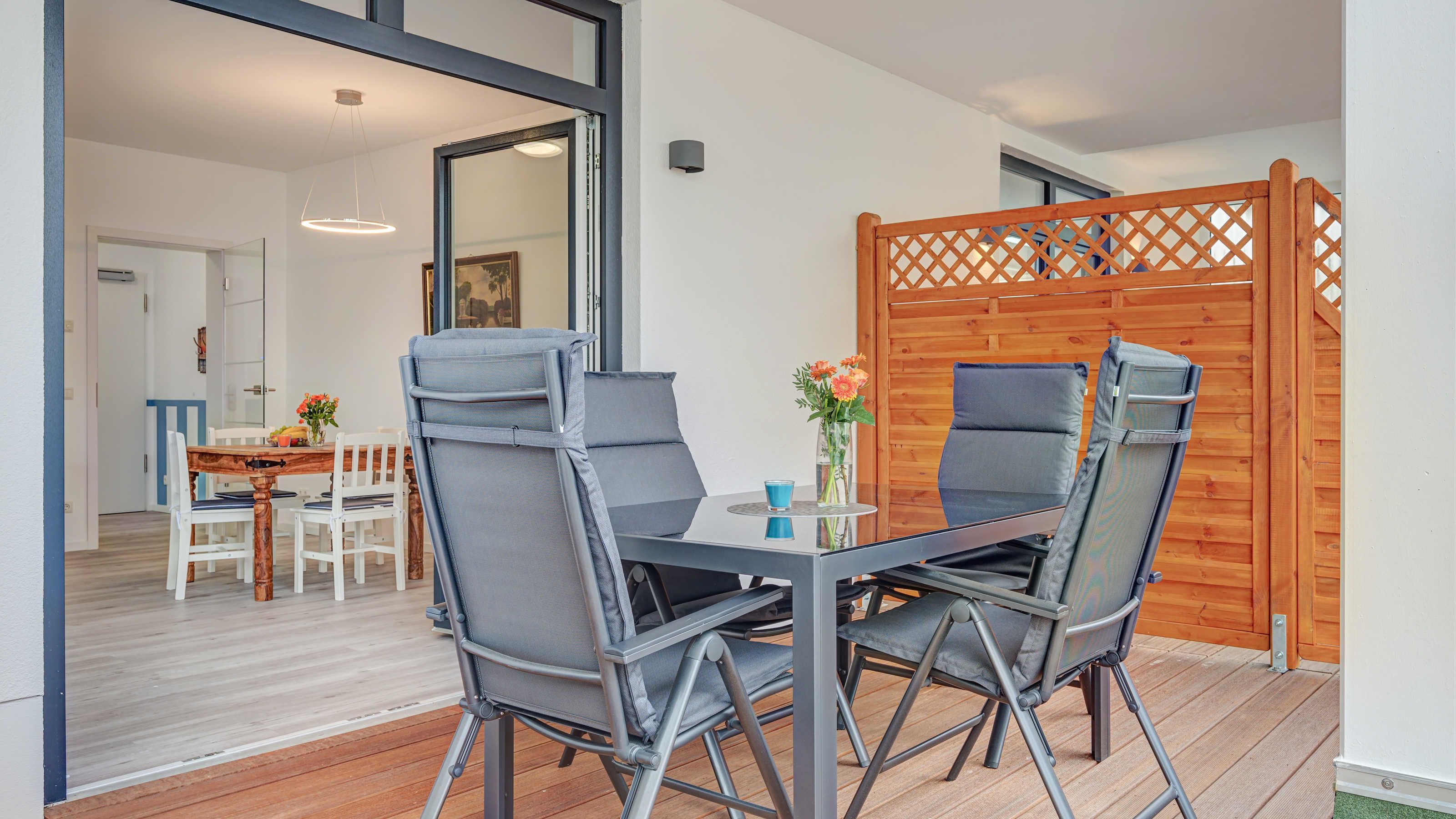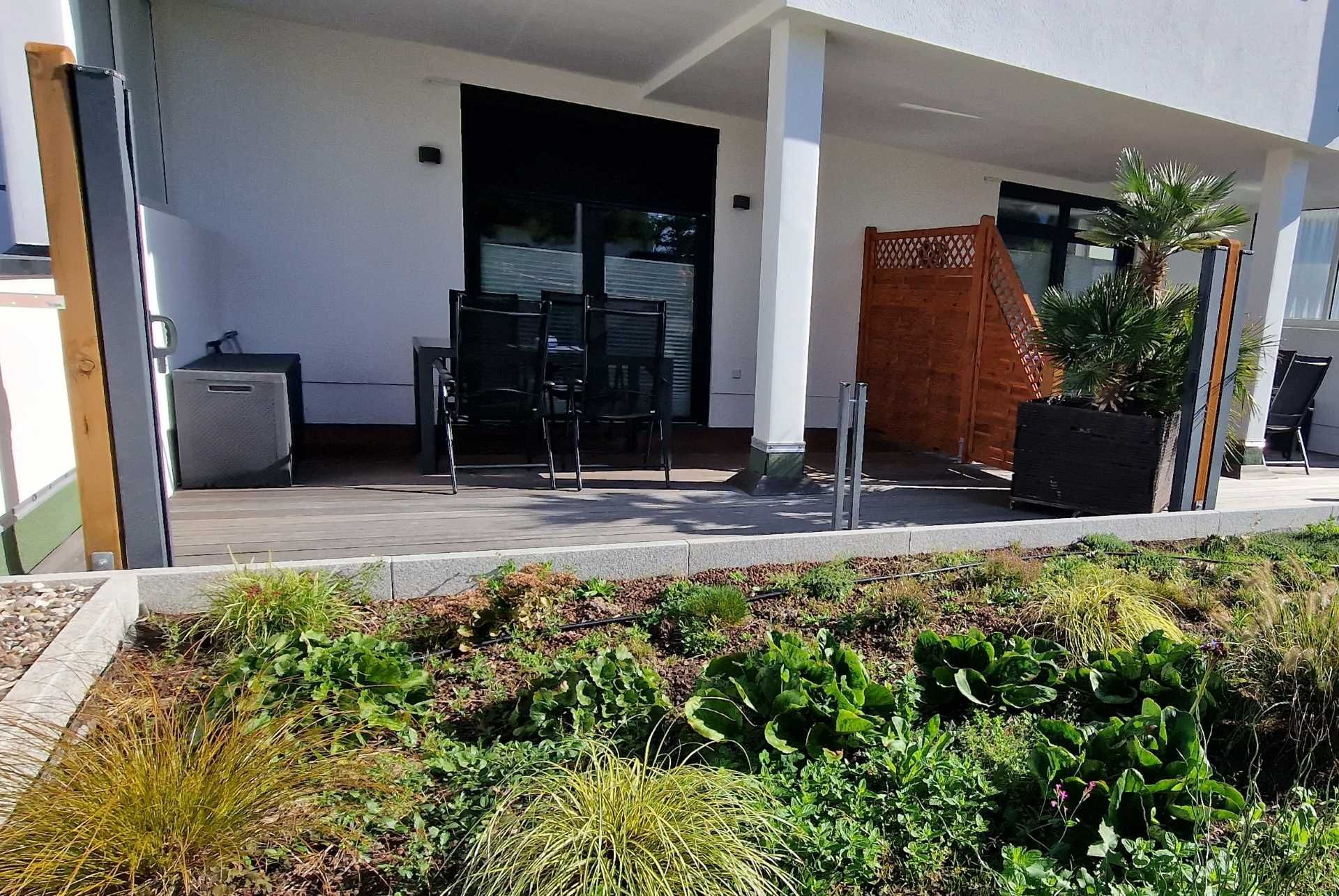 Schöne moderne große Fewo mit 2 Schlafzimmer und großer Sonnenterasse im Blumengarten für max. 2 Erw. + 2 Ki.