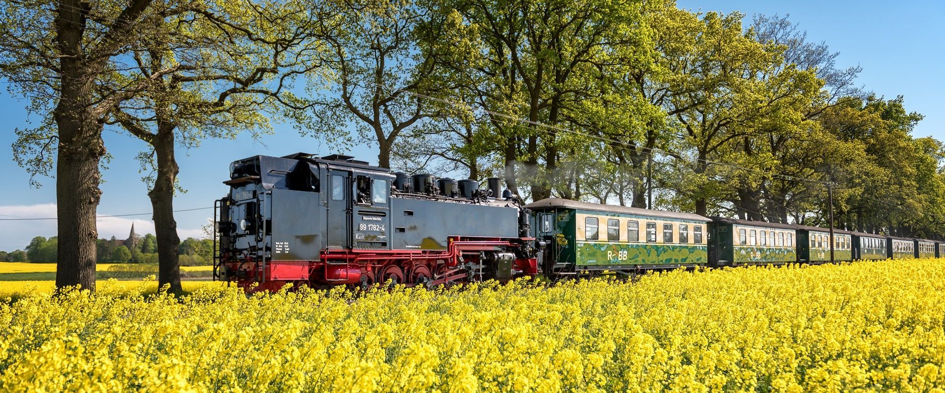 Machen sie eine beschaulichen Fahrt mit dem historischen Dampfzug Rasender Roland, der Sie vom Kleinbahnhof Binz unter anderem in die benachbarten Seebäder oder in die Theater Stadt Putbus mit seinem kurfürstlichen Park mit Tiergehege bringt.