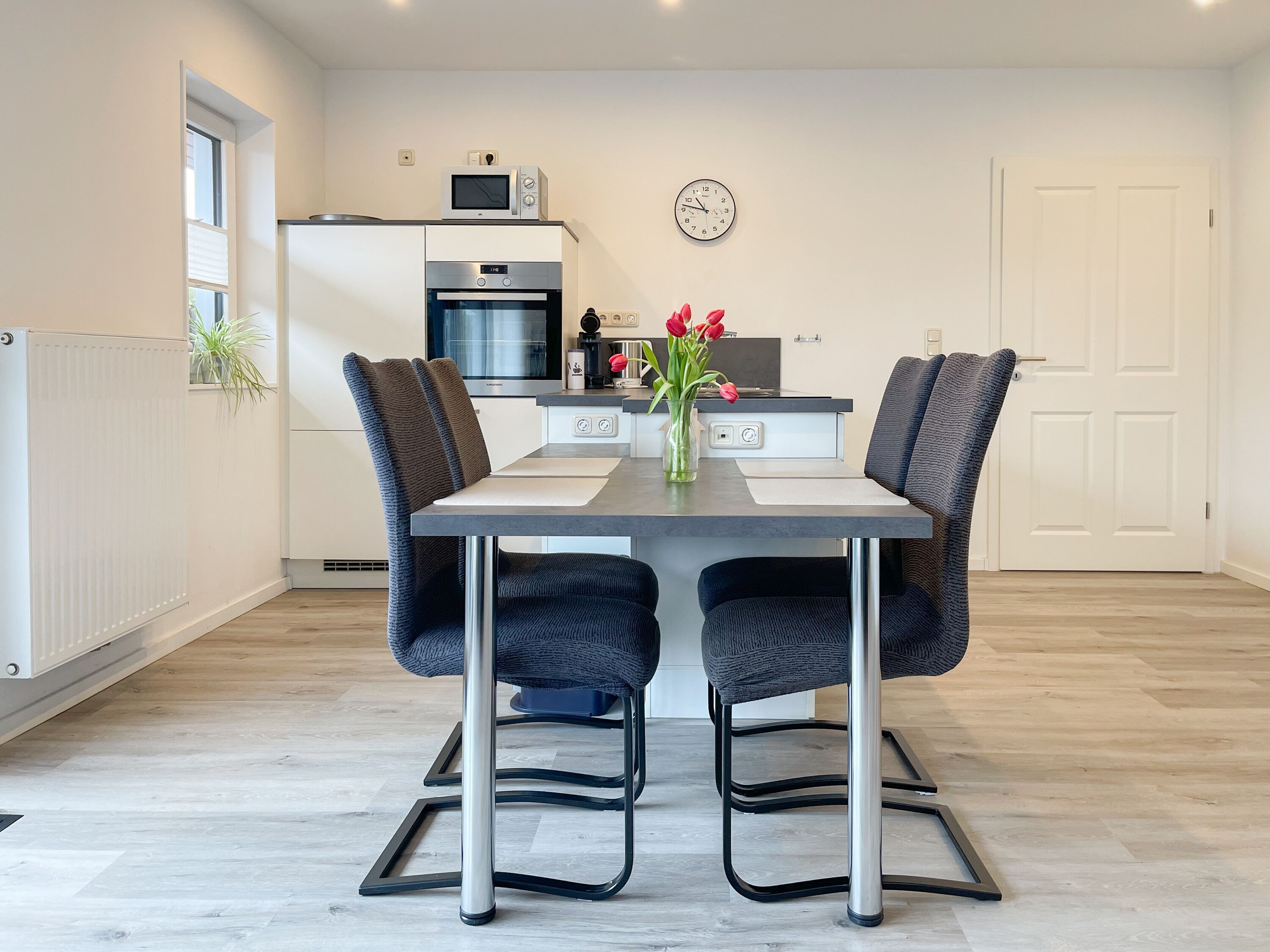 Das familienfreundliche Haus bietet auf ca. 90 m² Platz für bis zu 4 Personen und schafft mit seinem durchdachten Grundriss eine behagliche Wohlfühlatmosphäre. Im großzügigen Wohnbereich sorgen der Kamin, Sat-TV, Radio mit USB und kostenfreies WLAN für gemütliche Stunden. Direkt angrenzend lädt der offene Essbereich mit Platz für vier Personen zum gemeinsamen Schlemmen ein. Die moderne Einbauküche ist bestens ausgestattet mit Spülmaschine, Backofen und Mikrowelle bleiben kaum Wünsche offen.