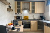• Küche: Ceranfeld-Herd, Backofen, Geschirrspüler, Mikrowelle, Toaster, Kaffeemaschine, Wasserkocher, Kühl-/Gefrierschrank