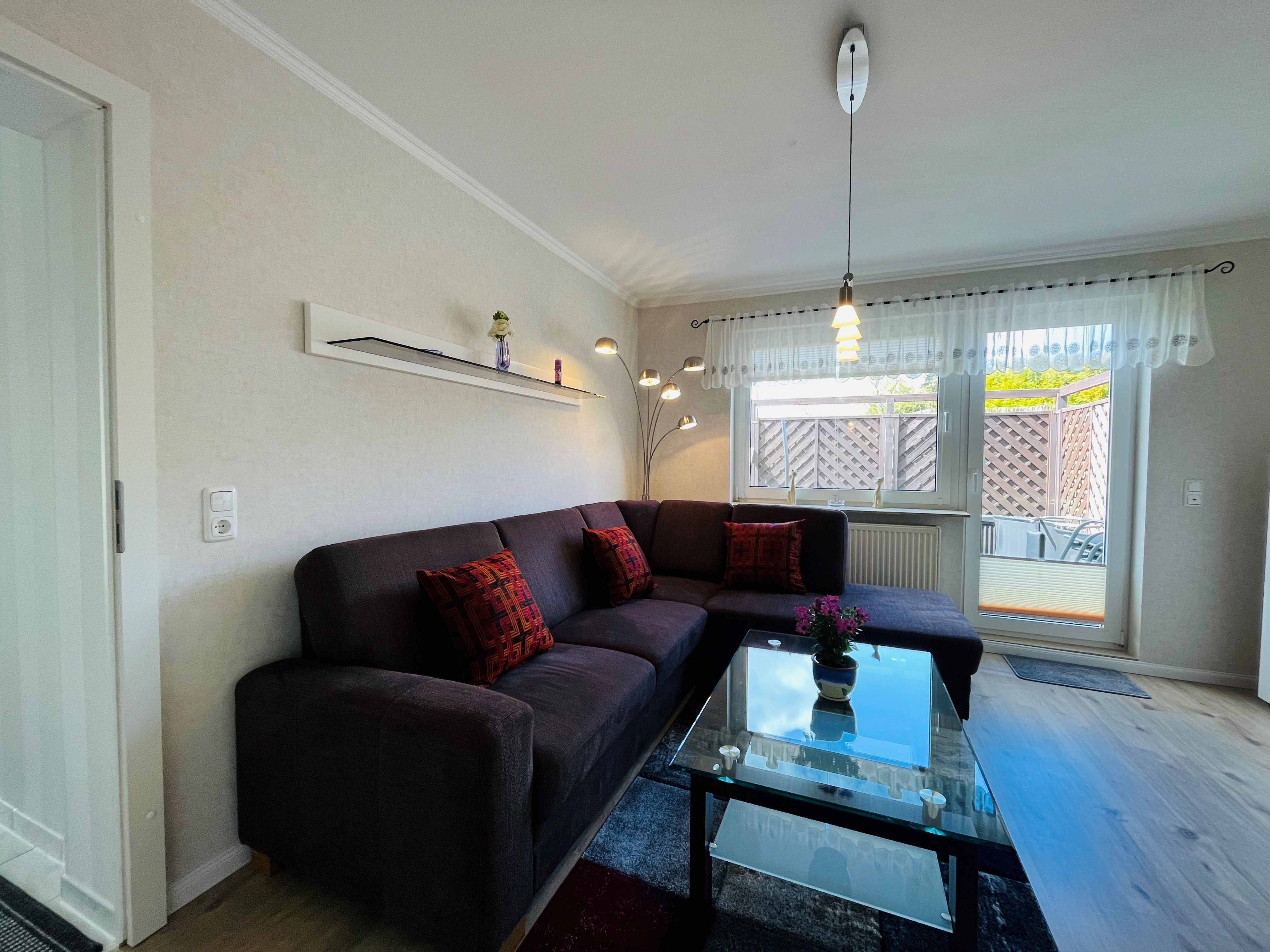 • Wohnzimmer: große Eckcouch, Flachbild-TV, Radio, Terrassenzugang