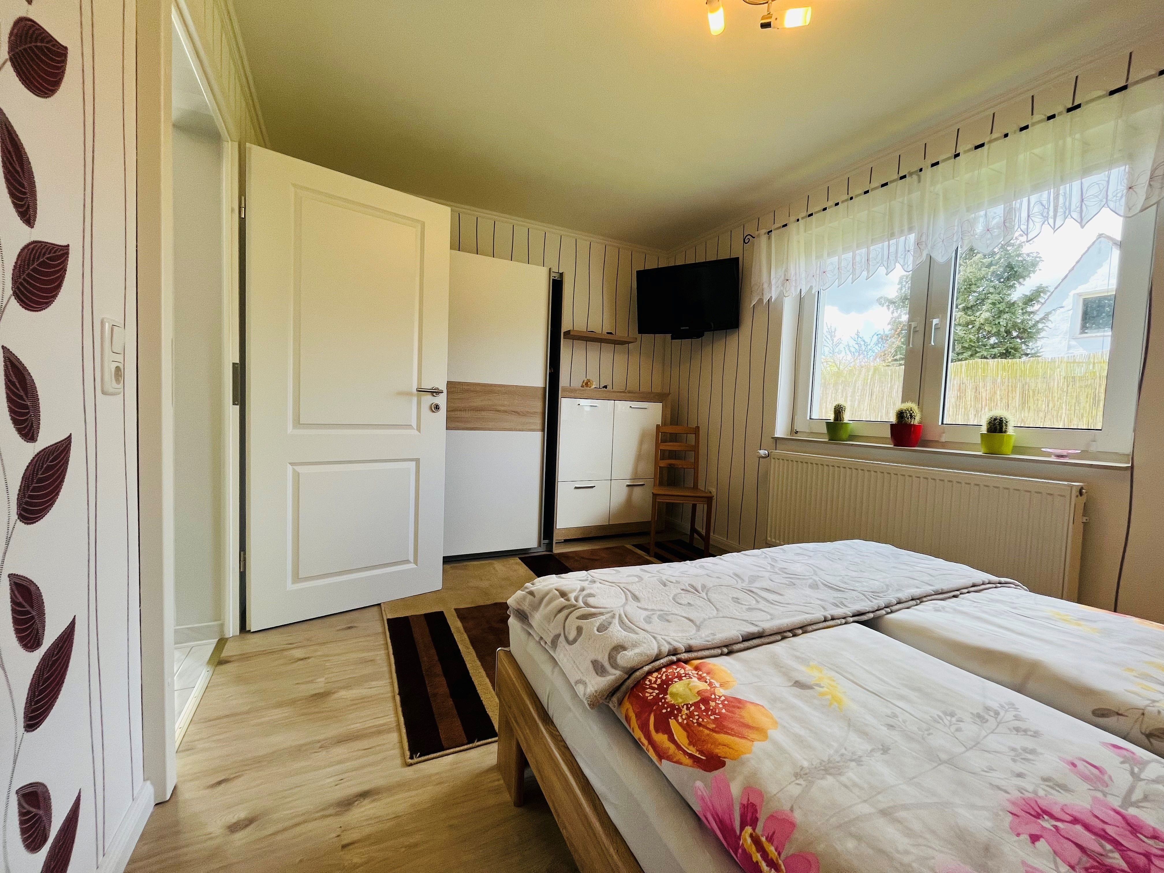 Schlafraum 1: Doppelbett 1,80x2m, Flachbild-TV